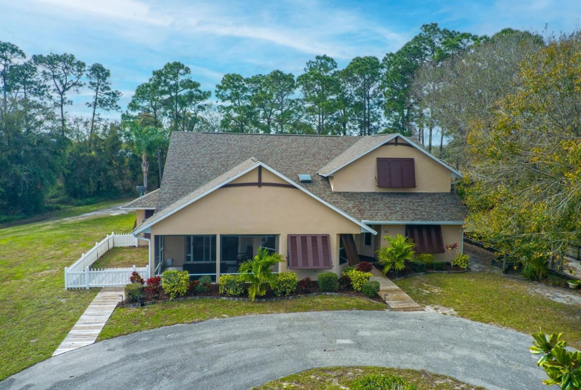 Join the Indian River County growth corridor by investing in your own community private airstrip home. Your aviation dream home is a 2 story Concrete block/stucco w/2nd story frame home w/5 bedrooms 3.5 baths and a fully functioning in-law quarters offering an updated designed for modern living w/an open concept living, dining & kitchen area creating space that is both inviting & works w/natural lighting providing a vibrant atmosphere. Experience the freedom to fly w/your private 50X50 2,500sqft red iron commercial airplane hanger featuring 16ft high vaulted ceilings. Extraordinary opportunity