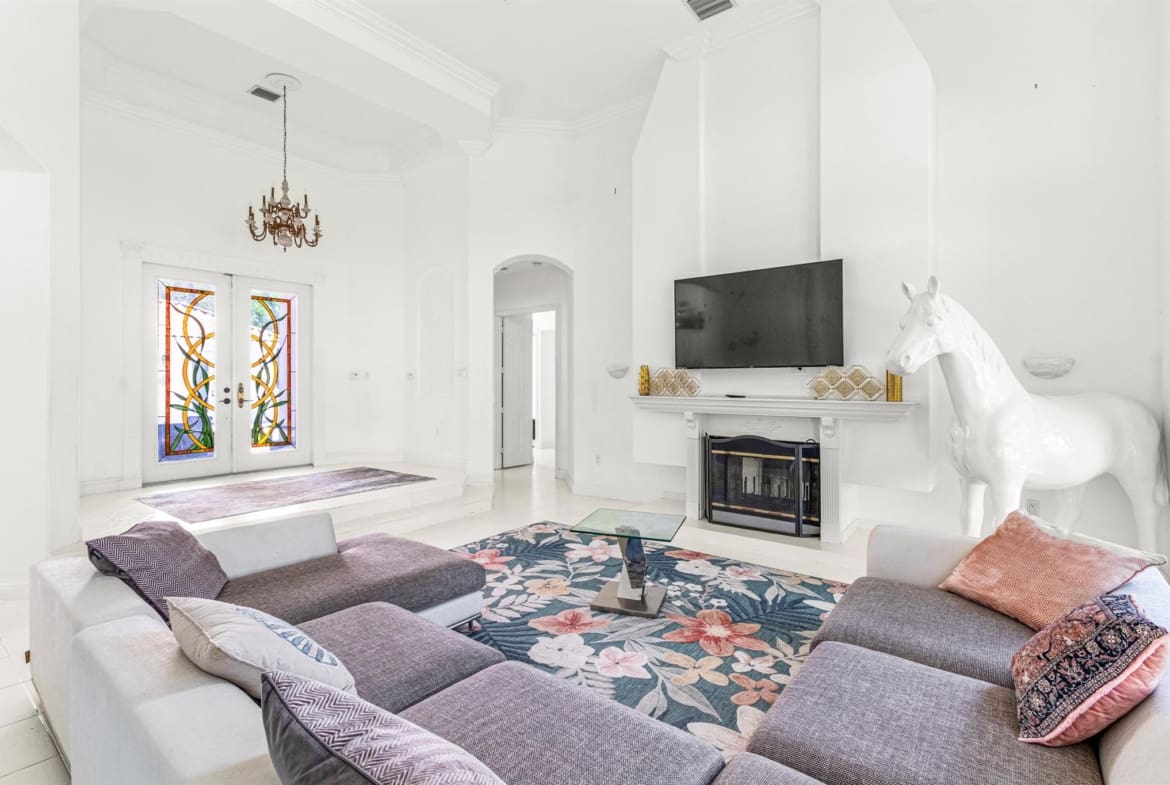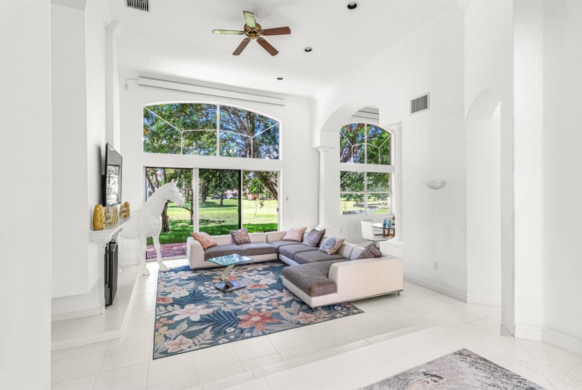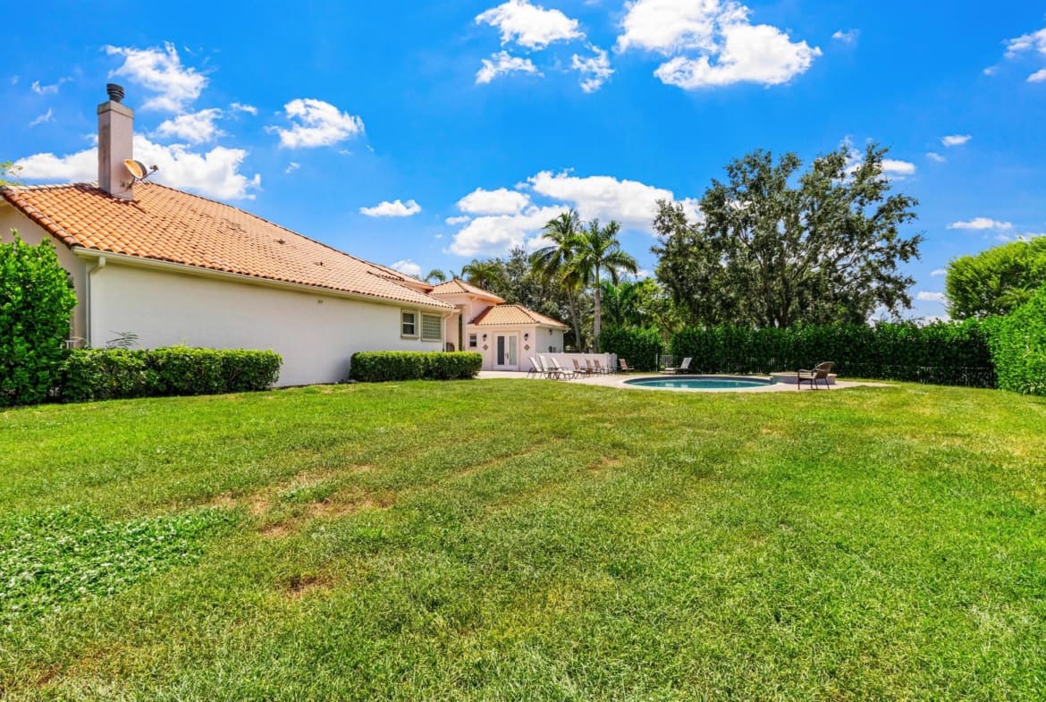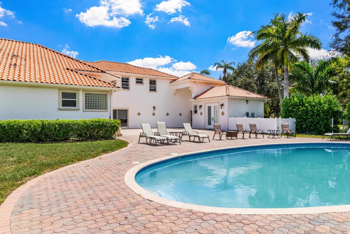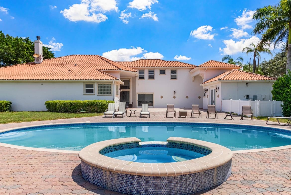 A rare aviation-ready estate in Wellington’s exclusive Aero Club, this distinguished Mediterranean-style home spans 3,522 sq ft across a 1-acre, beautifully landscaped lot. Inside, discover 5 sumptuous bedrooms, 5.5 baths, soaring ceilings, tile and carpet flooring, a family room, fireplace, and a split-bedroom layout for modern comfort. The culinary kitchen features high-end built-ins, and every bath showcases contemporary, remodeled finishes.Step outside to your private paradise: a gated 20 40 pool with an 8-ft spa, and a separate cabana guest house with 1 bed/1 bath–perfect for visitors or flexible living.