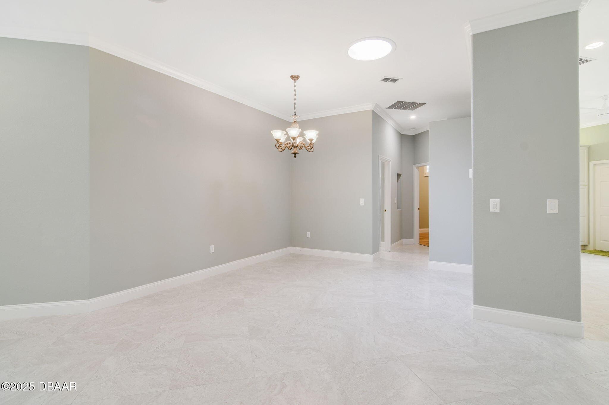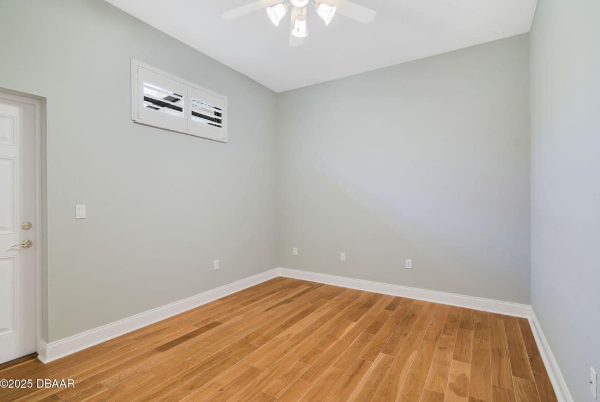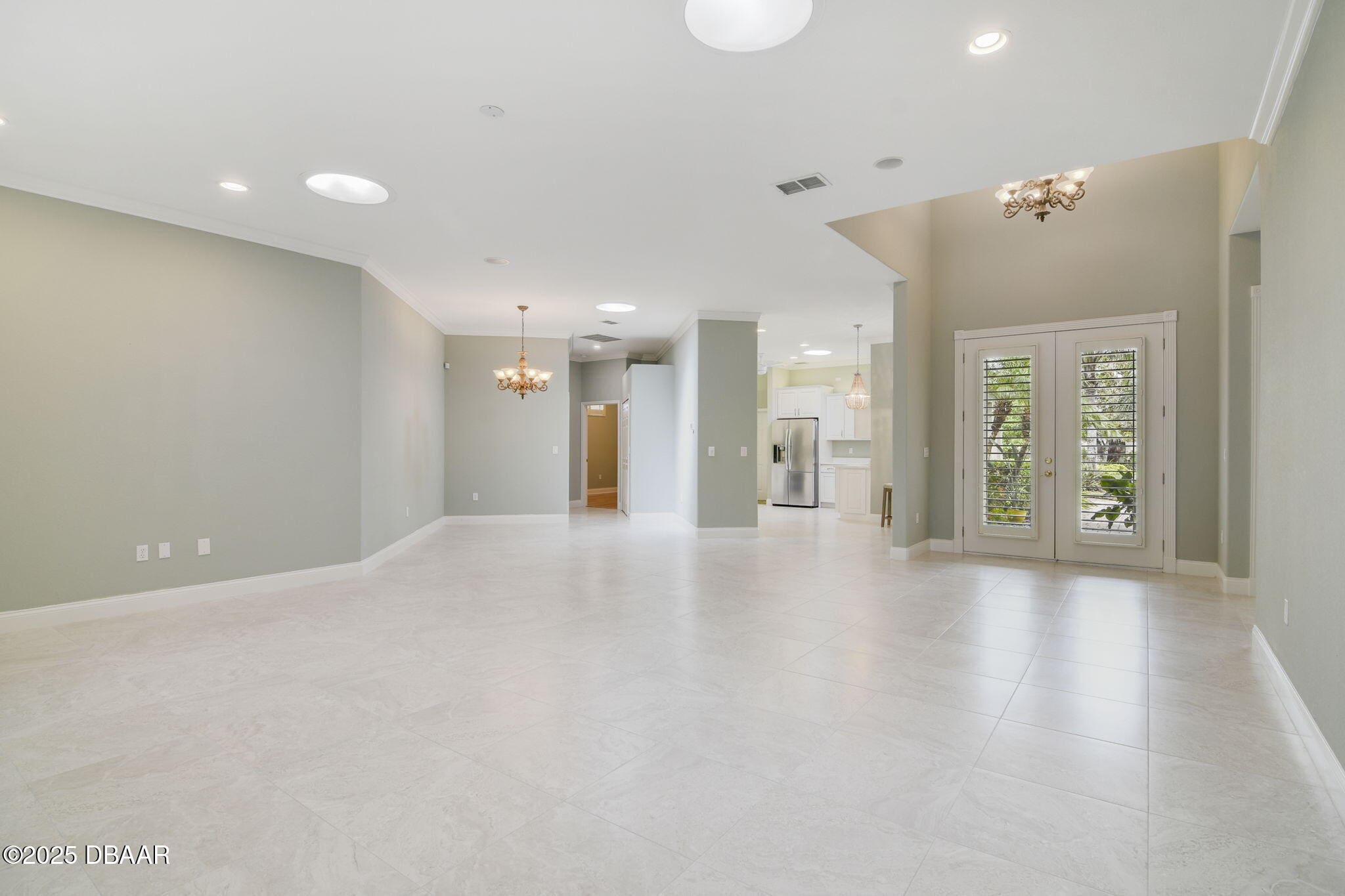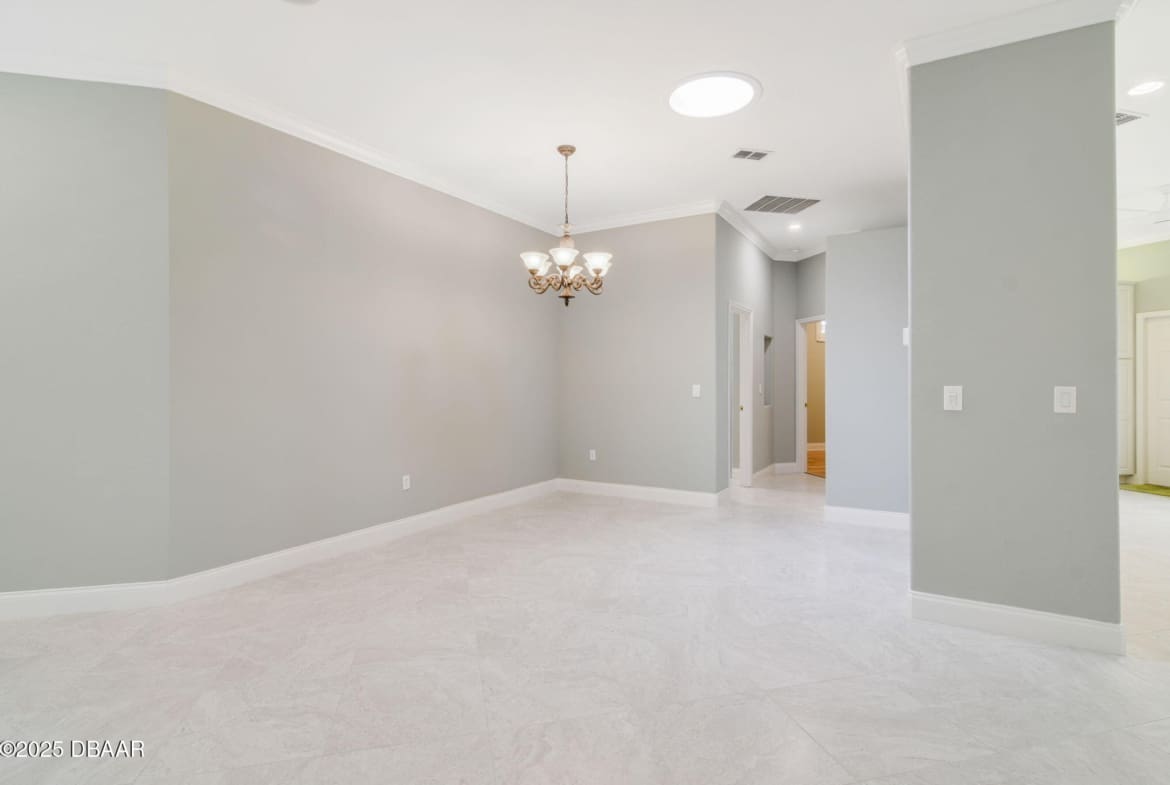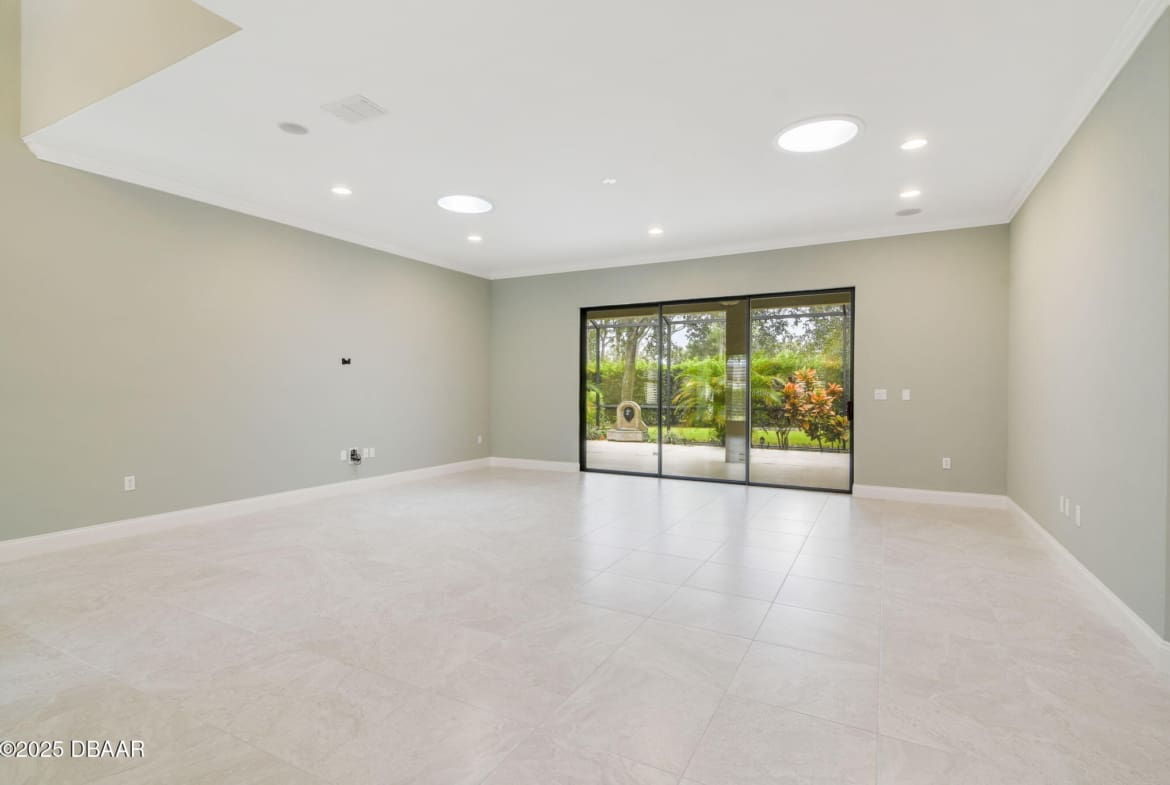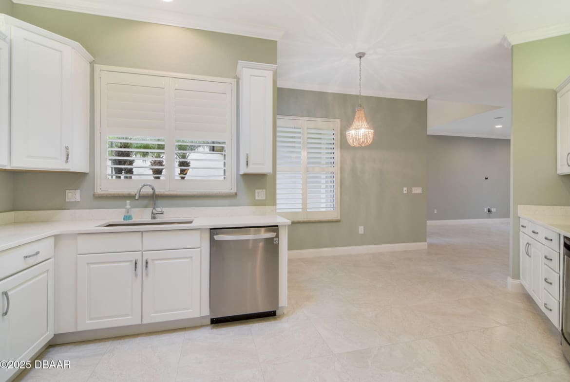 Welcome to Spruce Creek Fly-In, a premier aviation community offering the ultimate Florida lifestyle. As you approach this beautiful three-bedroom, two-bath home with a two-car plus golf cart garage, you’ll notice the paver driveway, elegant entryway, and lush tropical landscaping. As you step through the double doors, you are greeted by an open floor plan with tile flooring, triple glass sliding doors leading to the lanai, and refined details like plantation shutters and crown molding. The spacious kitchen features quartz countertops, white raised panel cabinetry, stainless steel appliances—including a wine cooler—crown molding, and modern recessed lighting. The primary suite offers a garden tub, walk-in shower, and a custom-designed walk-in closet. Two additional bedrooms share a well-appointed second bath, while the third bedroom includes its own private screened-in porch. Entertain in style on the extended 45-by-20-foot lanai,