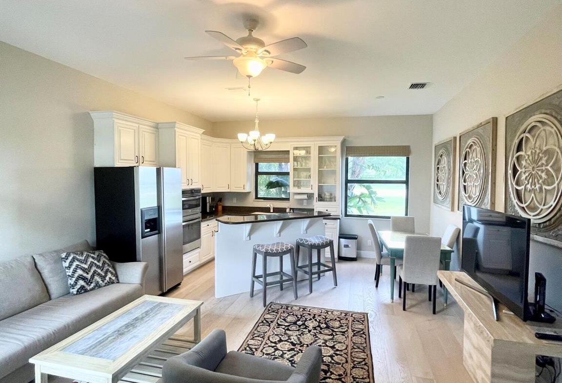 Beautifully renovated FURNISHED 2 bedroom +1 bathroom guest house on a quiet cul-de-sac. Includes designer furniture, high end finishes, impact windows/doors and all utilities plus wifi included in rental price. Offered seasonally. Perfect for staff or Equestrian/Polo enthusiasts visiting Wellington for the season.