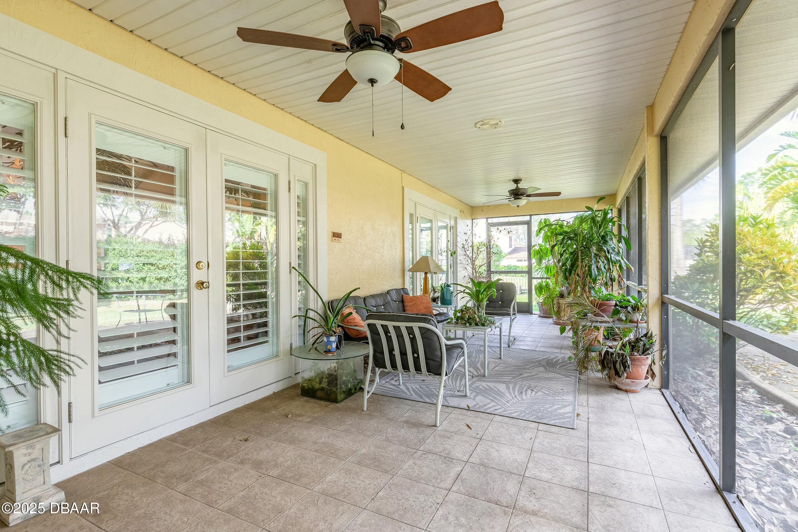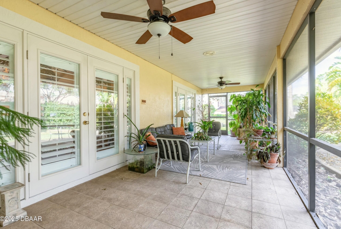 Brand NEW roof installed!! Welcome to this exceptional 3-bedroom, 2-bathroom home located in the highly sought-after gated community of Spruce Creek Fly-In, a premier residential airpark that offers an unparalleled lifestyle. This charming residence features an inviting open floor plan, designed to maximize space and natural light, creating a warm and welcoming atmosphere. Tile and wood flooring flow seamlessly throughout the home, adding both style and durability. The spacious living area is perfect for relaxing or entertaining, with easy access to the kitchen and dining spaces. The well-appointed kitchen offers ample cabinetry and plenty of counter space, making meal preparation a breeze. The master suite serves as a private retreat, complete with a generous walk-in closet and an en suite bathroom featuring a walk-in shower. Two additional bedrooms provide flexibility for family, guests, or even a home office.