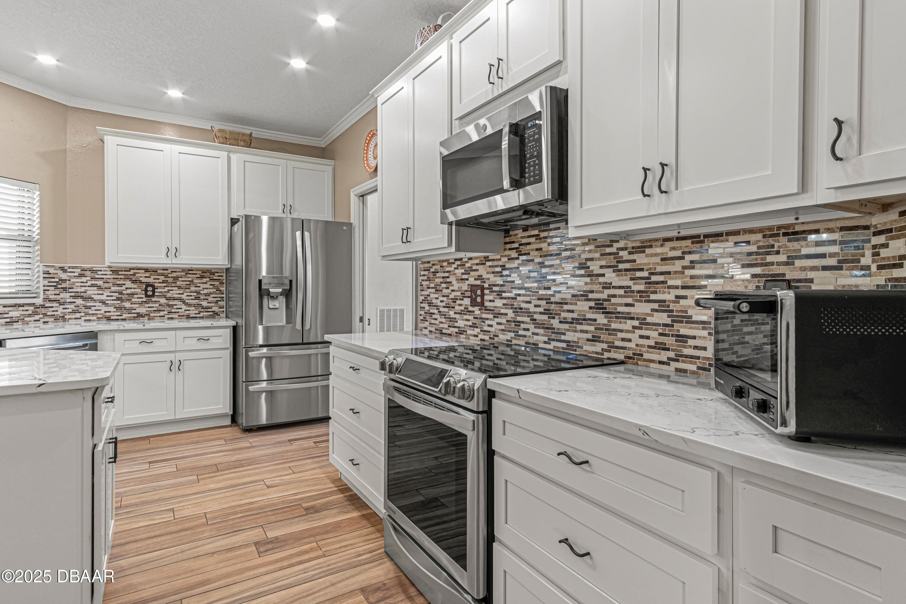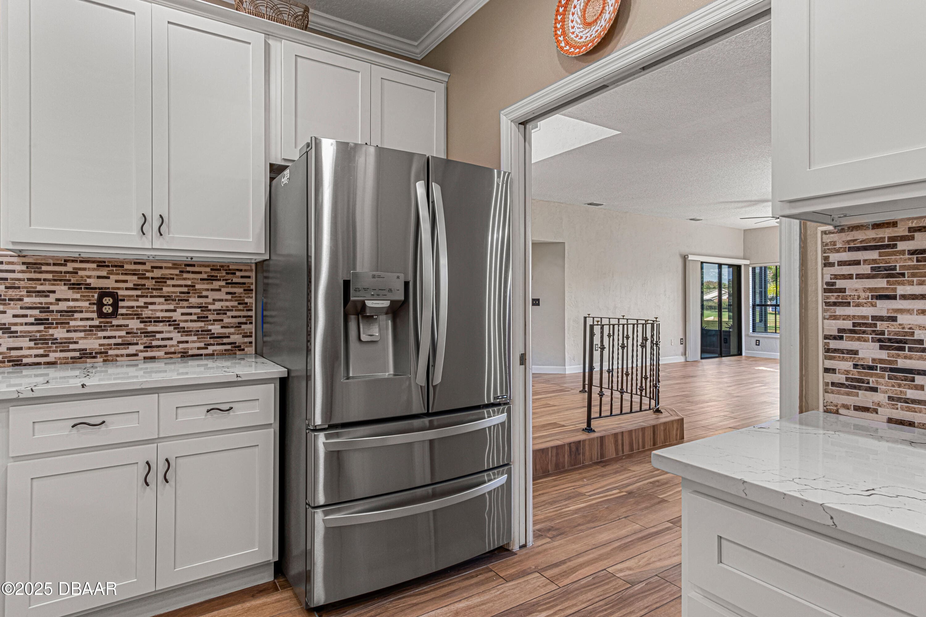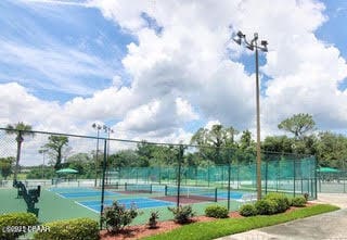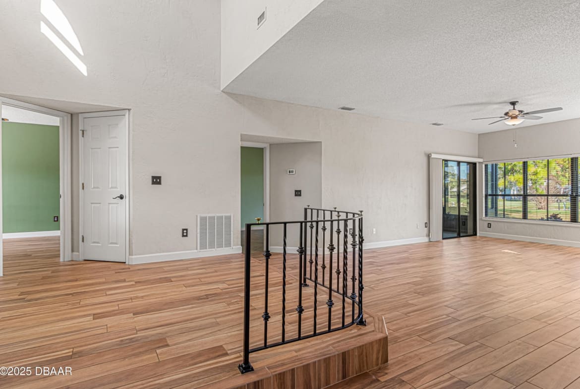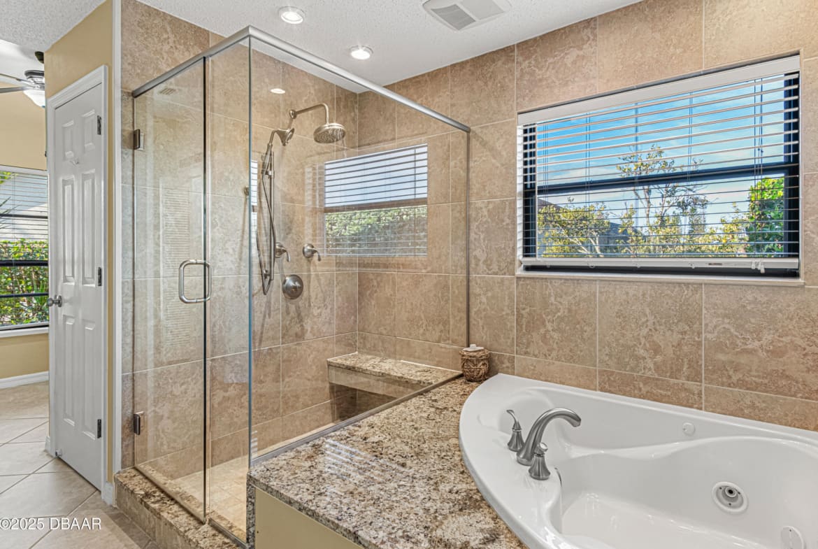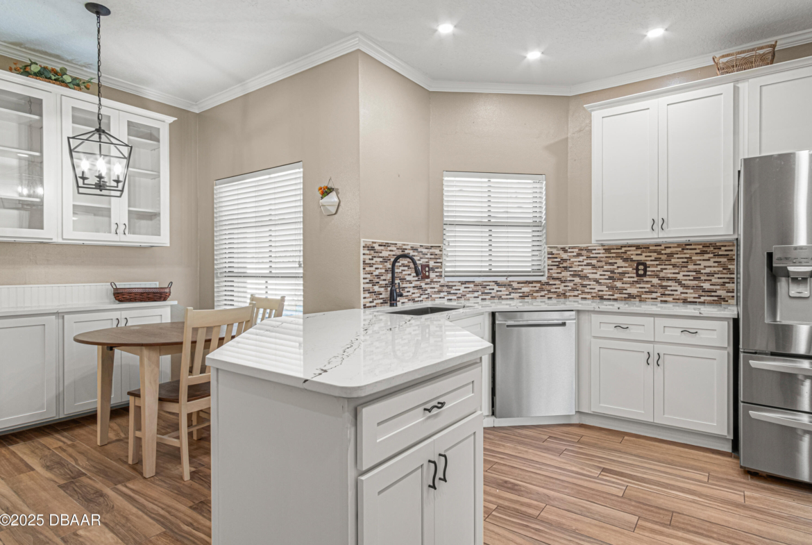 Enjoy fantastic golf course scenery from this Wedgewood property in Spruce Creek Fly-In gated community. Located in a cul-de-sac w/ abundant natural light & updates throughout. The stone fireplace in the family room overlooks spectacular views of the 17th tee/fairway as well as nature & pond views. Kitchen consists of beautiful custom cabinetry, quartz countertops, two pantries & newer stainless steel appliances. The primary suite includes his & her closets, dressing area, updated bath w/ access to a spacious & relaxing glass-panel enclosed lanai w/ insulated aluminum roof (2025). Guest suite offers a full bath, walk-in closet, private covered patio area w/ epoxy flooring & a separate entry from outside. The oversized garage has high-end epoxy flooring by Shark Coating w/ overhead storage. Additional Information: Updated landscaping, Freshly painted stained glass double front doors, Architectural shingle roof 2022, Tankless hot water heater 2019, 4-ton HVAC 2023,