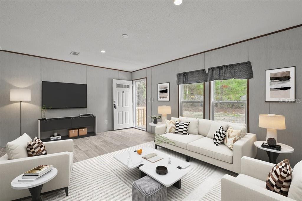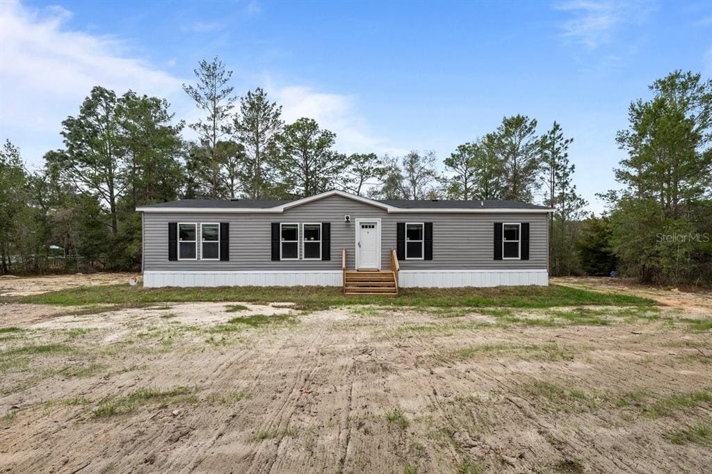 One or more photo(s) has been virtually staged. This brand-new 2025 double wide sits on just over 2 acres on Whirlwind Lake, offering privacy, space, and a peaceful country setting. A gravel driveway off of a paved road leads to the home, adding both practicality and a clean, finished look. The property is zoned AG, so bring your animals and enjoy true country living with the freedom to use the land the way you want. Inside, the home, take in the relaxing water views from the kitchen and dining room. Home features 4 bedrooms, 2 bathrooms, and 1,456 square feet of bright, modern living space.Everything is Brand-New including well, septic and electric pole. Outside, fresh sod surrounds the home, and out back you’ll find a large concrete slab perfect for taking in the beautiful lake views-Makes a great spot for entertaining, outdoor living, or future plans like a garage, workshop, or storage building. Located in Melrose Landing, this private community offers a quiet, open feel. There’s no HOA requirement UNLESS you choose to join for access to the private runway and clubhouse, adding a rare option for aviation enthusiasts.