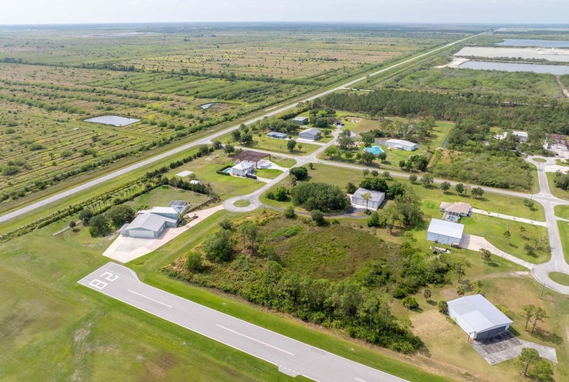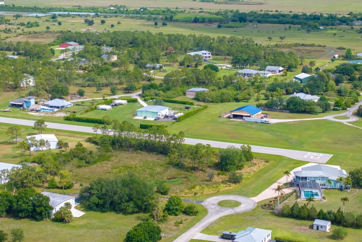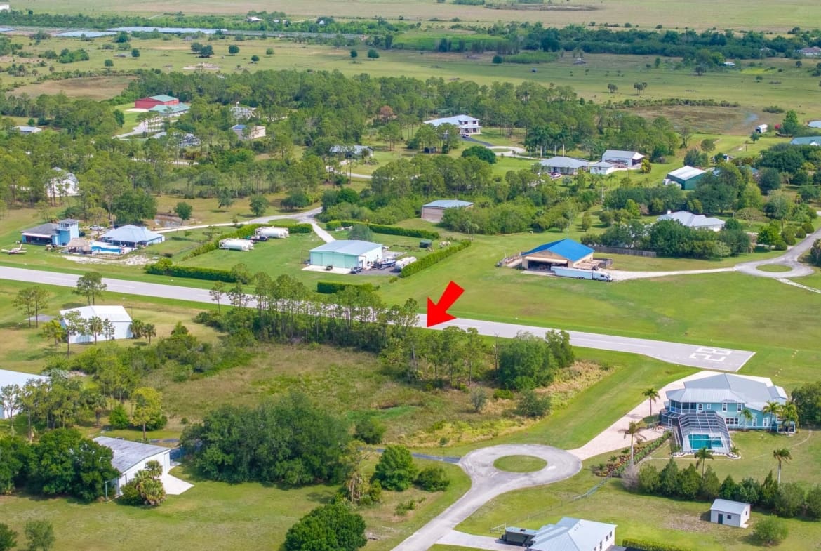 Build your custom dream home or just your own private hanger on this 2.3 acre private lot sitting right on the runway of Treasure Coast Airpark! This community offers a newly constructed 4,000-foot private, lighted asphalt runway and can accommodate aircraft up to 12,500 pounds. Enjoy the convenience of leaving your porch and flying anywhere your heart desires in just seconds.
