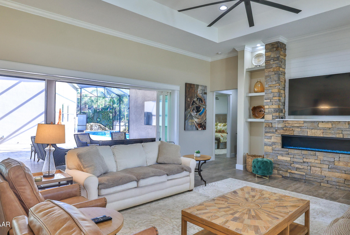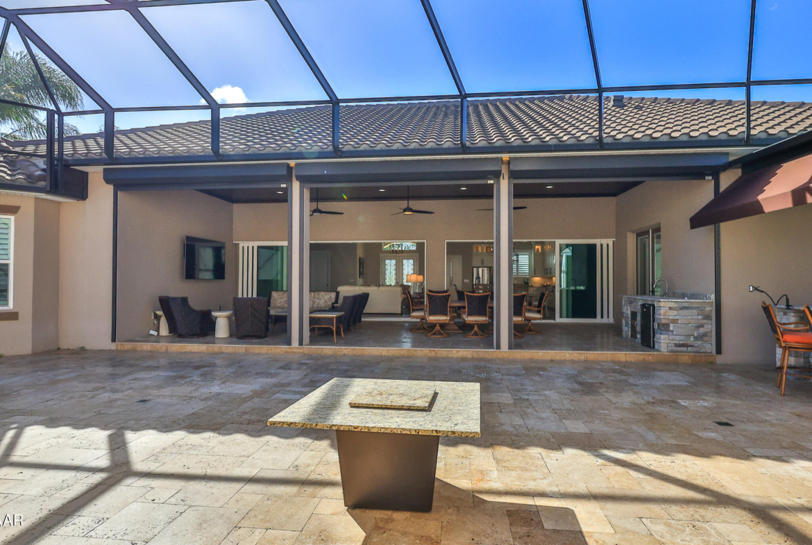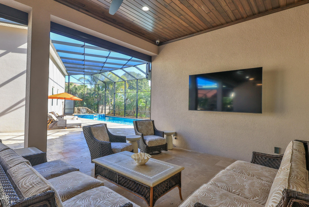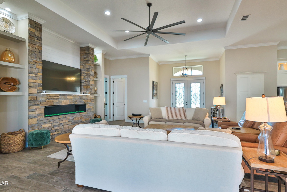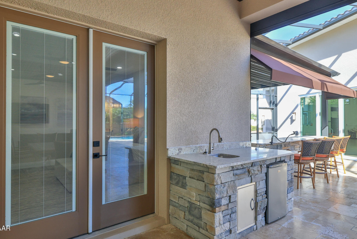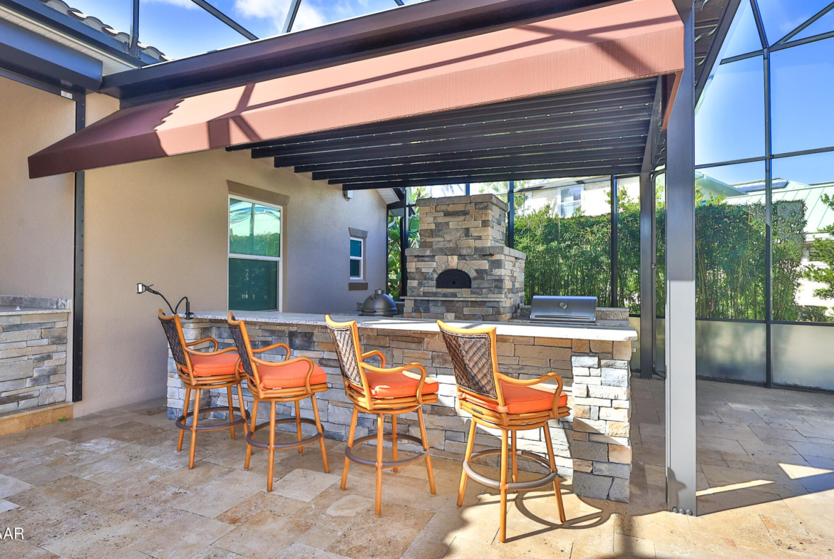 Exciting opportunity to purchase a nearly NEW Furnished Dream Hangar Home Residence with 64’Wx66’D Hangar at Lot 60 in the Prestigious Glen Eagles area of Spruce Creek Fly In. Home is Professionally Designed and Furnished with customized interior/exterior finishes and details. Exterior fully screened dream lanai/backyard with heated Pool and spa, outdoor bar and kitchen with Chicago Wood Fired Pizza oven, Blaze stainless griddle, Grill and Egg Grill. Covered 38×16 Lanai with retractable Kevlar Screening.