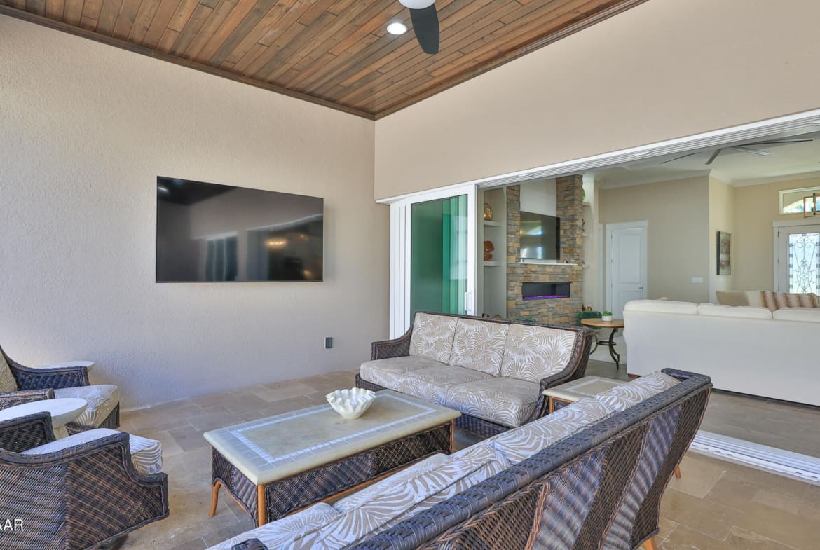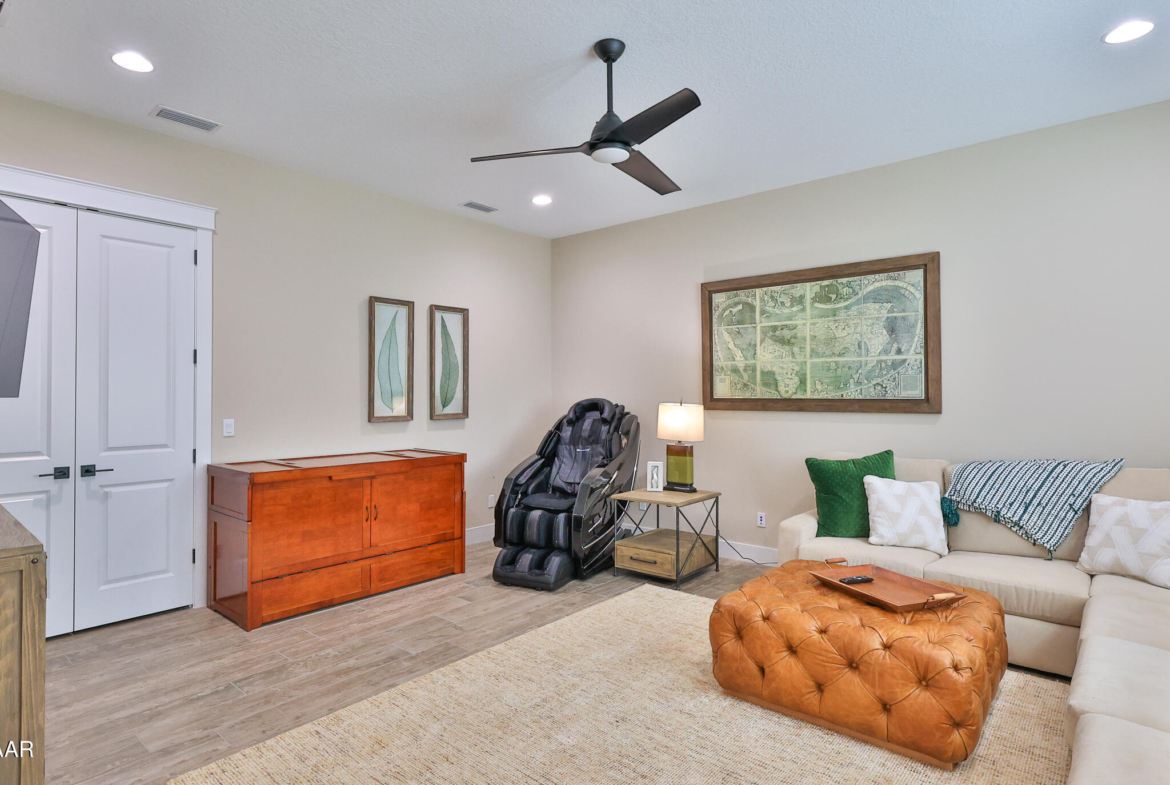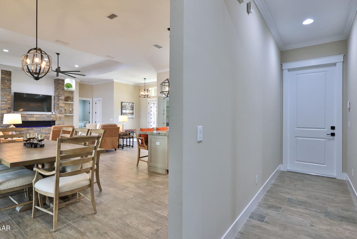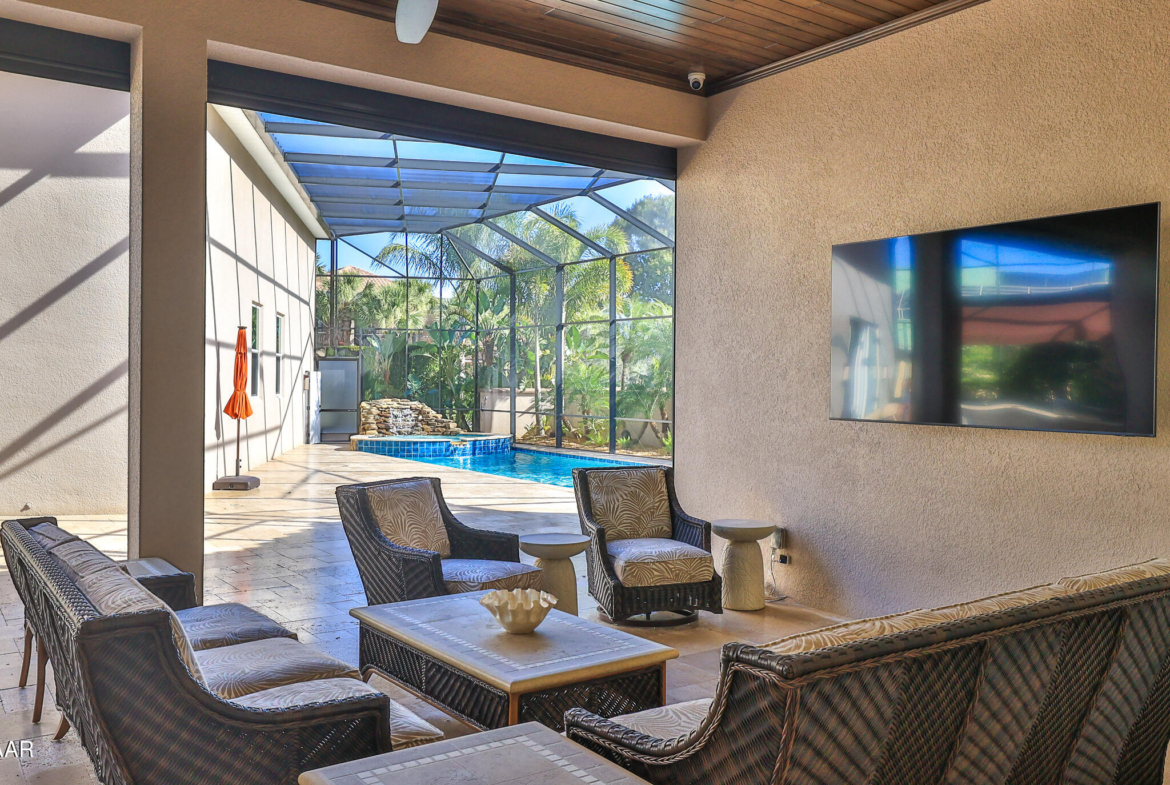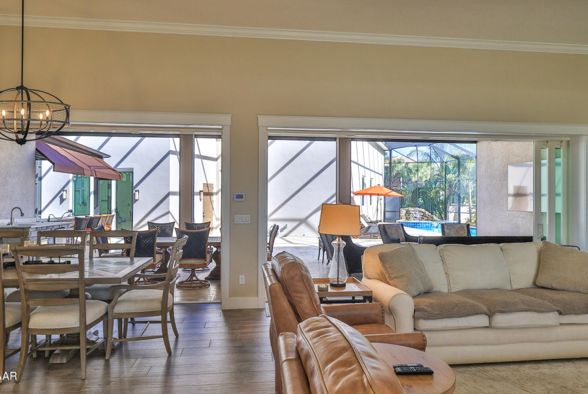 Exciting opportunity to purchase a nearly NEW Furnished Dream Hangar Home Residence with 64’Wx66’D Hangar at Lot 60 in the Prestigious Glen Eagles area of Spruce Creek Fly In. Home is Professionally Designed and Furnished with customized interior/exterior finishes and details. Exterior fully screened dream lanai/backyard with heated Pool and spa, outdoor bar and kitchen with Chicago Wood Fired Pizza oven, Blaze stainless griddle, Grill and Egg Grill. Covered 38×16 Lanai with retractable Kevlar Screening.