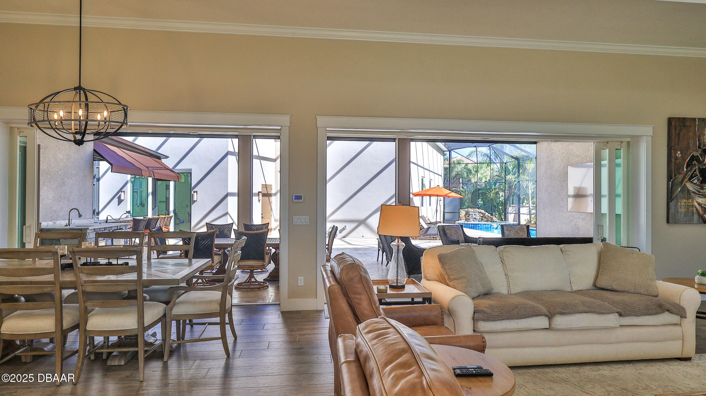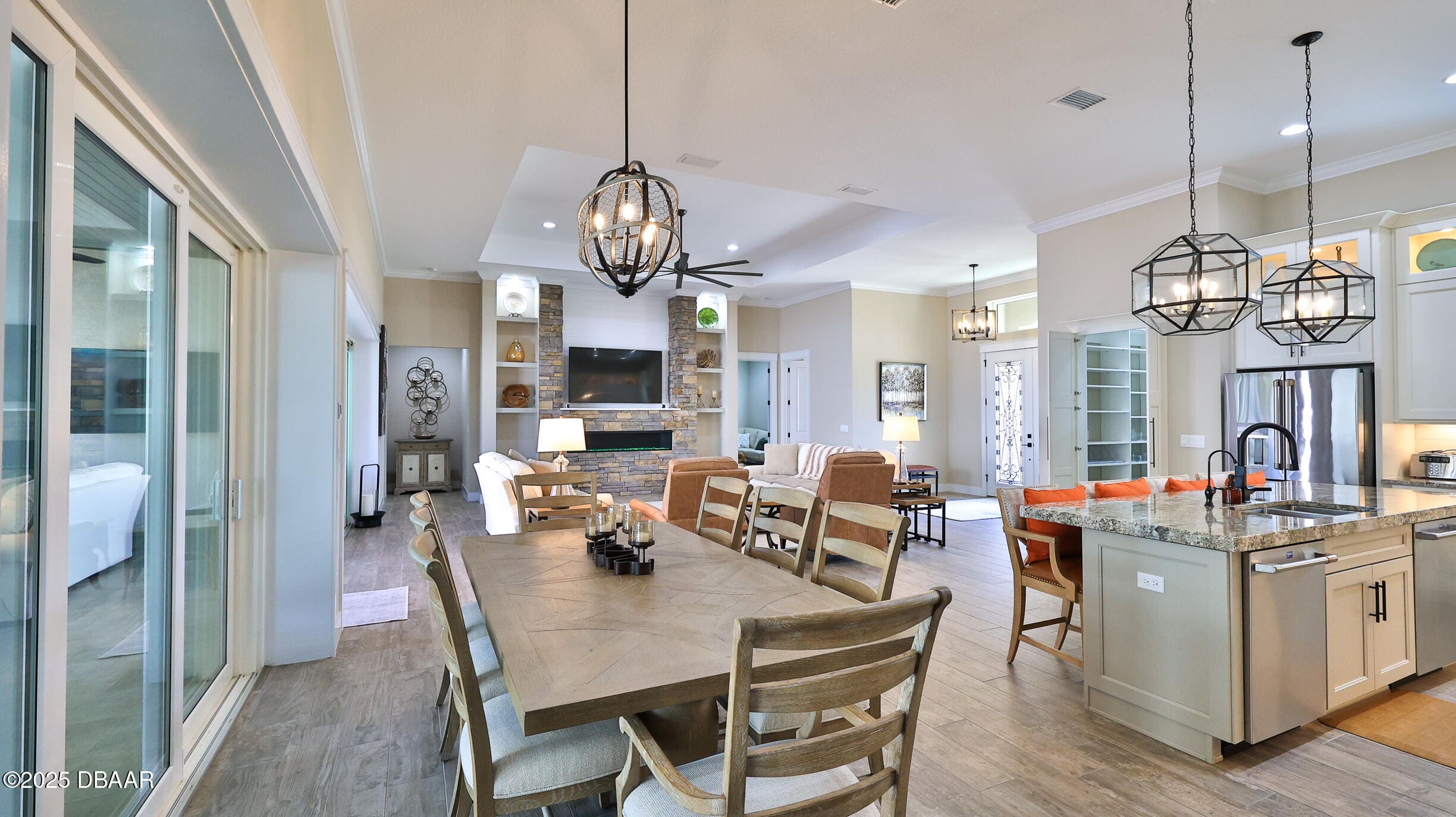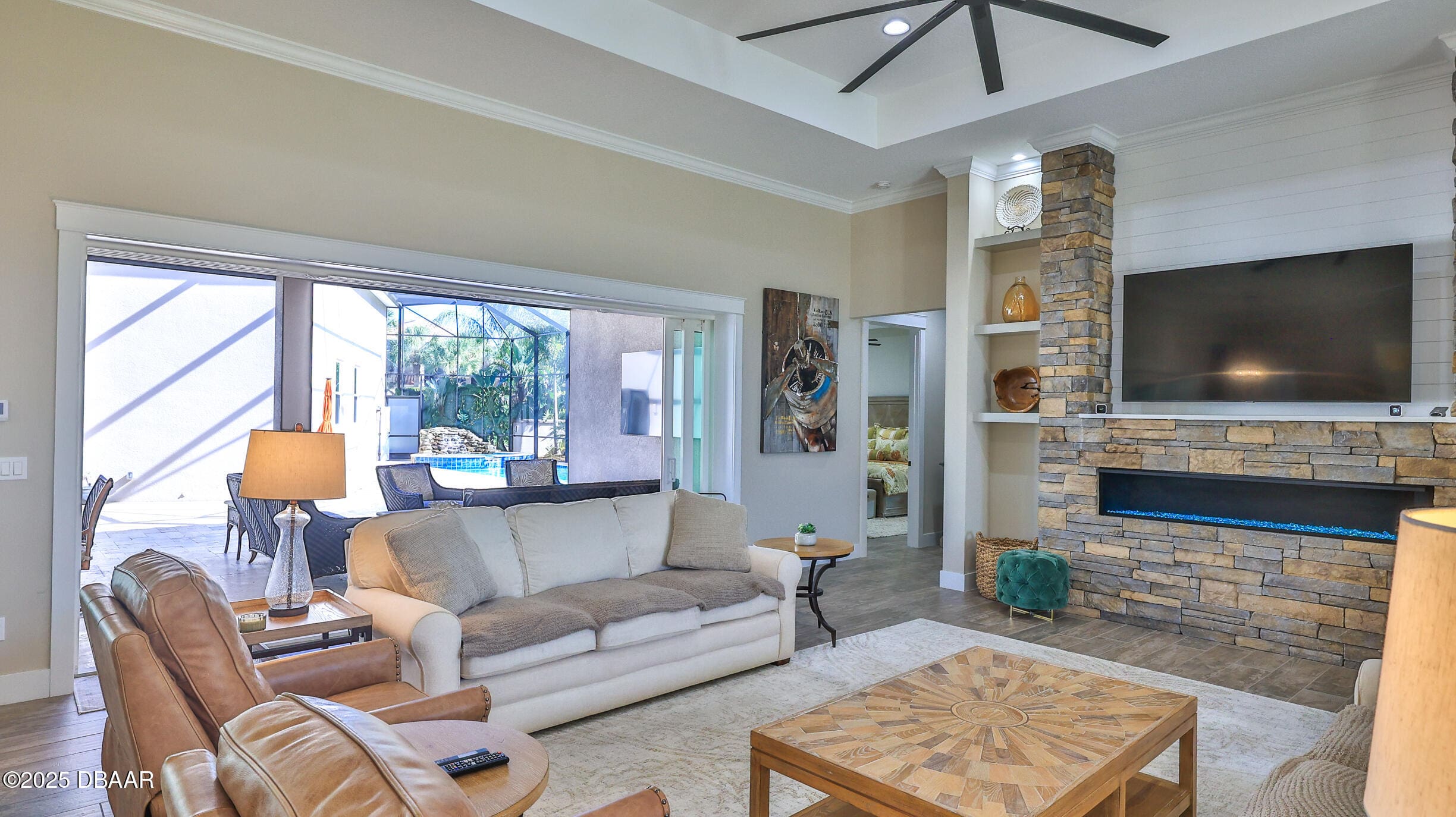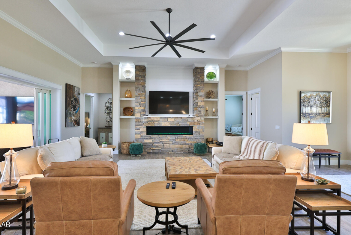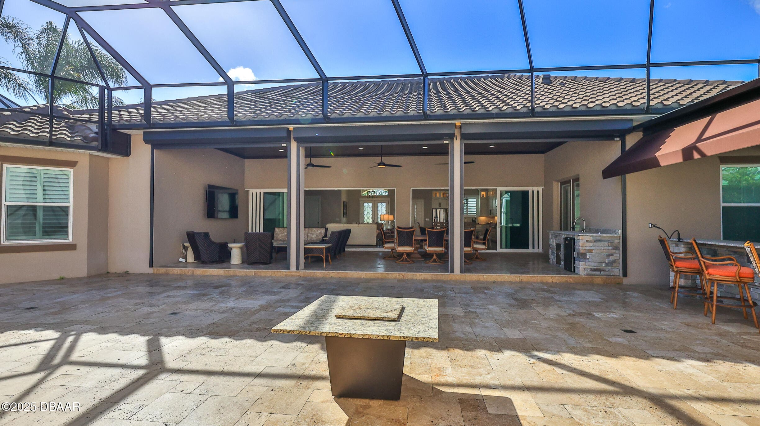 Exciting opportunity to purchase a nearly NEW Furnished Dream Hangar Home Residence with 64’Wx66’D Hangar at Lot 60 in the Prestigious Glen Eagles area of Spruce Creek Fly In. Home is Professionally Designed and Furnished with customized interior/exterior finishes and details. Exterior fully screened dream lanai/backyard with heated Pool and spa, outdoor bar and kitchen with Chicago Wood Fired Pizza oven, Blaze stainless griddle, Grill and Egg Grill. Covered 38×16 Lanai with retractable Kevlar Screening.