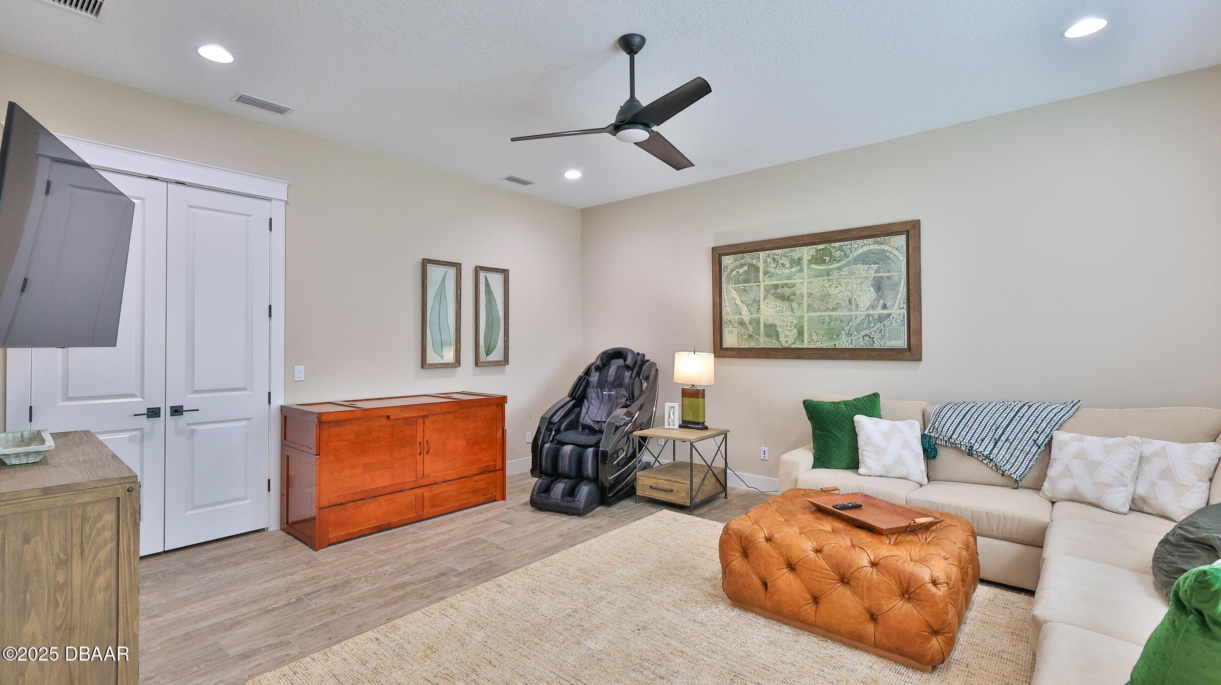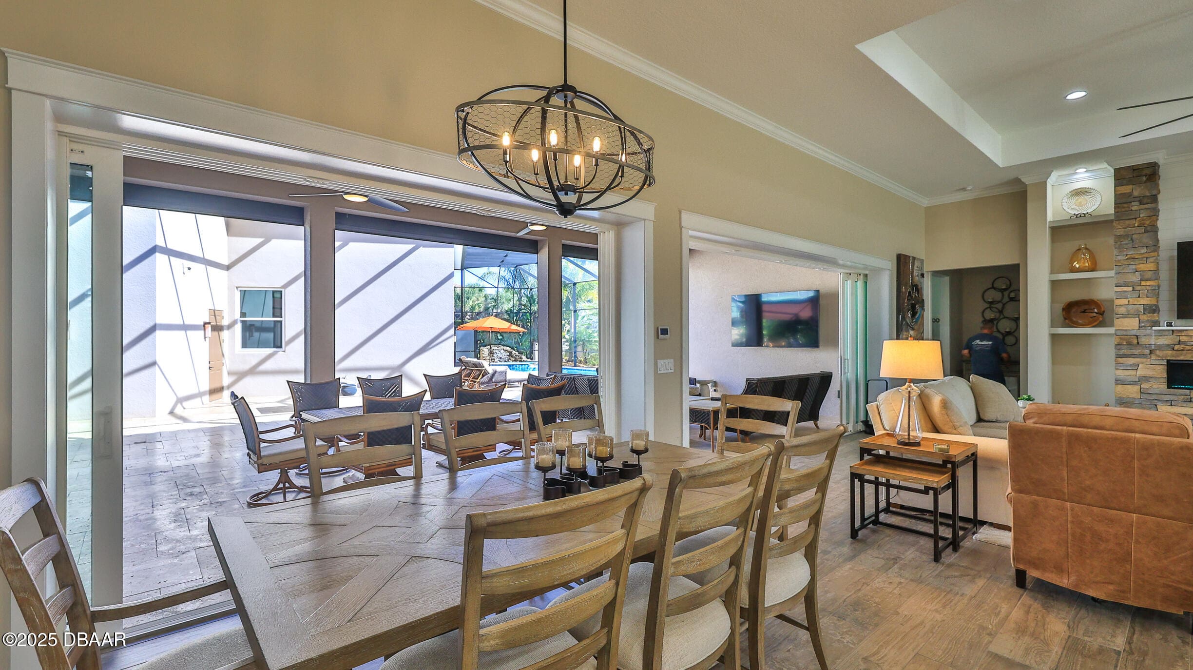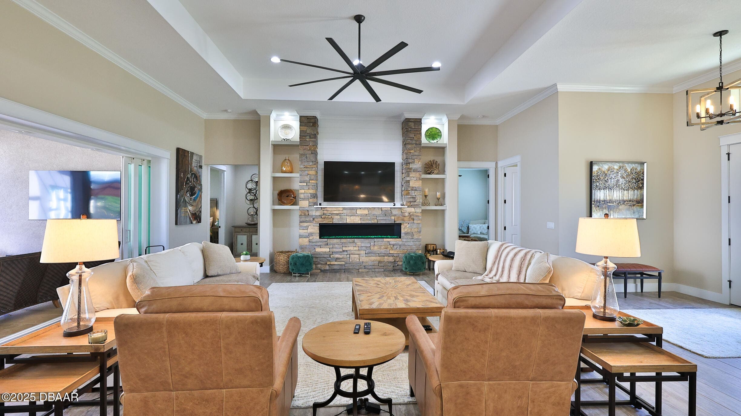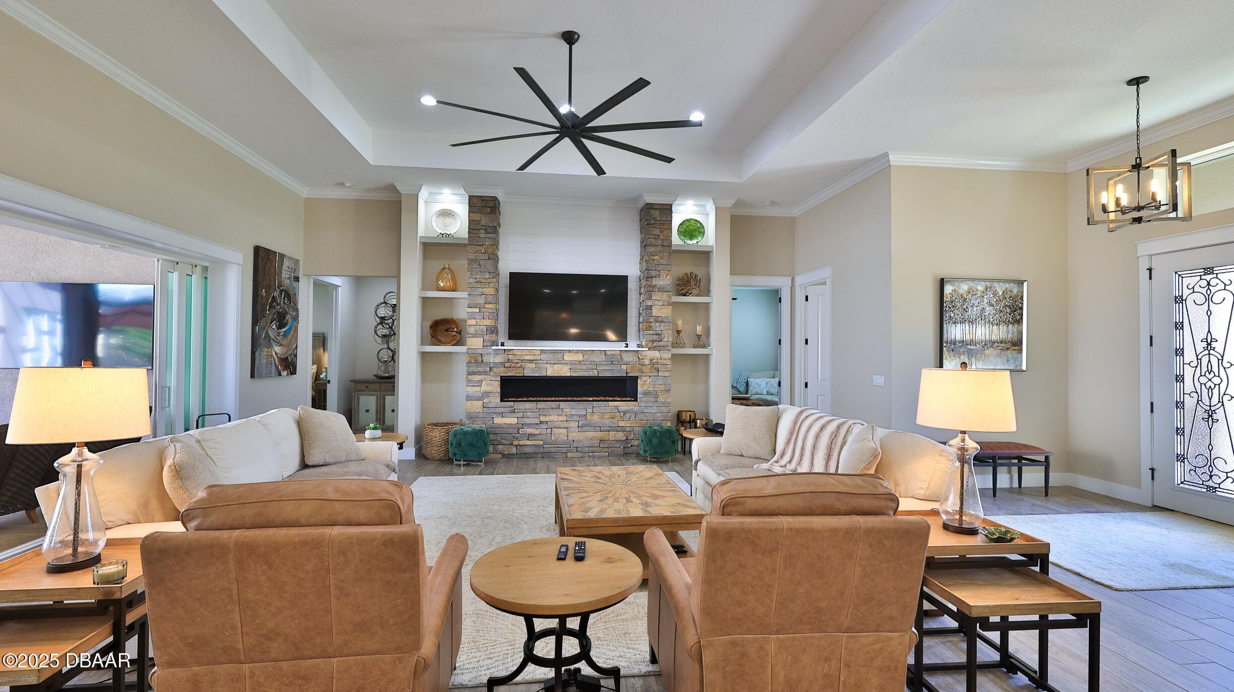 Exciting opportunity to purchase a nearly NEW Furnished Dream Hangar Home Residence with 64’Wx66’D Hangar at Lot 60 in the Prestigious Glen Eagles area of Spruce Creek Fly In. Home is Professionally Designed and Furnished with customized interior/exterior finishes and details. Exterior fully screened dream lanai/backyard with heated Pool and spa, outdoor bar and kitchen with Chicago Wood Fired Pizza oven, Blaze stainless griddle, Grill and Egg Grill. Covered 38×16 Lanai with retractable Kevlar Screening.