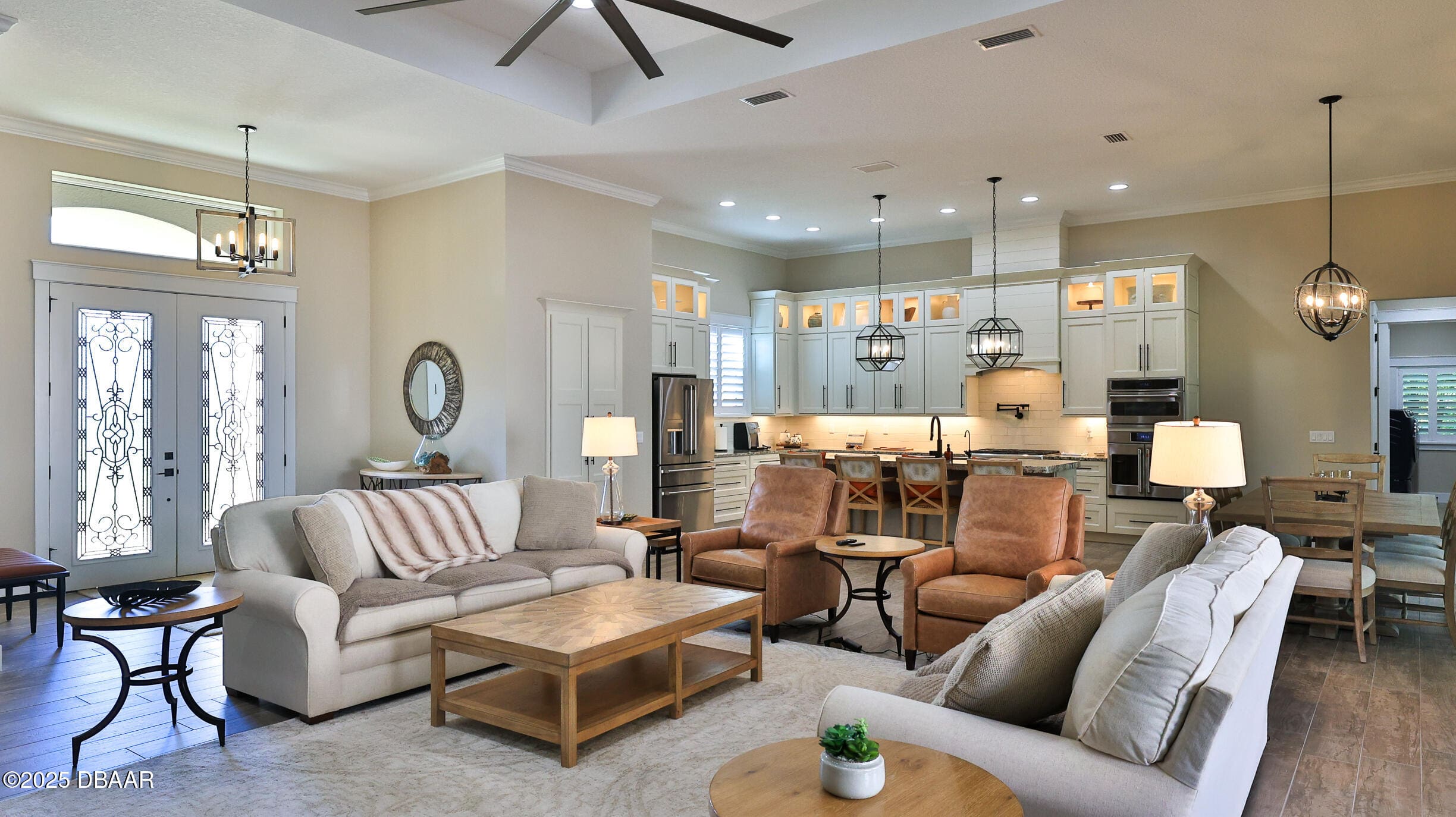 Interior kitchen has large walk in pantry, two dishwashers, propane gas stove with pot filler and french doors. Whole house backup generac generator with 500 gallon owned propane tank. This is a must see Home with a hangar that will fit nearly every type of aircraft that can land at Spruce Creek Fly in. All information is assumed accurate but not guaranteed. Buyers & their agents need to verify all information deemed important