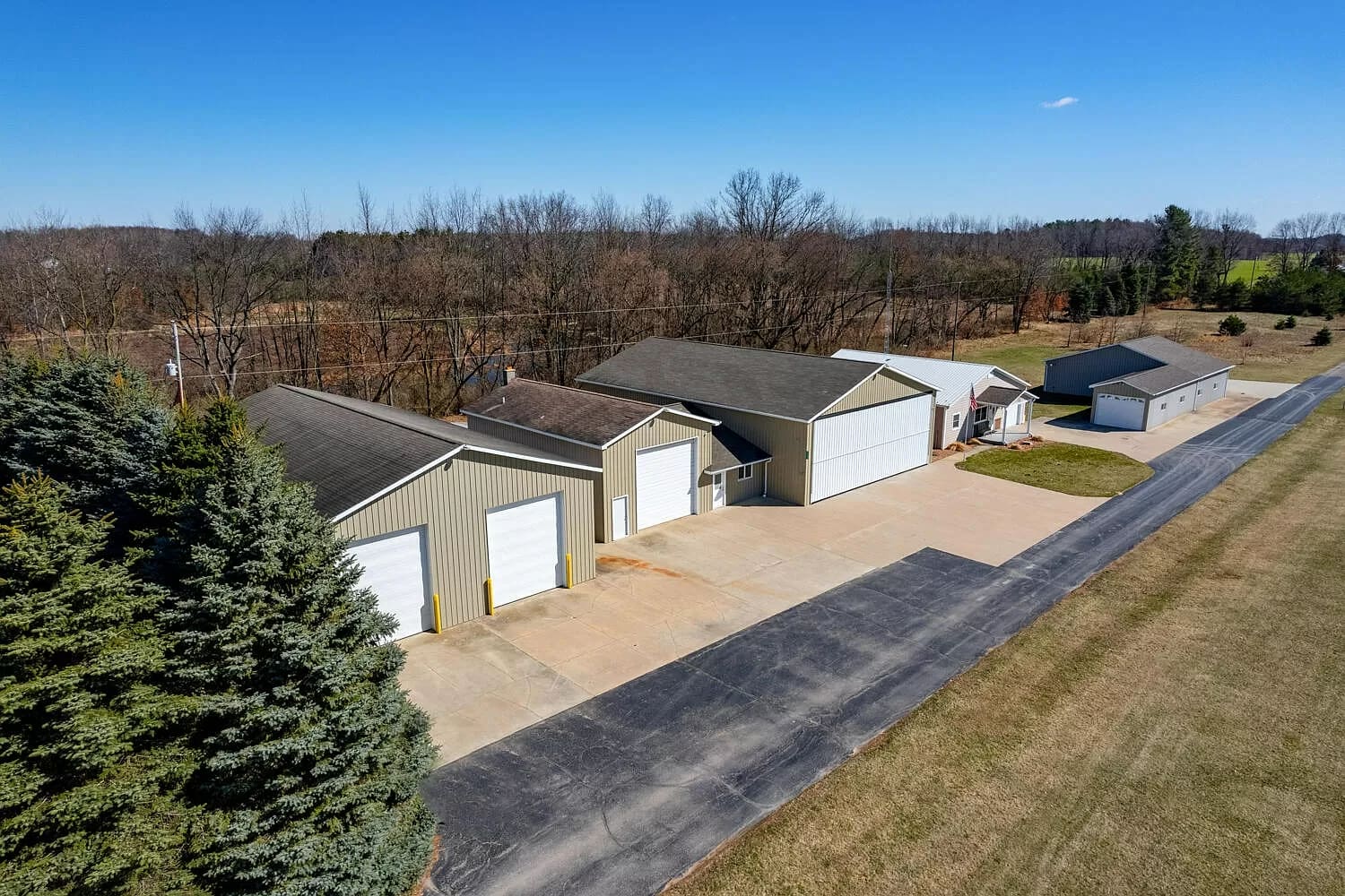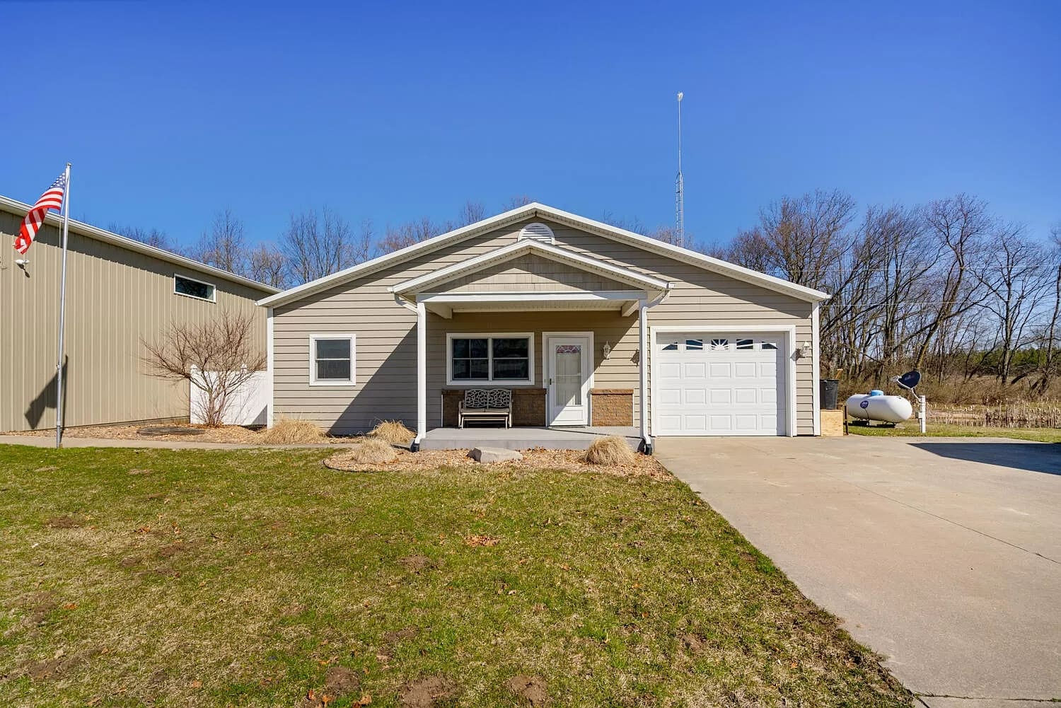 Welcome to Fairplains Airpark, a unique opportunity not only for pilots, but this would also be an ideal setup for auto enthusiasts, large scale hobbyists, collectors, artists or simply a great place to live while keeping all of your big toys safely stored indoors. We start with a sophisticated 2 bedroom, 2 full bath, ranch style home, built in 2005, with 8.59 acres, fenced backyard and a private pond. In front of the home is a 2000 foot grass runway that is shared with a very small group of neighbors. Inside, you’ll find a large kitchen with an abundance of cabinets and storage. The kitchen is open to a dining area with fireplace and an enclosed porch. Entertainers will love the bar area that connects the kitchen and living room. The main bedroom has it’s own bath, walk in closet and glass door to patio with electric in place for a hot tub. The home has an attached garage and a heated detached garage with attached hanger. On the other side of the home there is a series of 4 buildings. The first building is climate controlled with in floor radiant heat, 14’ doors, 16’ ceilings and a large loft area. A section of this building was used for indoor gardening. Walk through a short hall to the 2nd building that contains a mechanical shop with an oil change pit, crane beams, paint booth w/ventilation, compressed air system, wood stove, and another loft with a full bathroom and additional laundry. A beautiful office with heat and air connects the workshop to the massive final building. This last building is 41’x60’ with a hydraulic scissor door and propane heat. All of these buildings were built to the highest of standards and are way above and beyond average. Just 27 miles from Grand Rapids.