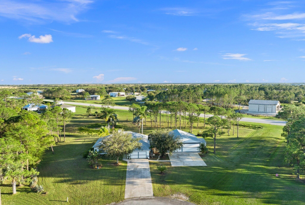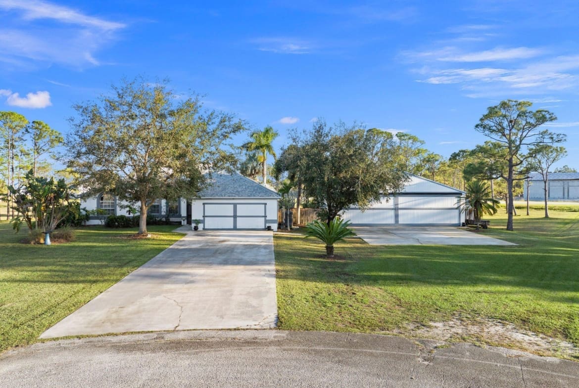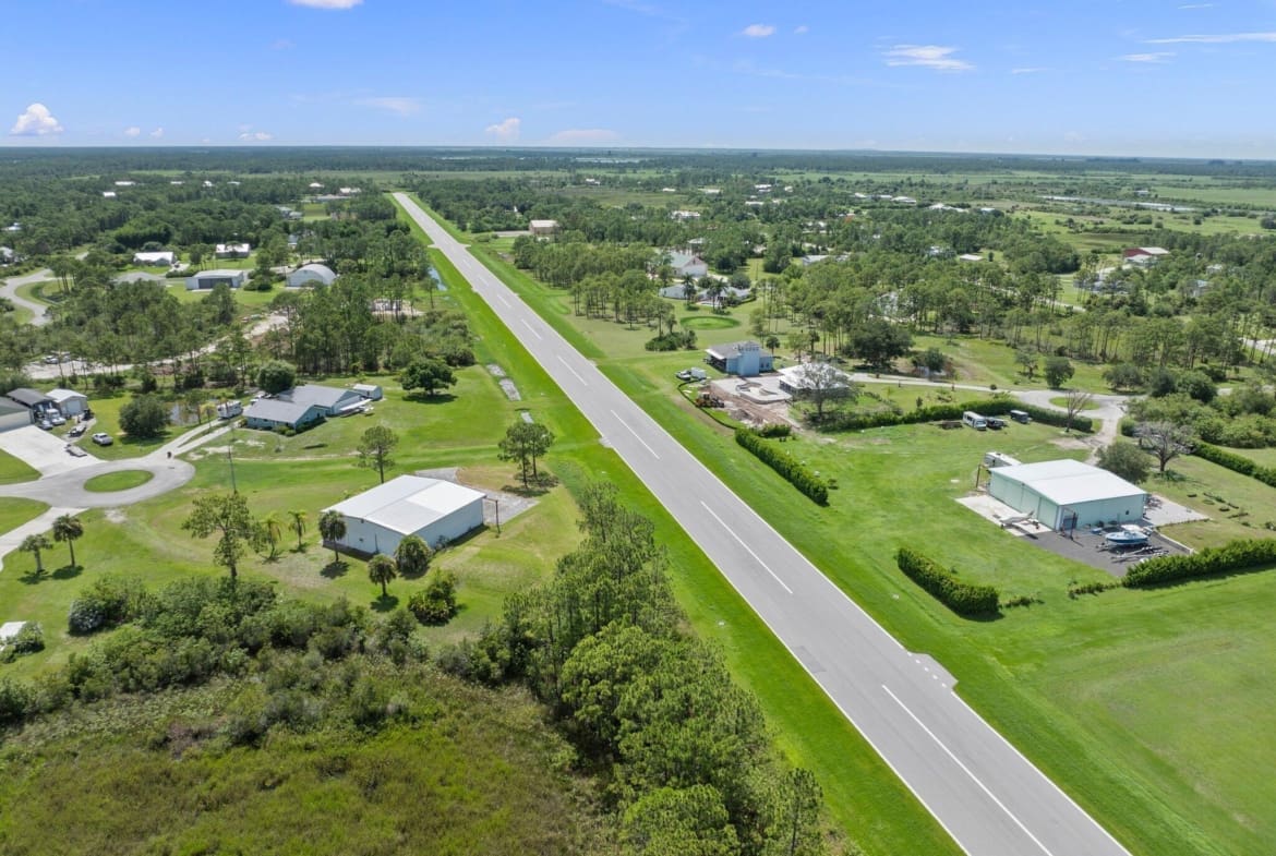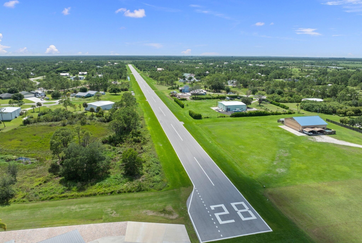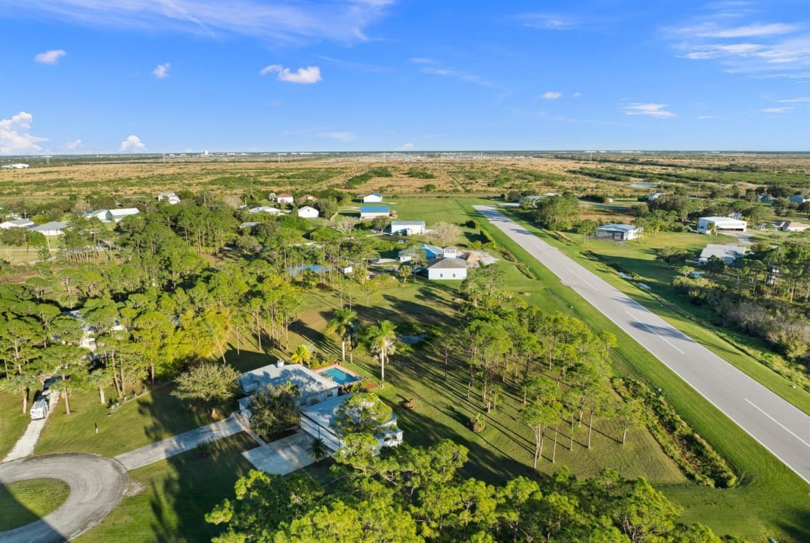 Discover this exceptional 3-bedroom, 2-bathroom custom-built home situated on 2.76 acres AG-5 zoned lot, offering ample space and endless possibilities in the prestigious Treasure Coast Airpark (FL 37). This unique property presents a rare chance to own a hangar home adjacent to one of South Florida’s longest hard-surfaced runways. The newly constructed 4,000-foot private, lighted asphalt runway can accommodate aircraft up to 12,500 pounds, with direct access via a grass taxiway leading straight to your hangar.Aviation enthusiasts will love the detached hangar featuring a hydraulic swing door (50x50x10), capable of accommodating an airplane with a 40-foot wingspan. The hangar also includes a shed, ideal for tools or a workshop. Practical upgrades include a new roof (2023) on both