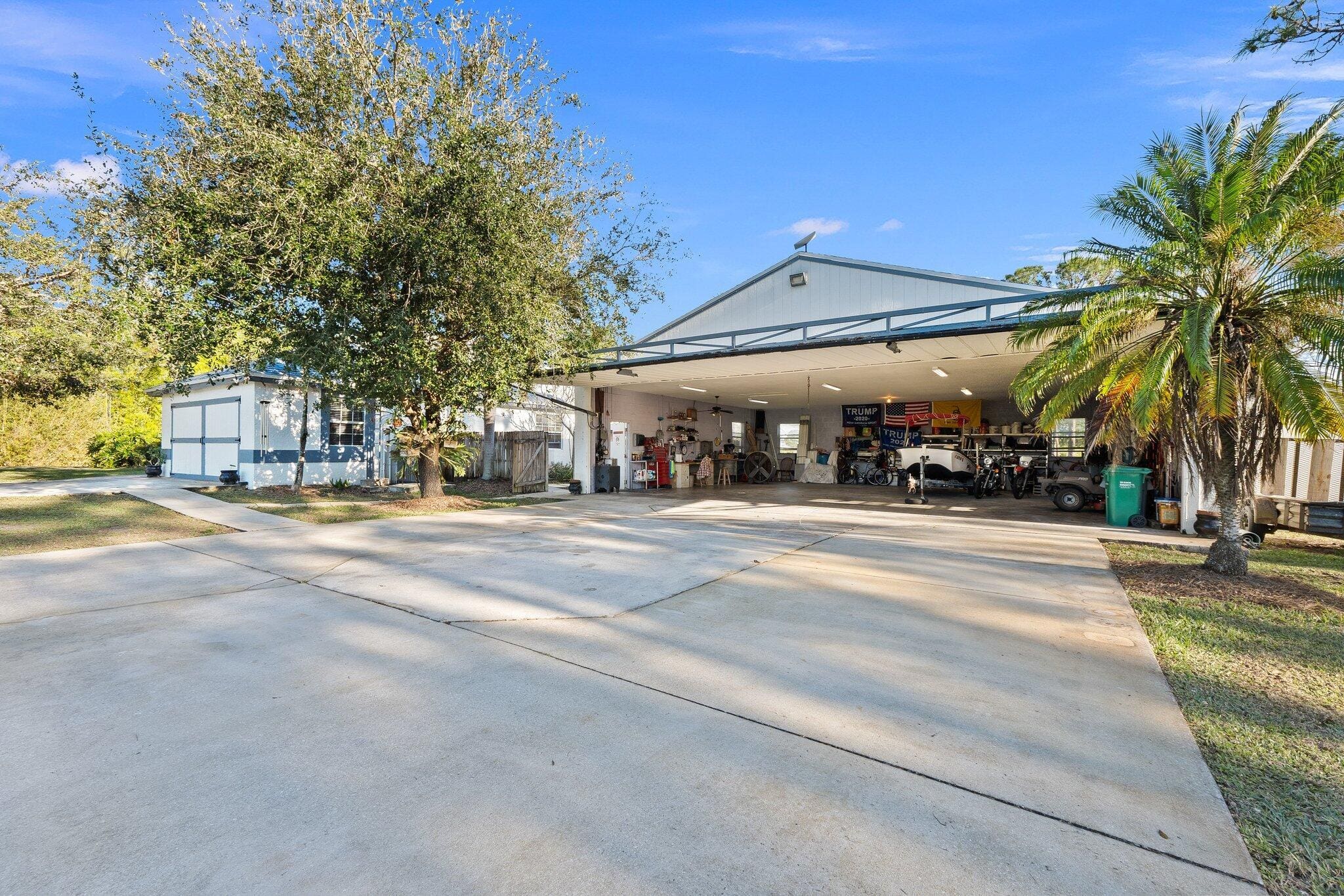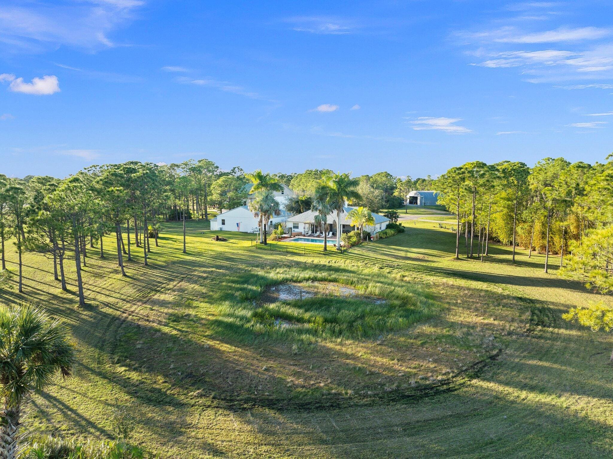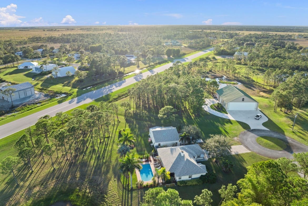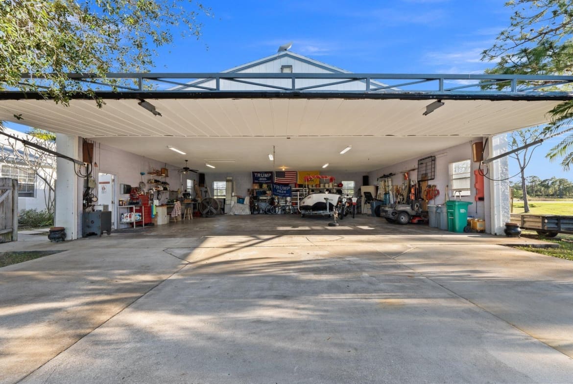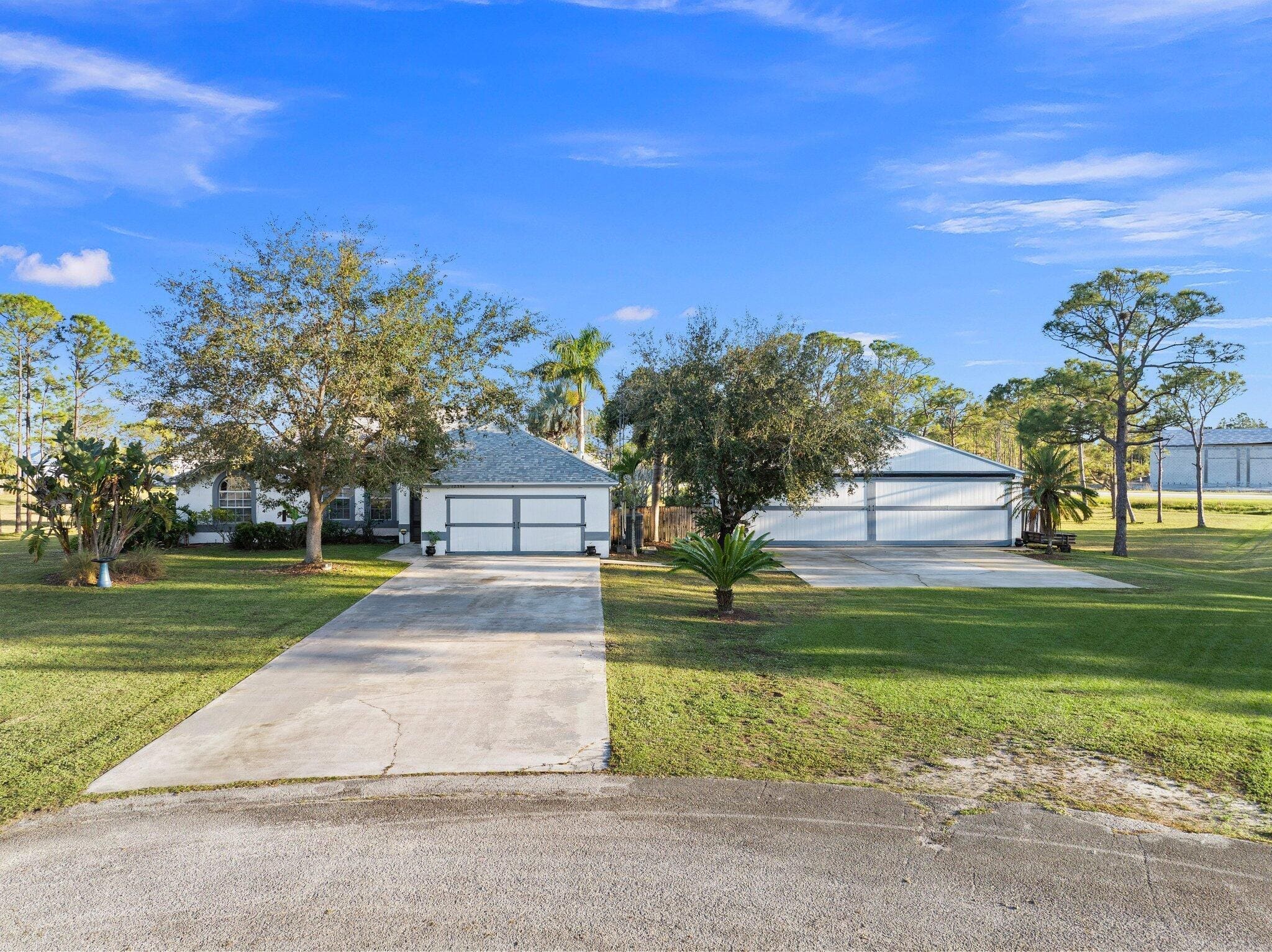 Discover this exceptional 3-bedroom, 2-bathroom custom-built home situated on 2.76 acres AG-5 zoned lot, offering ample space and endless possibilities in the prestigious Treasure Coast Airpark (FL 37). This unique property presents a rare chance to own a hangar home adjacent to one of South Florida’s longest hard-surfaced runways. The newly constructed 4,000-foot private, lighted asphalt runway can accommodate aircraft up to 12,500 pounds, with direct access via a grass taxiway leading straight to your hangar.Aviation enthusiasts will love the detached hangar featuring a hydraulic swing door (50x50x10), capable of accommodating an airplane with a 40-foot wingspan. The hangar also includes a shed, ideal for tools or a workshop. Practical upgrades include a new roof (2023) on both