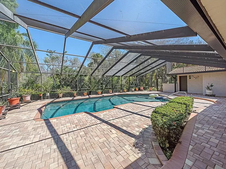 This is your opportunity to own a true estate. From the moment you turn onto the nature-lined private drive that delivers you to the expansive driveway, you’ll know you’ve found a special sanctuary. This home was quality built and lovingly maintained for the last 40 years by the original owners. Over 4000 square feet of living space situated on 10 tree filled acres. The large master bedroom is downstairs and has 2 walk-in closets with access to a private patio. The master bathroom has both a step in shower and gi-normous spa tub. The guest bedrooms are upstairs and each has a private en suite bathroom and walk in closets. There is a huge terrace off the guest bedrooms which would be perfect for roof top entertainment or private enjoyment. Besides the main kitchen with granite counters, there is an additional kitchen / laundry room with a walk-in pantry. The home is equipped with a Generac 14kw generator that will power all the essential items needed during a power outage. The office and game room are downstairs. The screened-in enclosure allows for year round enjoyment of the self cleaning, Pebble Tec finish, heated swimming pool, paver patio and outdoor kitchen. The garage has room for 2 cars and an airplane. Check out the floor plan for dimensions. The center beam of the hanger portion of the garage folds up allowing for 40 feet wide and 10 feet tall unobstructed entry. Hidden River is the only ”fly in” community with a paved runway in South West Florida. Not everyone has an airplane as there are so many other wonderful qualities to living here, including social events at the community clubhouse, fishing, horse trails and country hospitality. There isn’t enough room to describe all the many features of this home and that’s ok because you should come and see it for yourself how amazing it is. Make your appointment today!