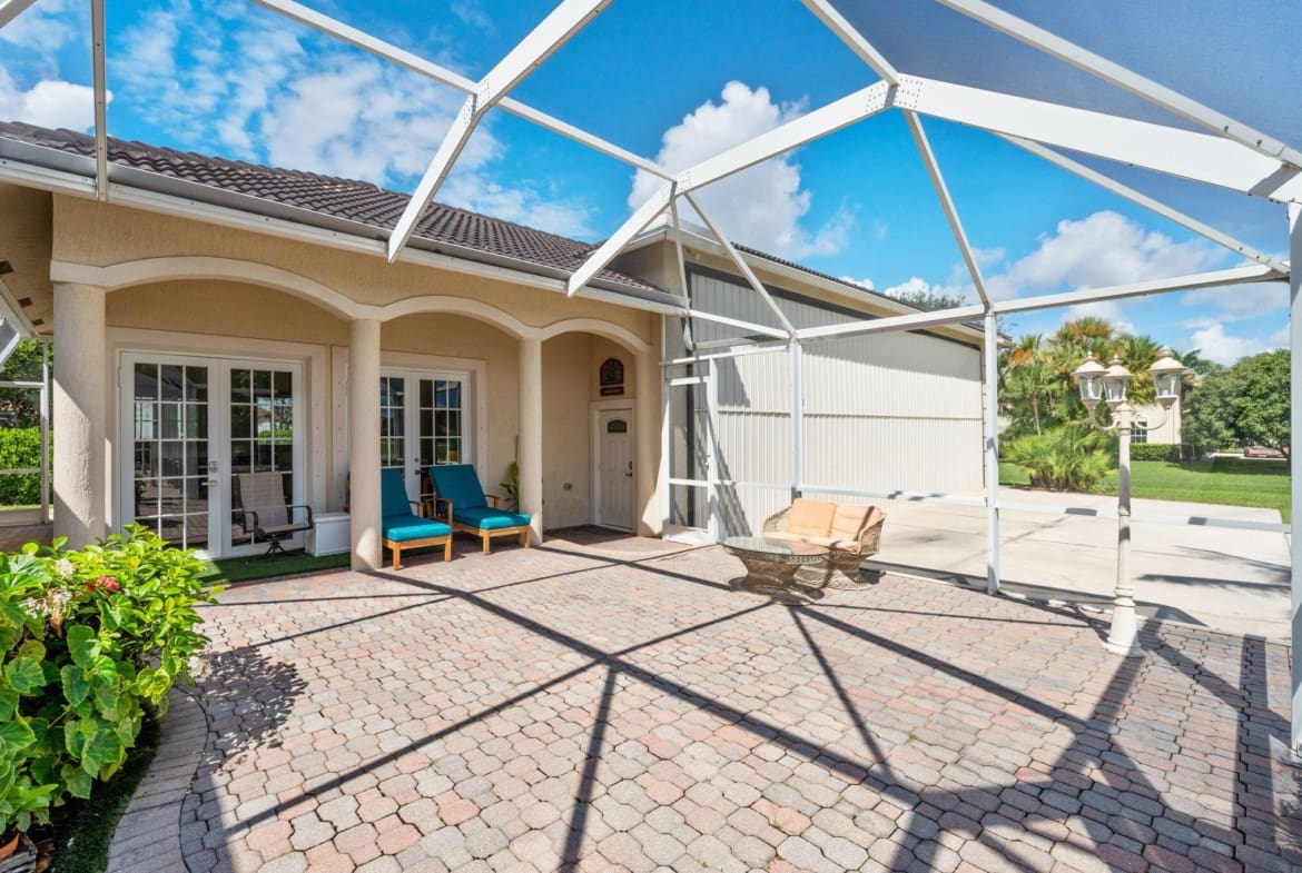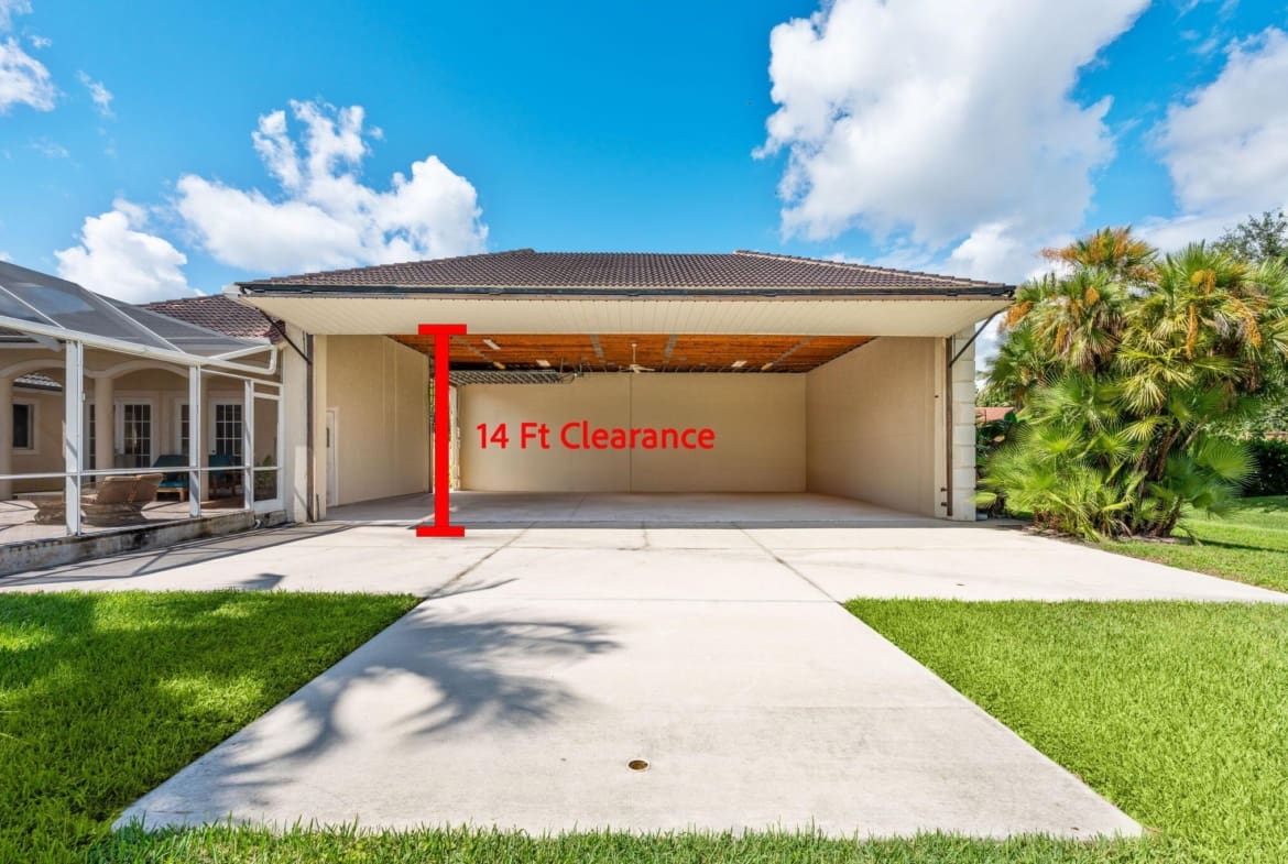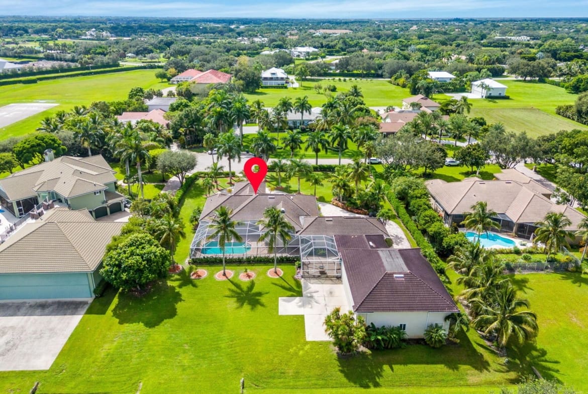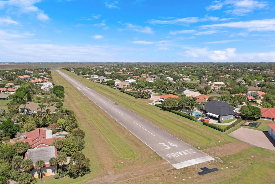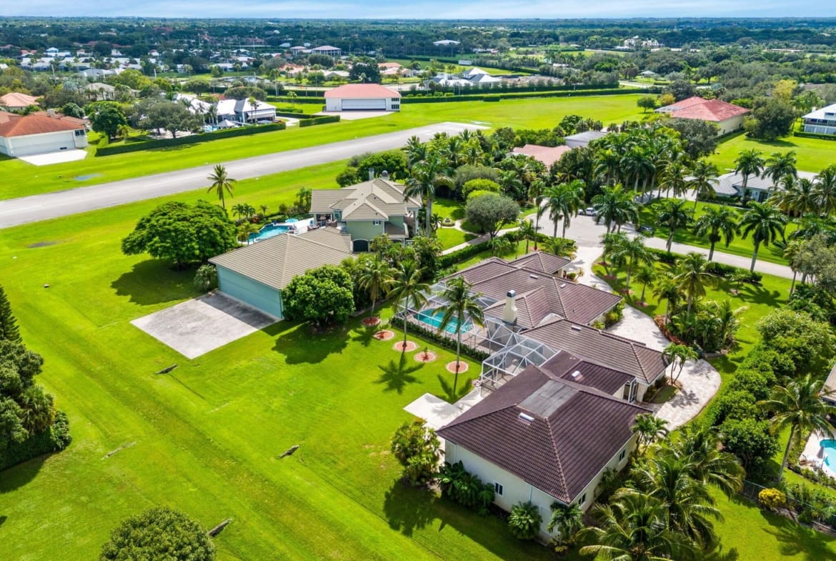 Experience unparalleled luxury and aviation lifestyle in Wellington’s prestigious Aero Club, where elegance meets direct runway access. Just one lot away from the community’s private, paved, and lighted 4,000-ft runway, the property provides unimpeded access for aircraft up to 12,500 lbs. gross takeoff weight, with fueling and additional parking available. A private 2,000 sq. ft. hangar, built in 2008, features impact-resistant windows and doors, a 50′ x 40′ interior with a 14-ft clearance bi-fold door to accommodate most jets and turboprops, plus an additional 10′ x 14′ door designed for RVs and buses. Engineered to withstand sustained winds of up to 140 mph, the hangar is a rare asset for pilots and aviation enthusiasts.