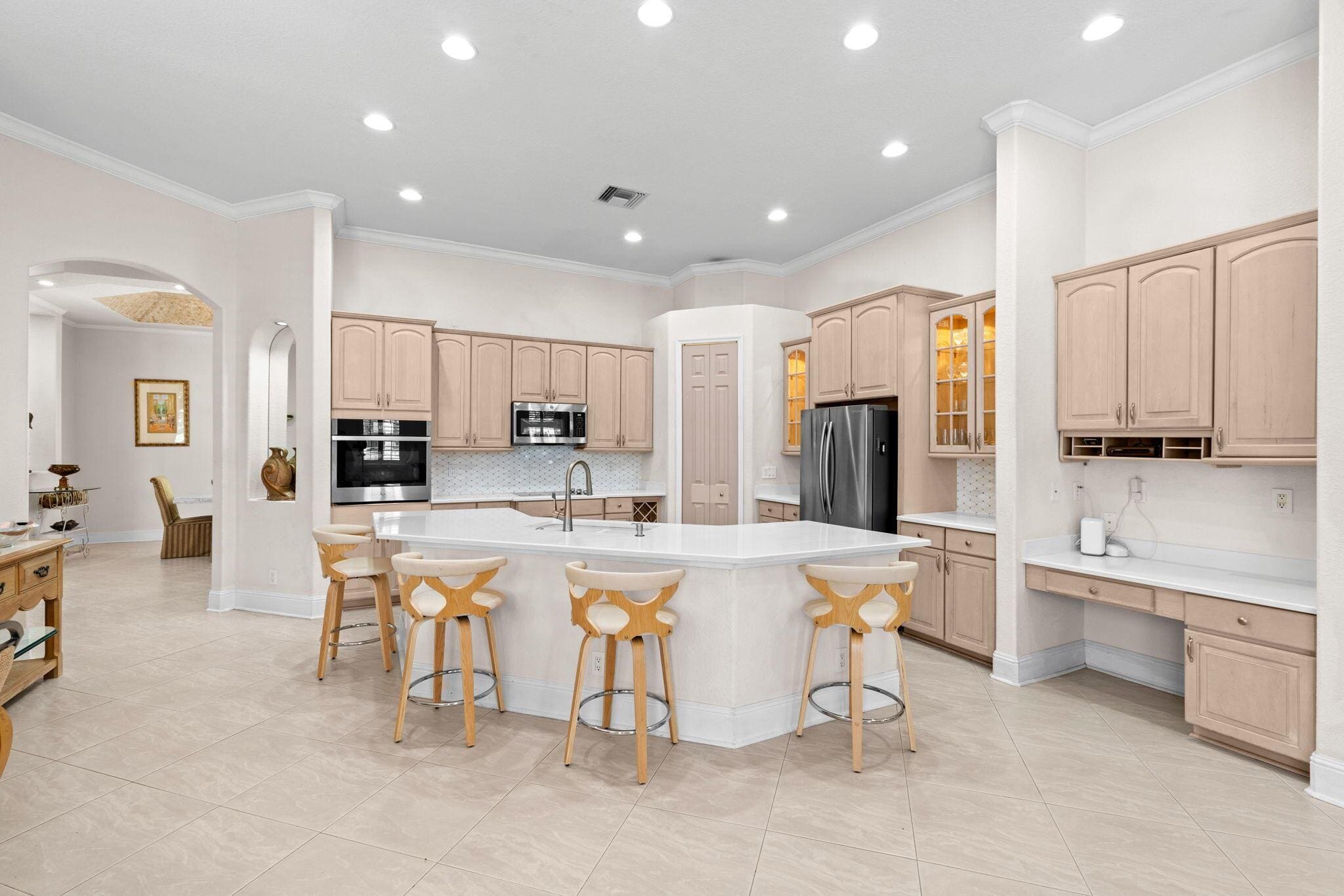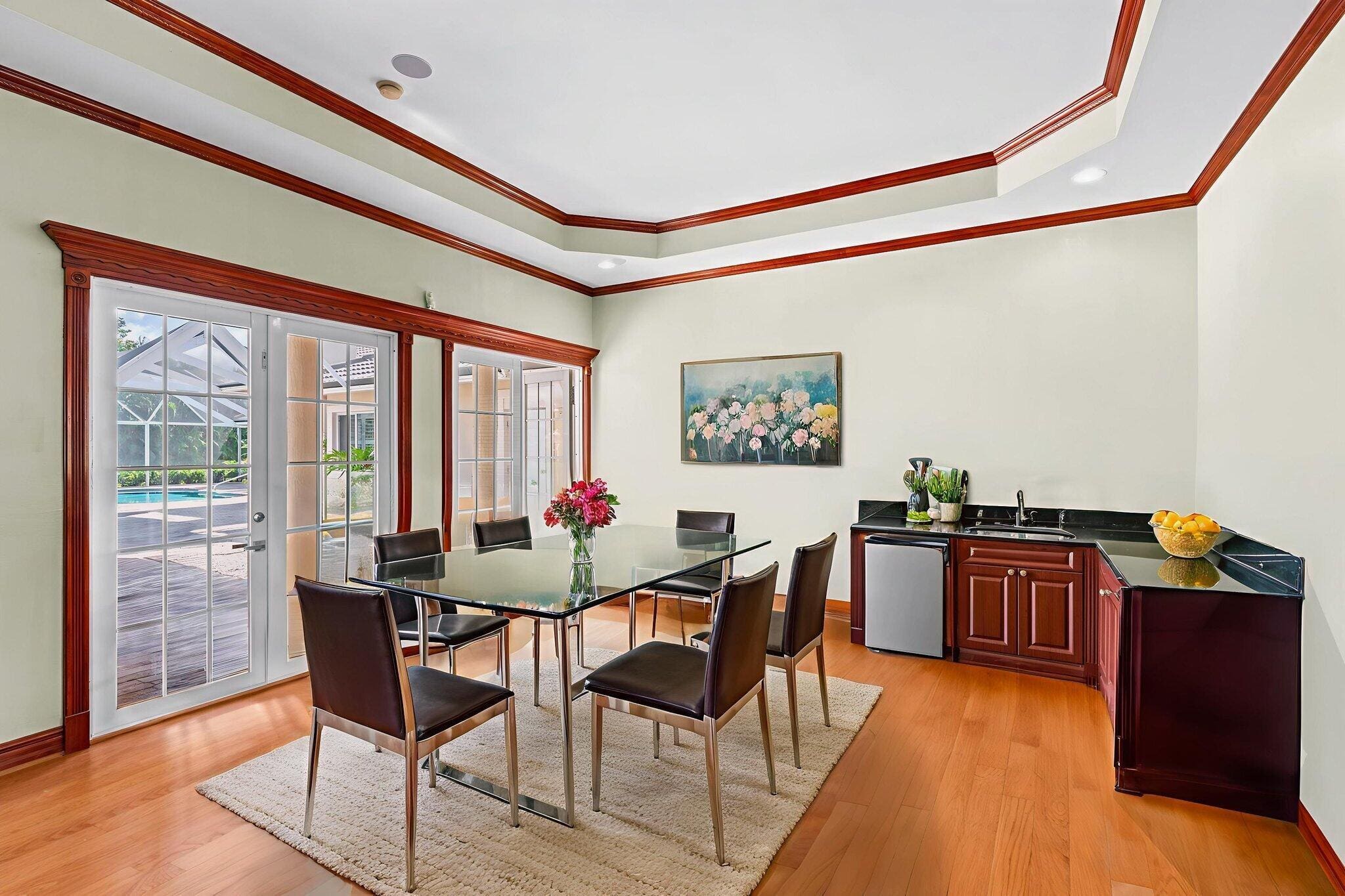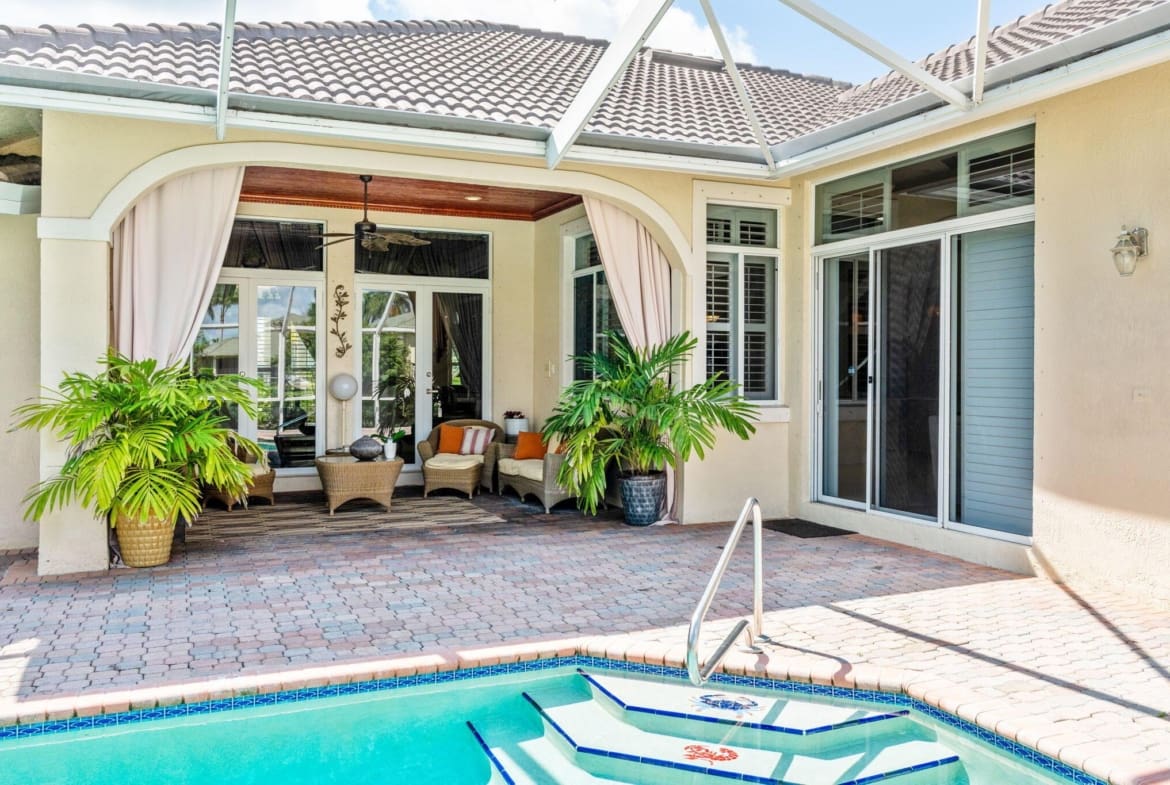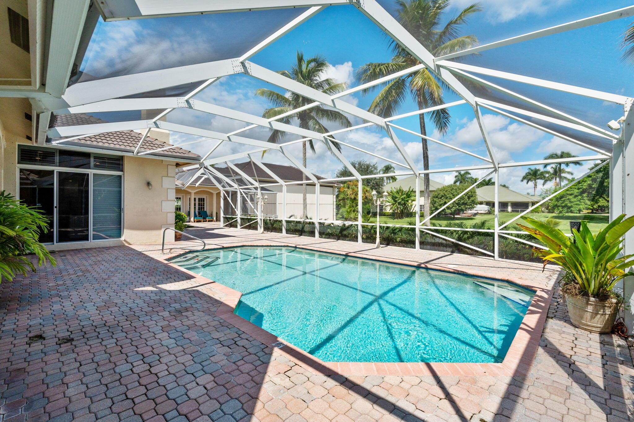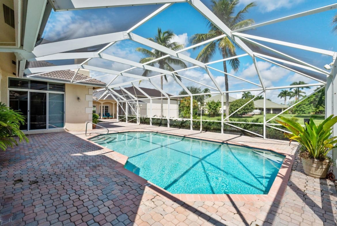 This custom estate offers 7,240 total square feet of luxury living, including 3,707 sq. ft. under air: 3,289 sq. ft. in the main house and a 418 sq. ft. game room with a split AC unit that opens to the oversized screened patio. The home features 5 bedrooms (one currently used as an office) and 4 full bathrooms. The 2,651 sq. ft. patio includes standing lights and a 450 sq. ft. heated pool with a new heater, perfect for entertaining. A huge extended driveway provides ample parking, ideal for gatherings and hosting guests.