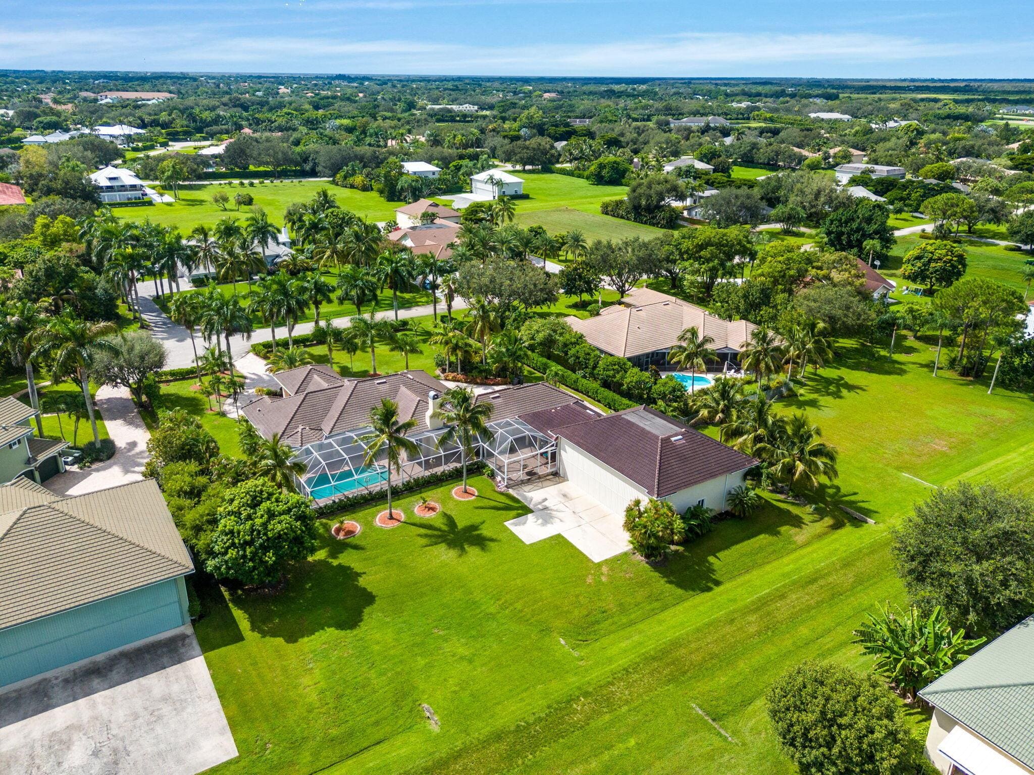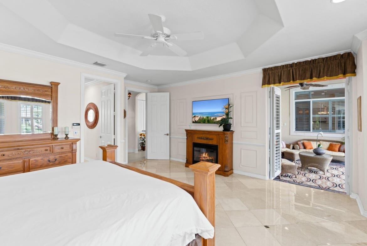The oversized 3-car garage (23 ft. deep by 34 ft. wide, featuring 8-ft. high impact-resistant doors) accommodates large SUVs, while the porte-cochere provides covered entry during inclement weather. Interior highlights include 8-ft. solid-core doors, plantation shutters, quartz countertops, two jetted Jacuzzis, upgraded factory-tinted impact sliders, central vacuum, and a gas fireplace. Additional features include a 2021 Roof, 250-gallon propane tank, 100-ft irrigation well, outdoor kitchen-ready hookups, newer AC units (under 4 years old), a newly serviced septic system, and new gutters around the main house and hangar. Built with superior construction featuring tie-beams, tie-columns, and a two-foot roof overhang, the home is enhanced by professional landscape lighting and a quiet cul-de-sac location for added privacy. Residents enjoy low HOA and unparalleled amenities, direct runway access, proximity to world-class equestrian venues, shopping, dining, and an A-rated school district. Dining room chandelier does not convey, and some photos have been digitally staged.