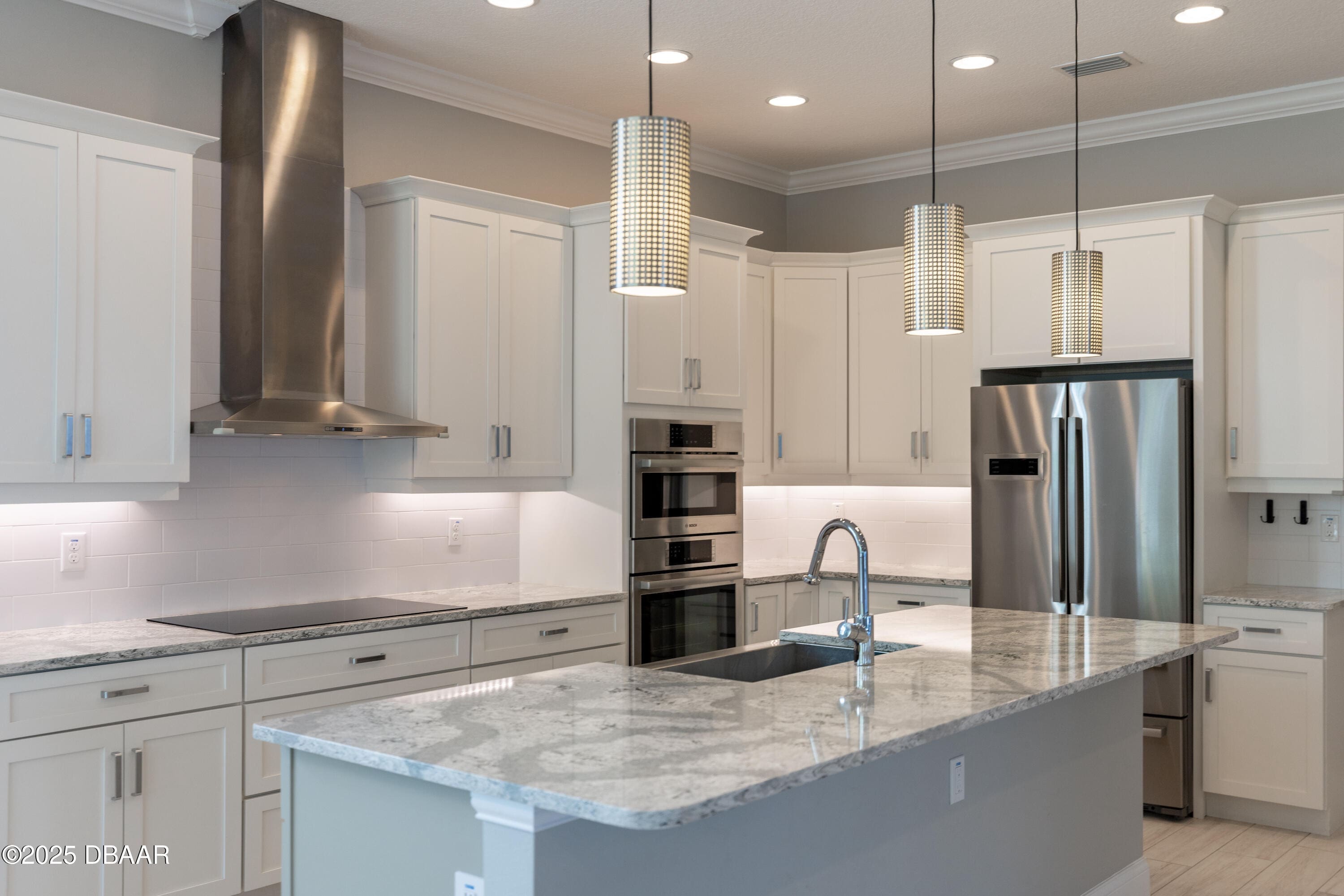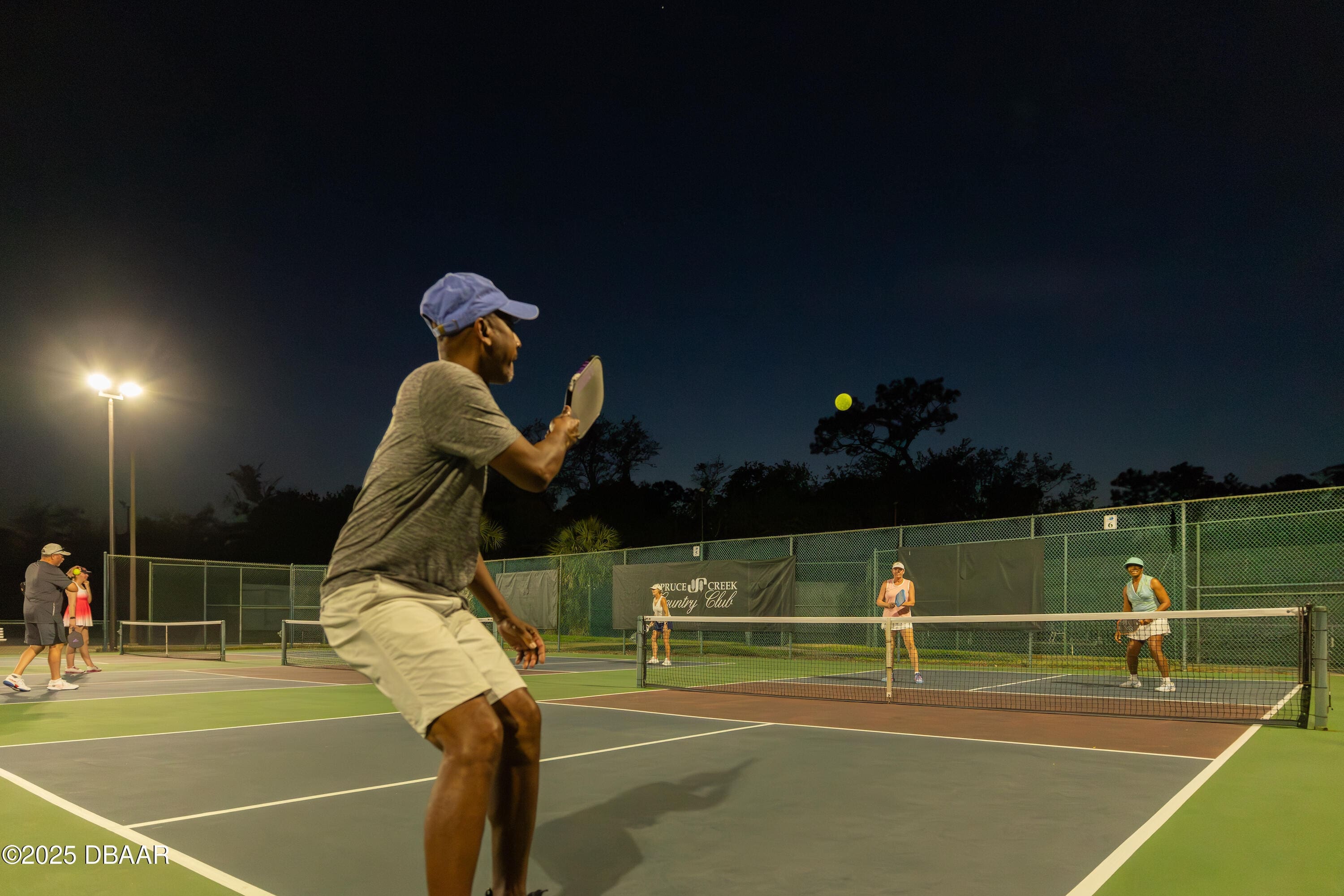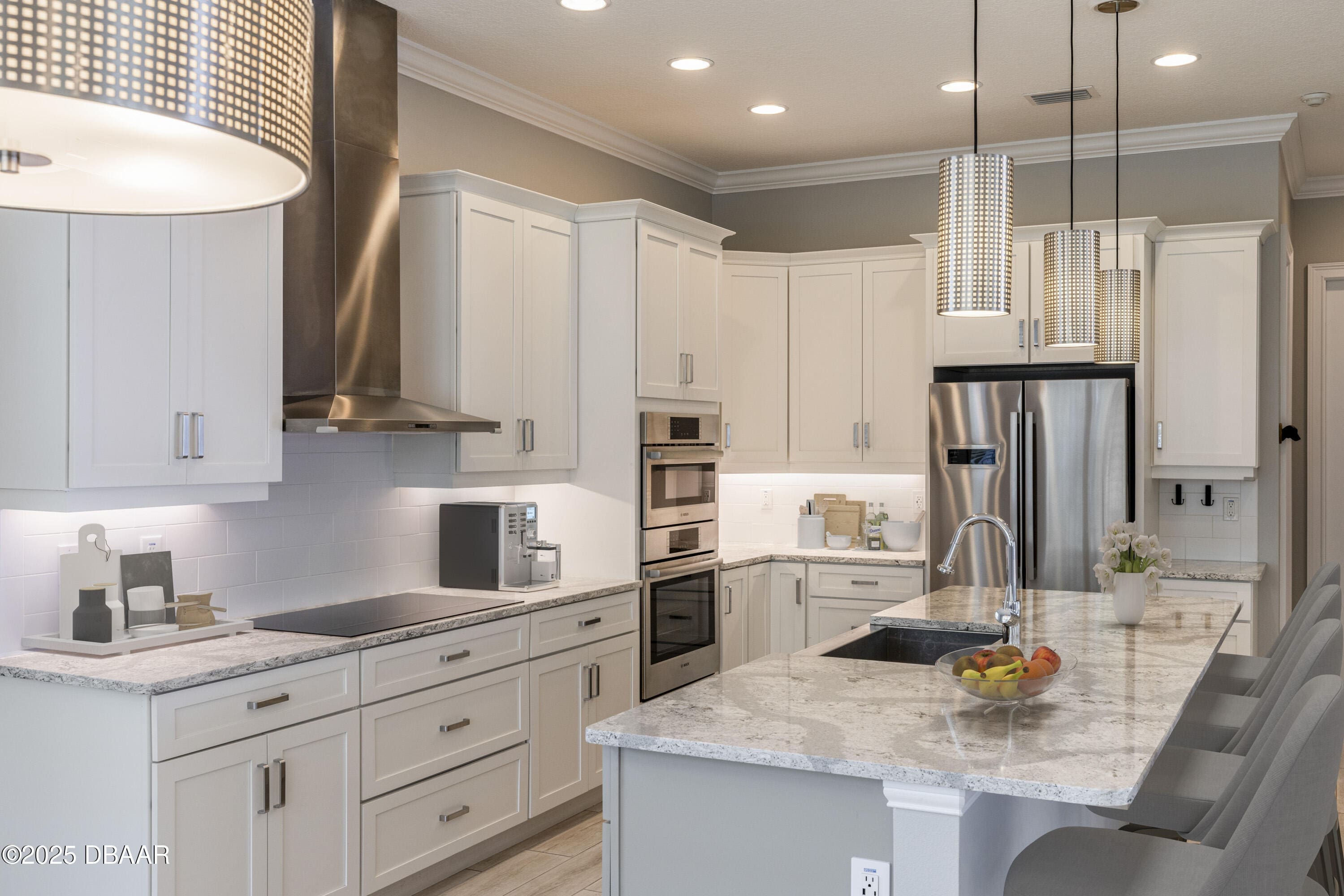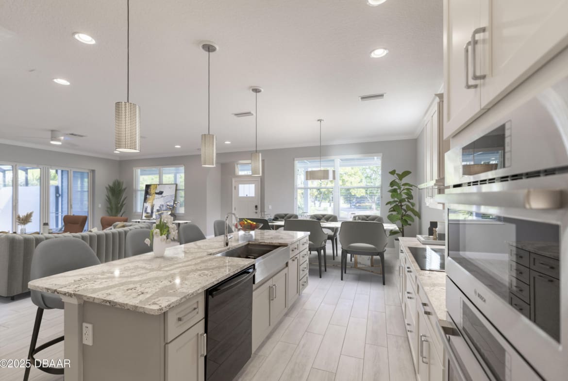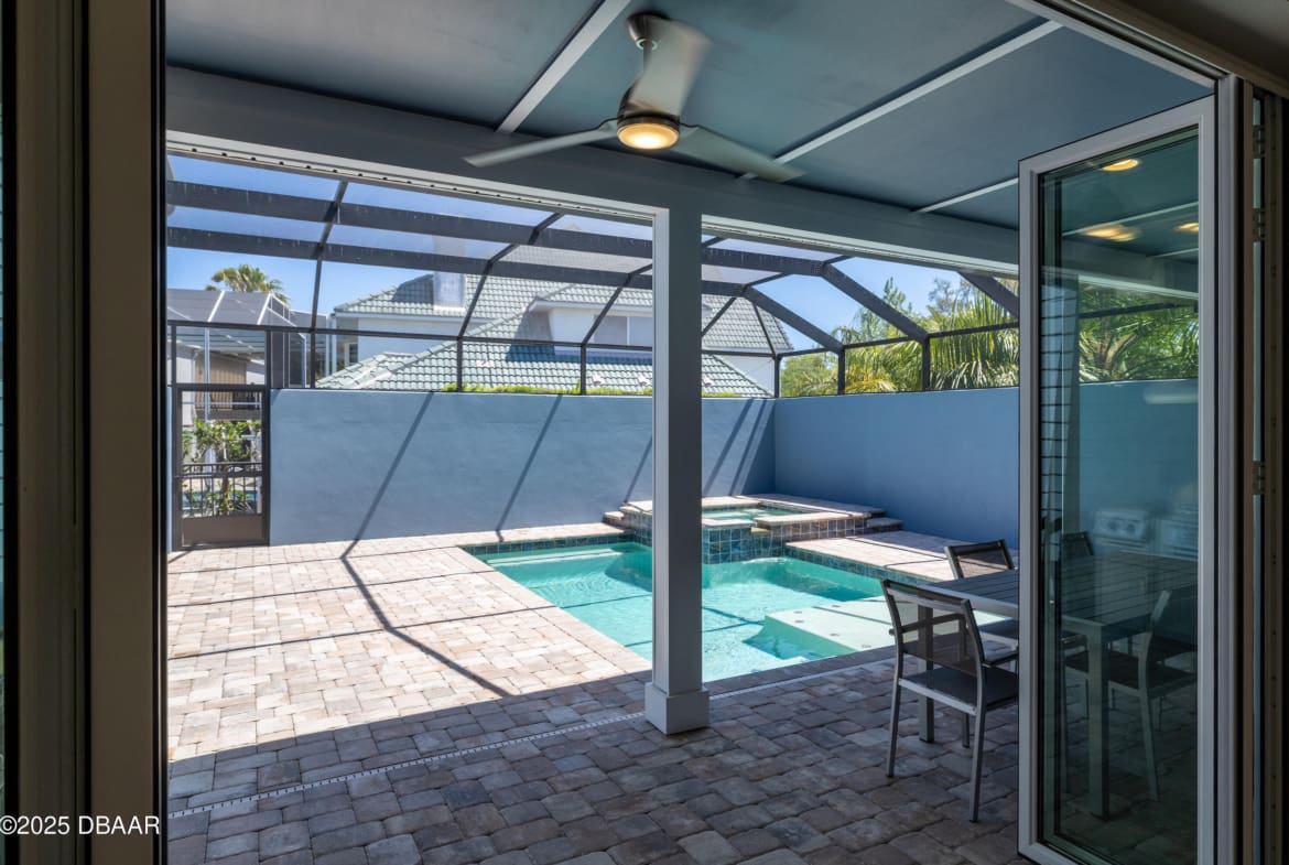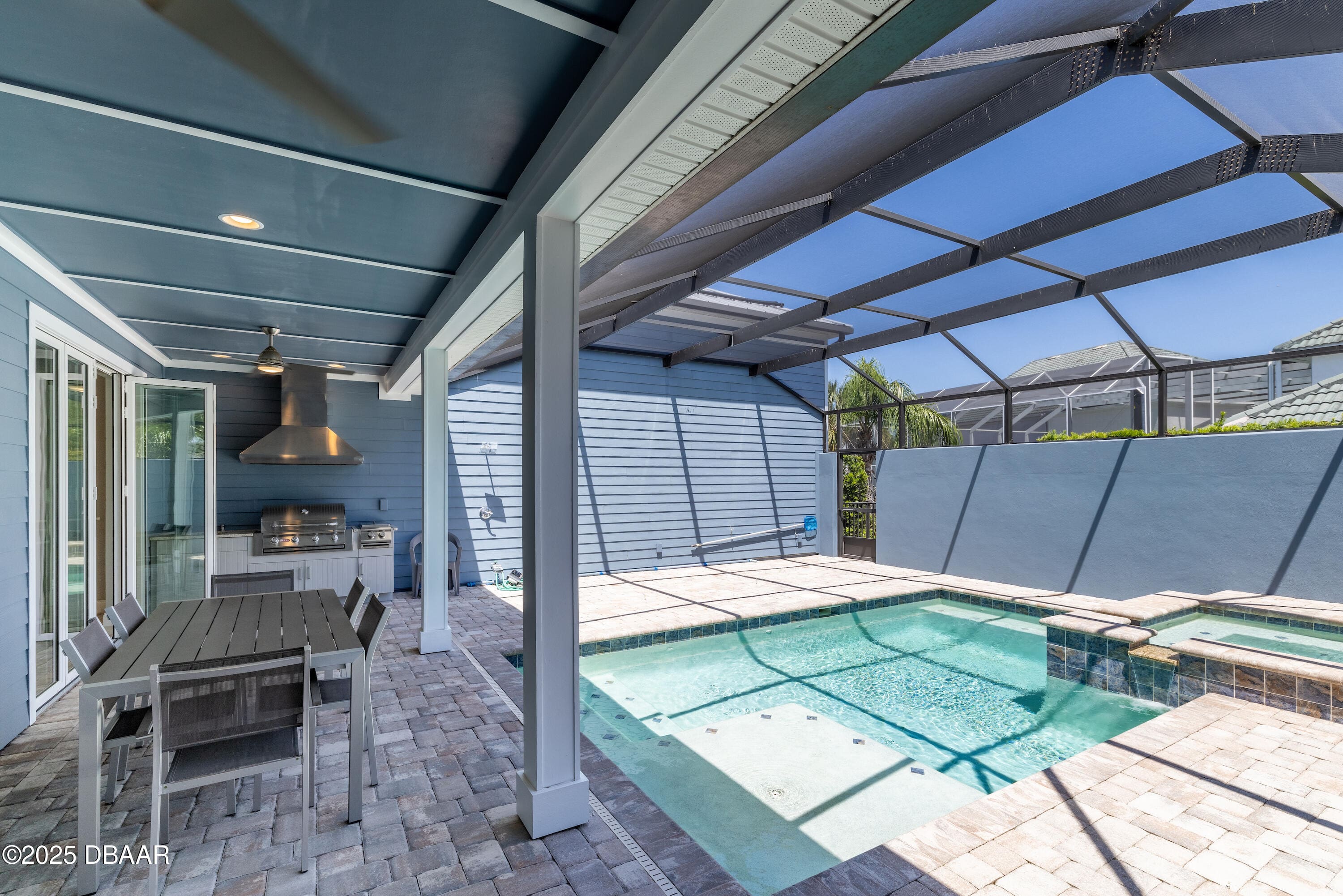 This 2017 custom-built hangar home features 2,732 sq ft of living space, aprox 36’x46′ air-conditioned hangar with a 44’W x 14’H Higher Power hydraulic door (174 mph rated), and a 2-car + golf cart garage. Built up high with block construction and foam insulation, this home includes a Galvalume metal roof, porcelain tile throughout, Bosch & Miele appliances, and a smart layout designed for entertaining. The screened lanai boasts a solar + propane heated saltwater pool, thermal spa, outdoor kitchen, and hurricane-rated enclosure. Commercial grade whole-house generator (35 kW, 1,000 gal propane), Control4 automation security system, water filter and softener, and Beam central vacuum system. Located in the famous Spruce Creek Fly-In community with a private 4,000′ runway, staffed security, parks, Spruce Creek river access, on-site café, optional golf, fitness, and more—all just 7 miles from the beach! Builder’s warranty through 2027. All details deemed accurate; Buyer/Agent to confirm.