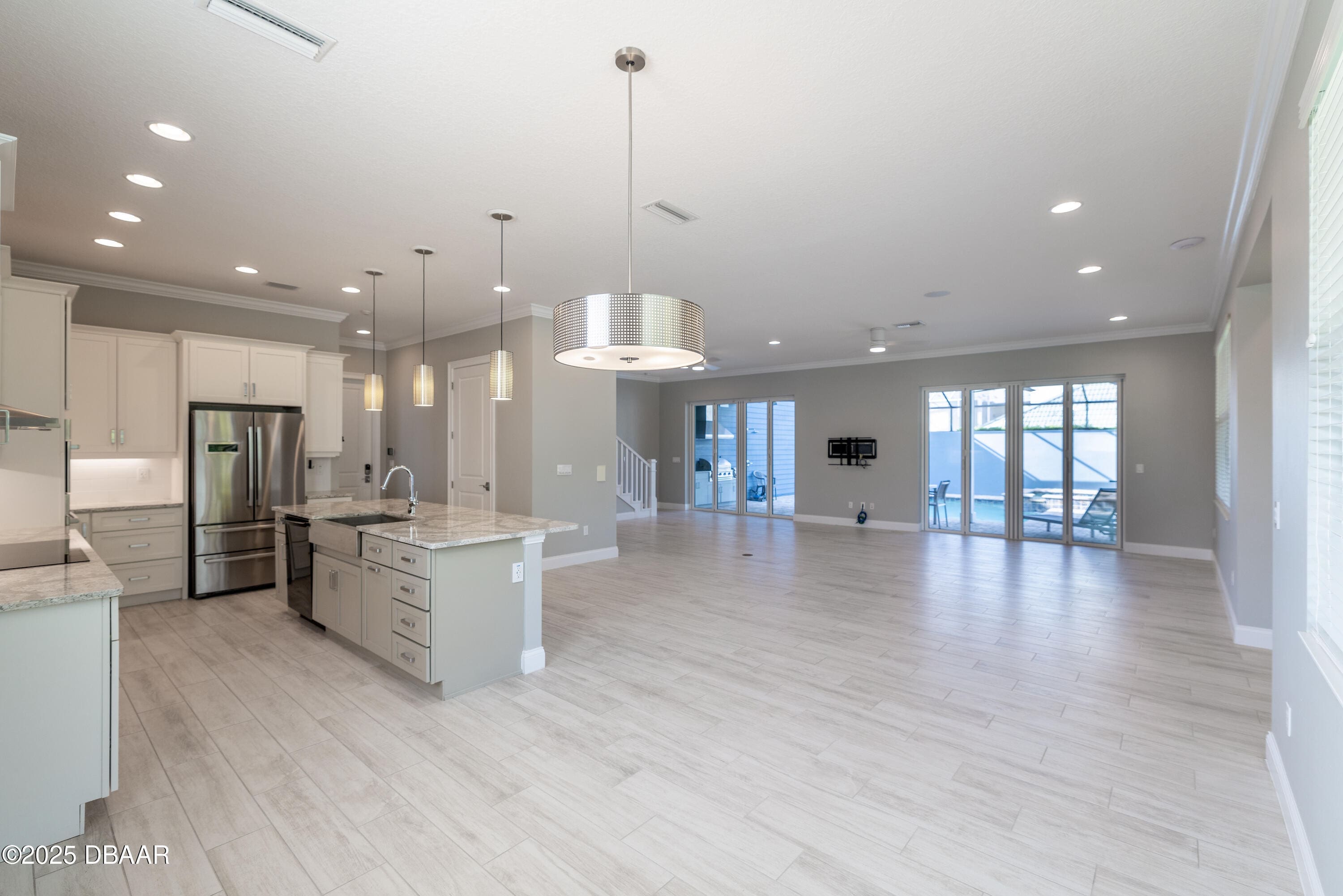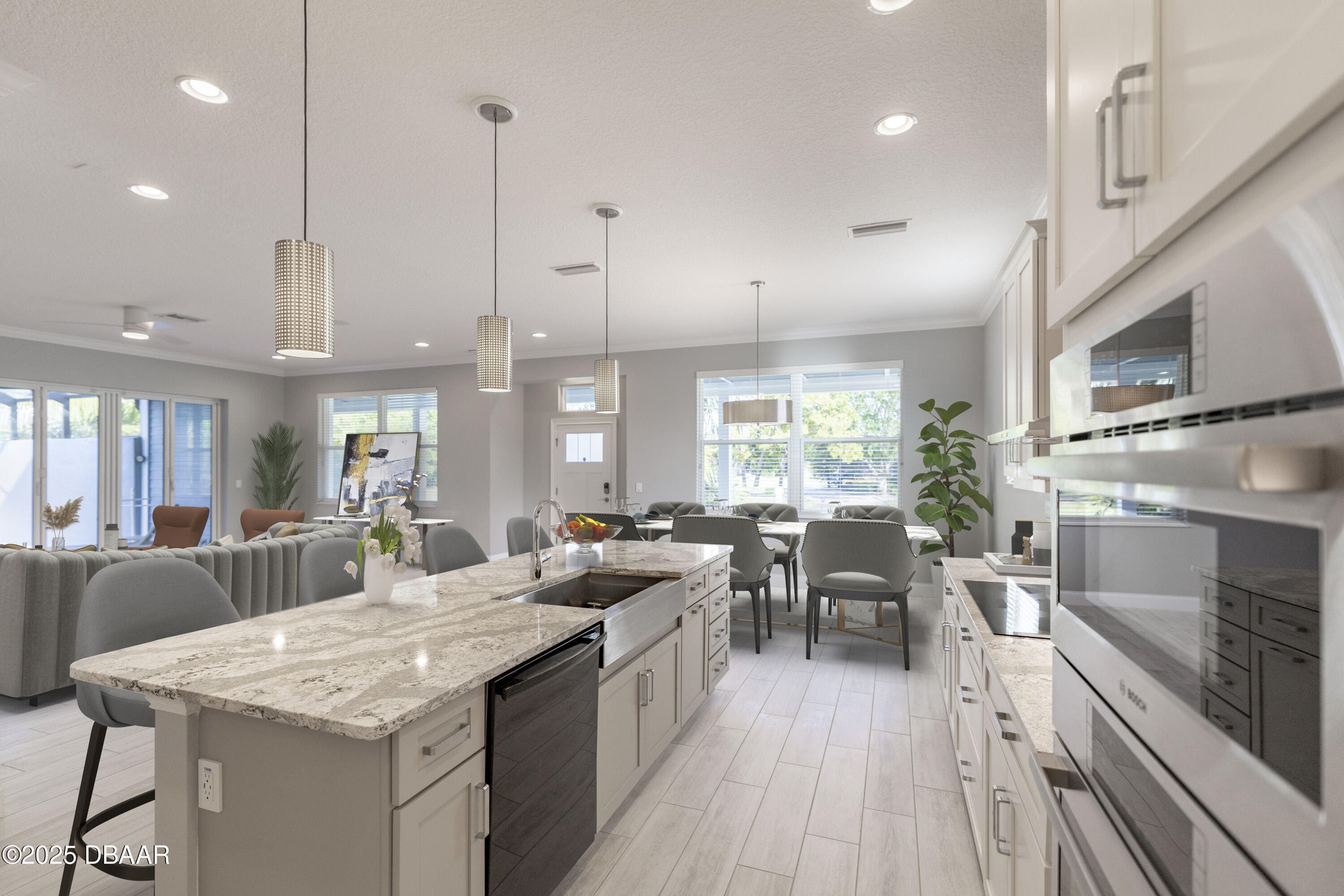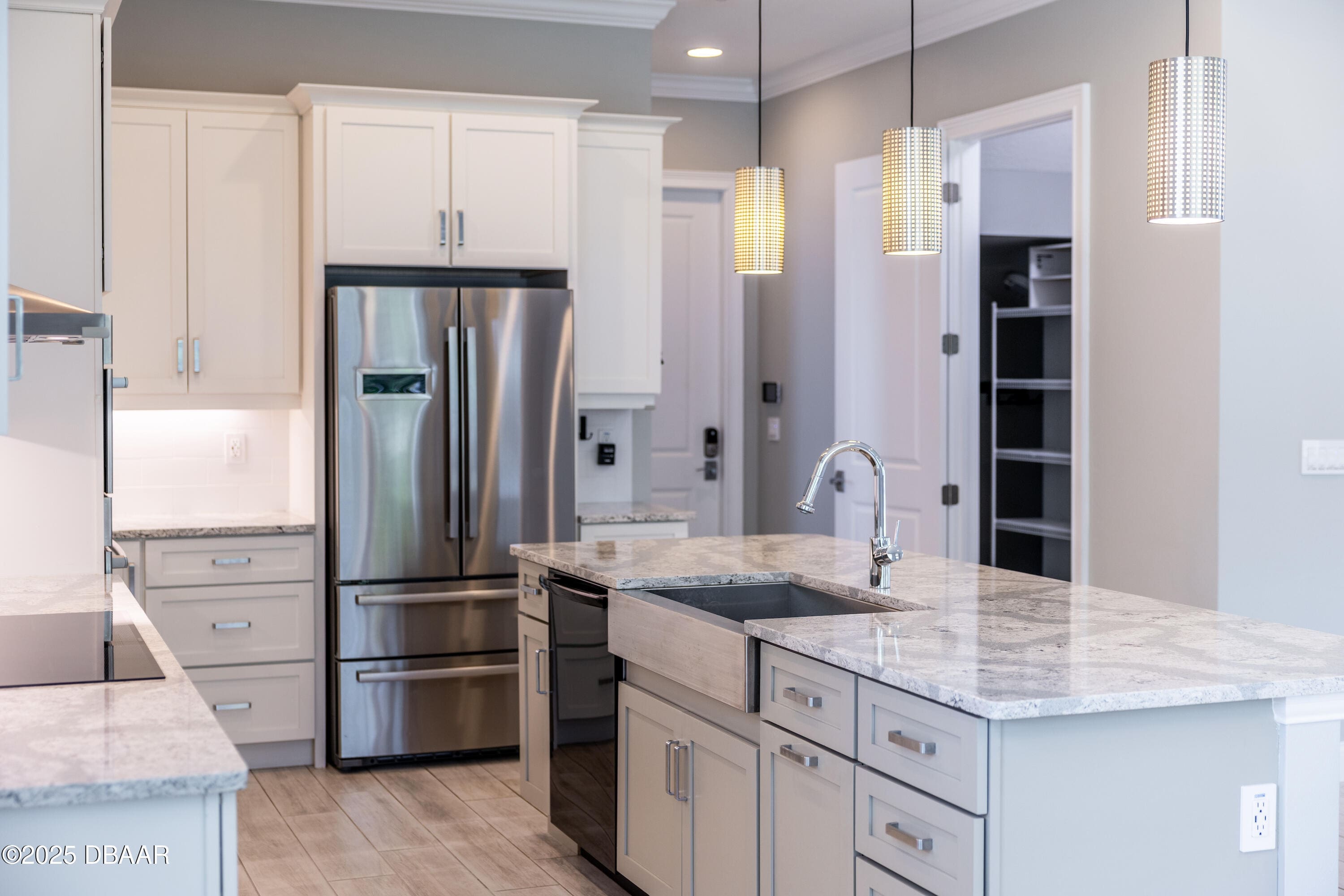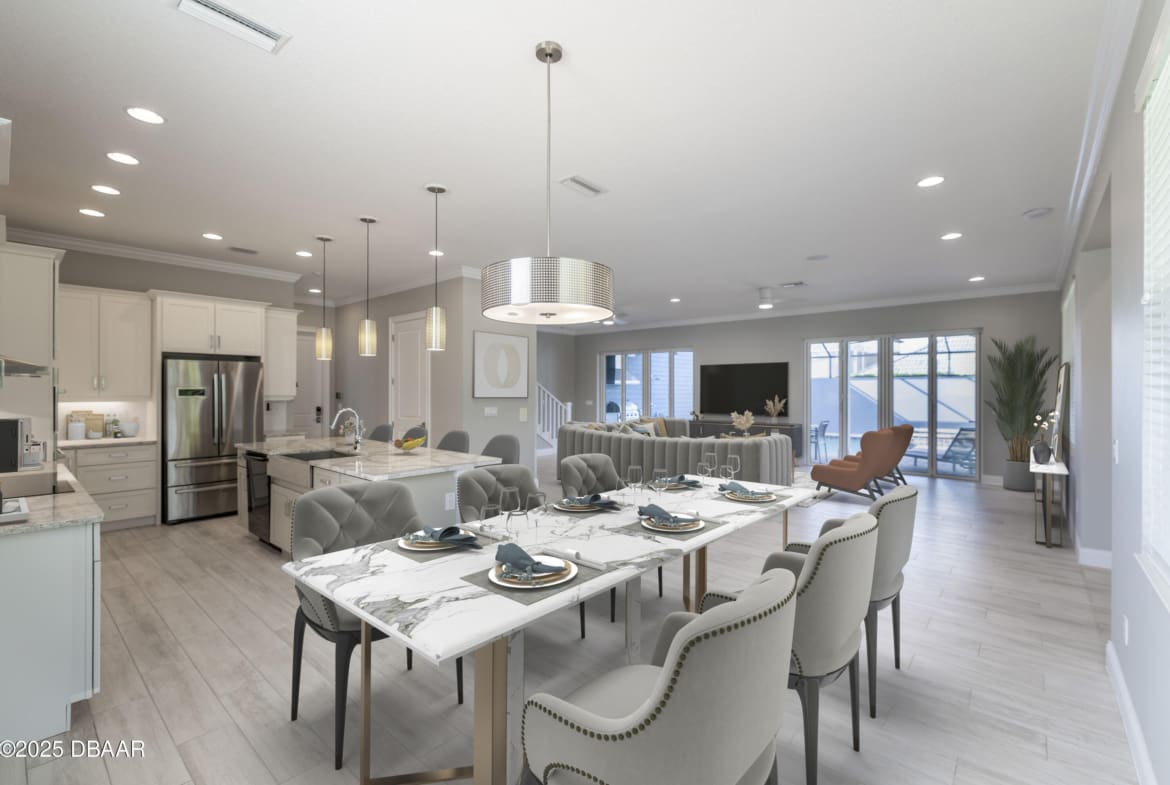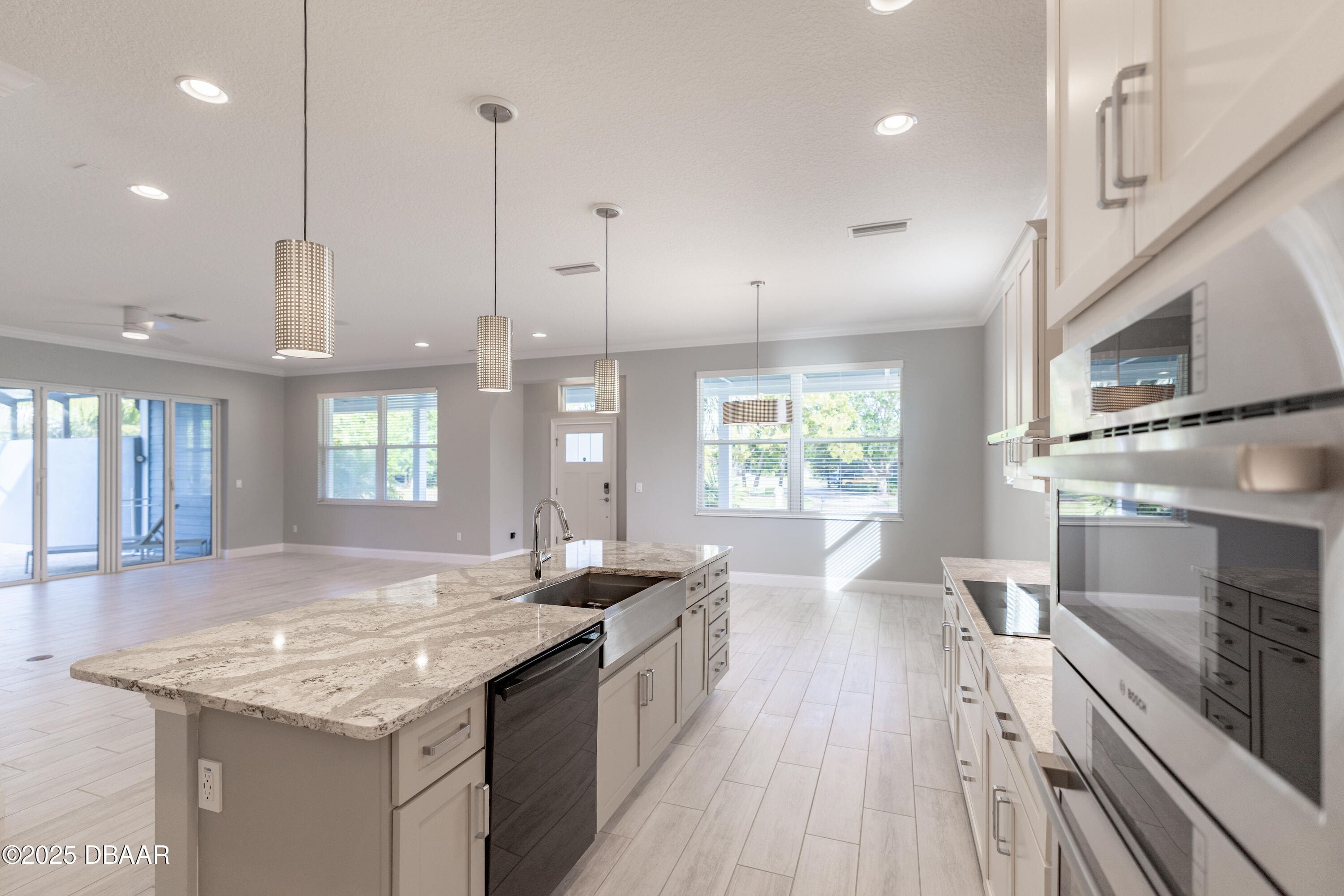 This 2017 custom-built hangar home features 2,732 sq ft of living space, aprox 36’x46′ air-conditioned hangar with a 44’W x 14’H Higher Power hydraulic door (174 mph rated), and a 2-car + golf cart garage. Built up high with block construction and foam insulation, this home includes a Galvalume metal roof, porcelain tile throughout, Bosch & Miele appliances, and a smart layout designed for entertaining. The screened lanai boasts a solar + propane heated saltwater pool, thermal spa, outdoor kitchen, and hurricane-rated enclosure. Commercial grade whole-house generator (35 kW, 1,000 gal propane), Control4 automation security system, water filter and softener, and Beam central vacuum system. Located in the famous Spruce Creek Fly-In community with a private 4,000′ runway, staffed security, parks, Spruce Creek river access, on-site café, optional golf, fitness, and more—all just 7 miles from the beach! Builder’s warranty through 2027. All details deemed accurate; Buyer/Agent to confirm.