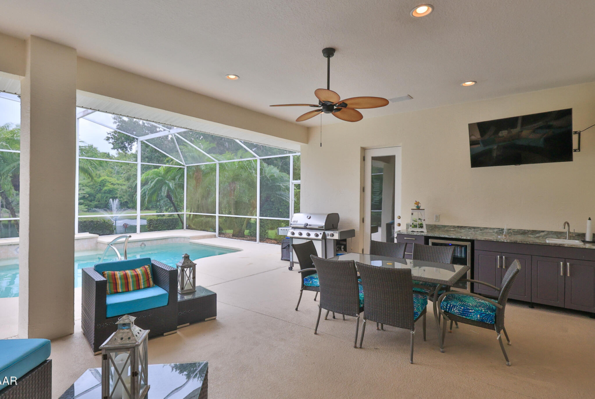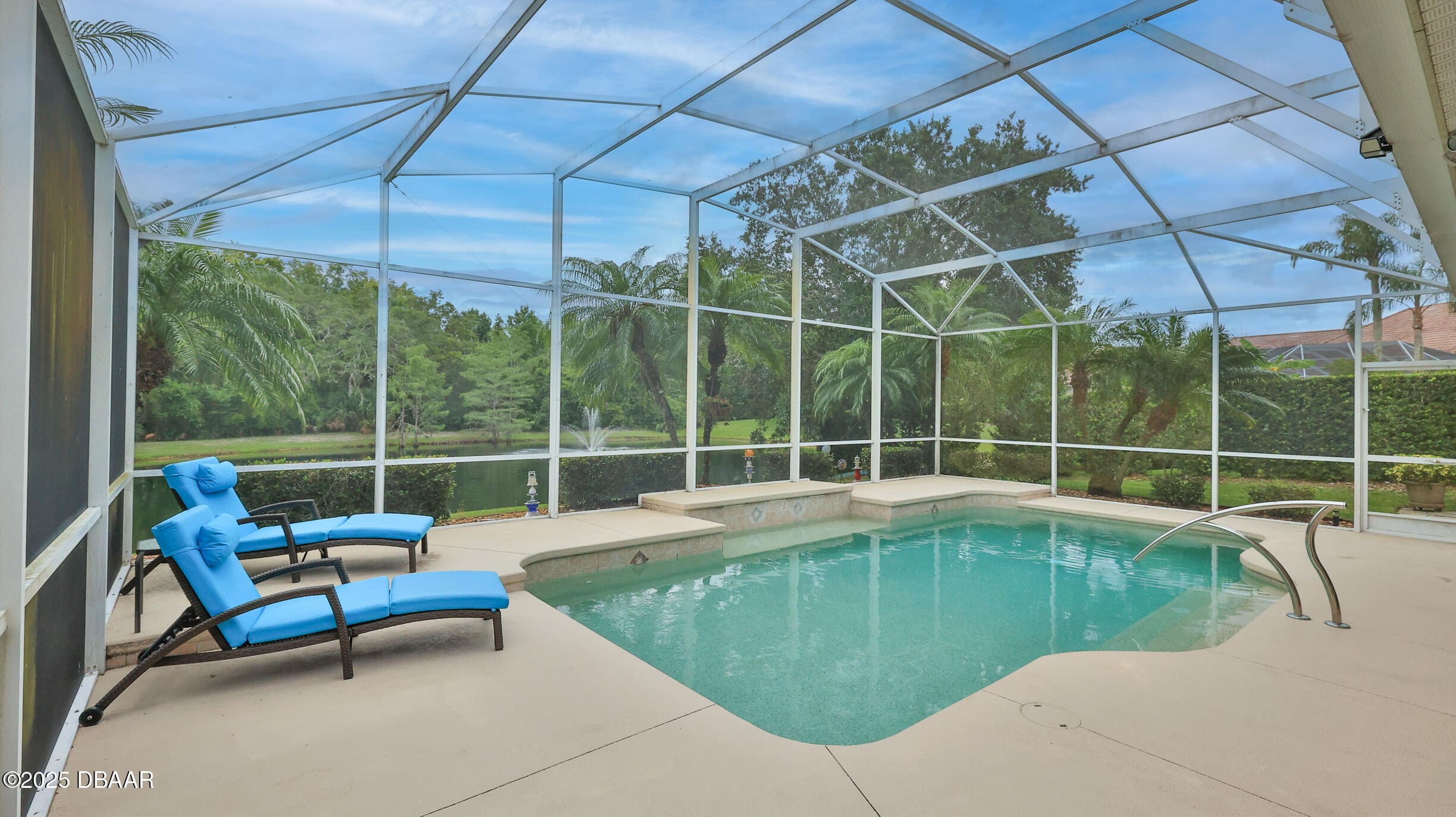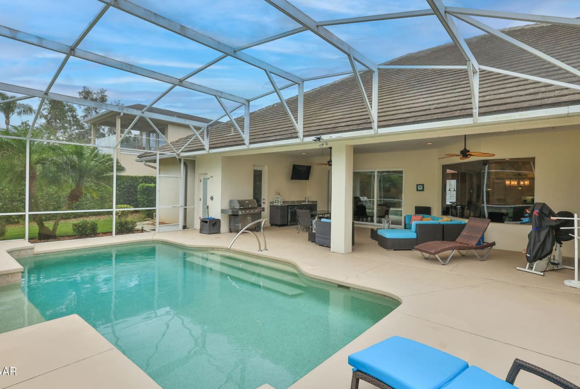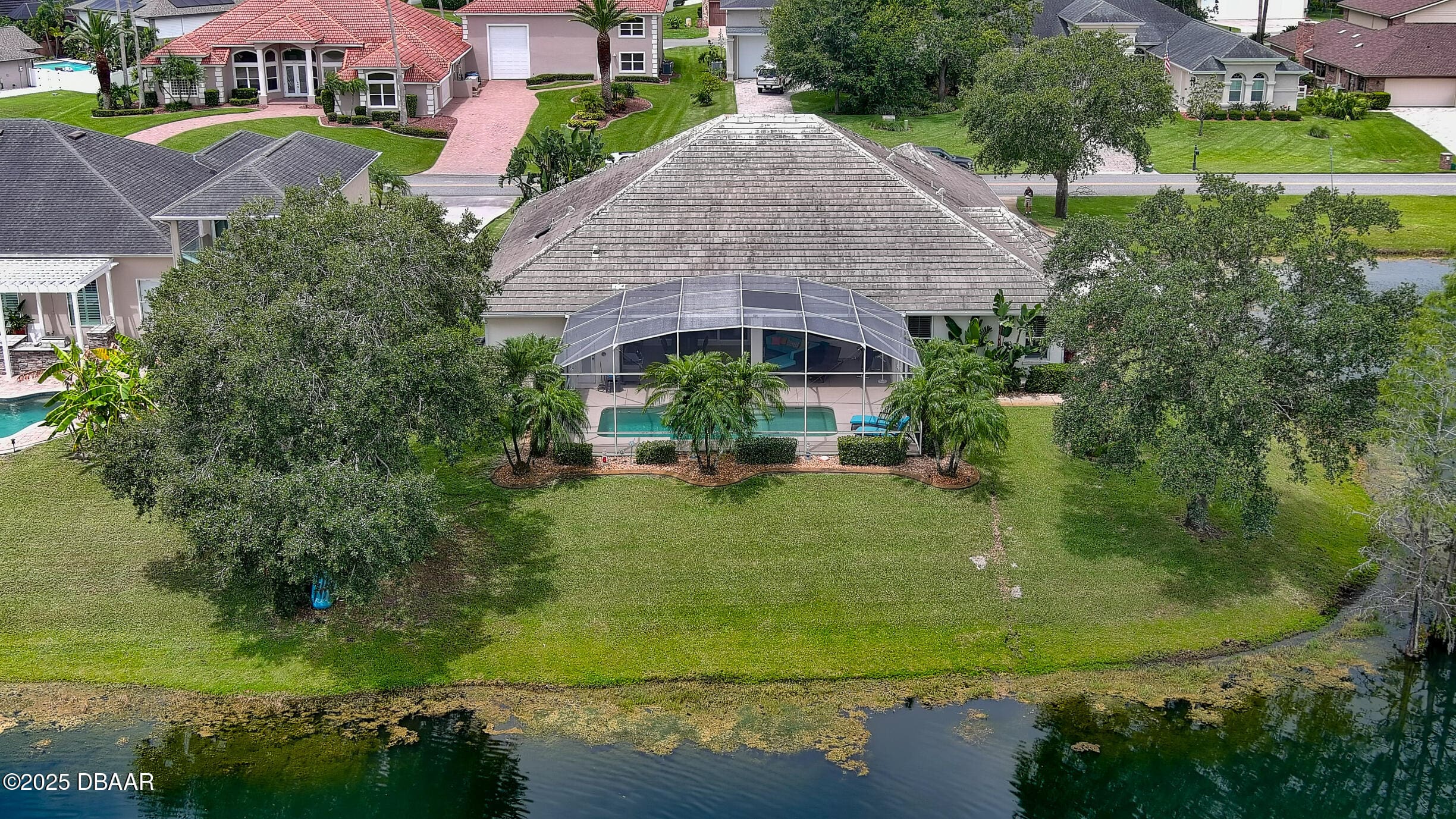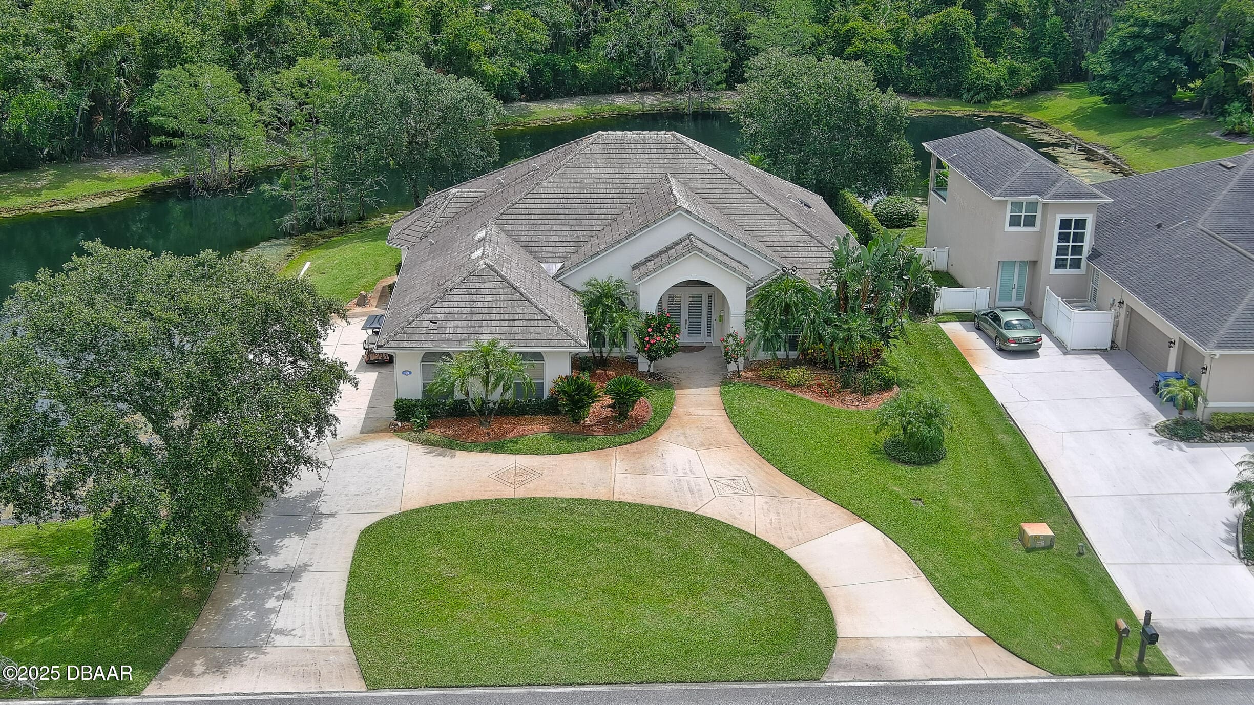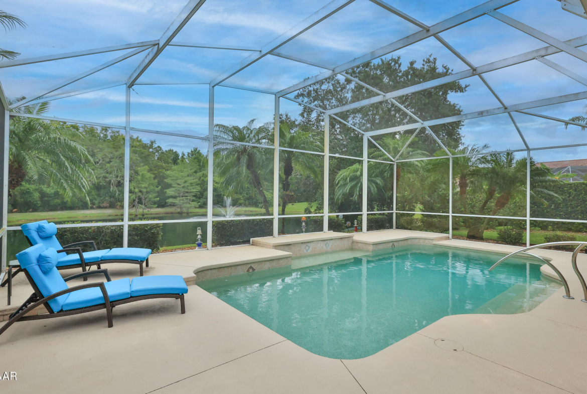 NEW Roof 3/2/26 and gutters. Step into this beautiful 4 bedroom 3 1/2 bath, 3028 sq. ft. home with a new roof on its way. The home offers luxury comfort and amazing views. Upon entering the open split floor plan, you’ll enjoy the picturesque wooded/lake and pool views. Recently remodeled/updated including newer appliances and new shingled roof with gutters to be installed. The split floor plan is perfect for families and/or guest. The premier suite offers sliders to the spacious lanai. The lanai features outdoor cabinetry including sink, refrigerator, outdoor 1/2 bath, shower and heated pool. Interior shutters throughout, and newer carpet in guests bedrooms. Full 3 car garage with storage cabinetry offers splenty space for storage. Circular drive, sprinkler system. What a setting this home is a must see.