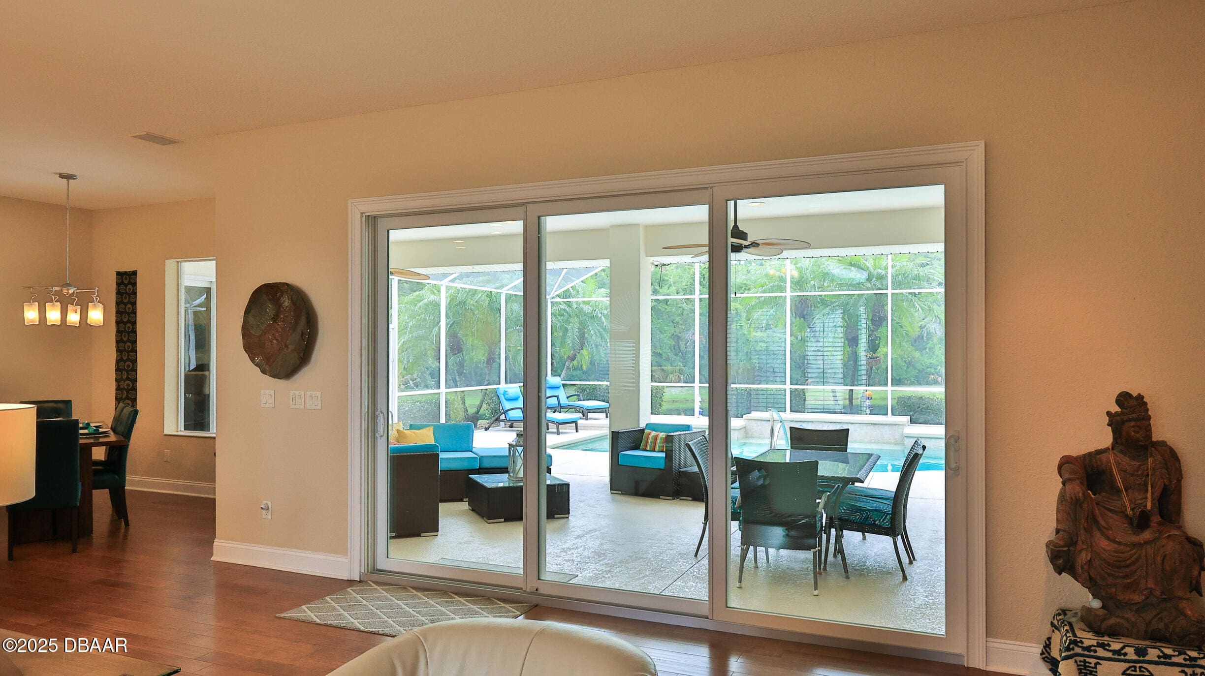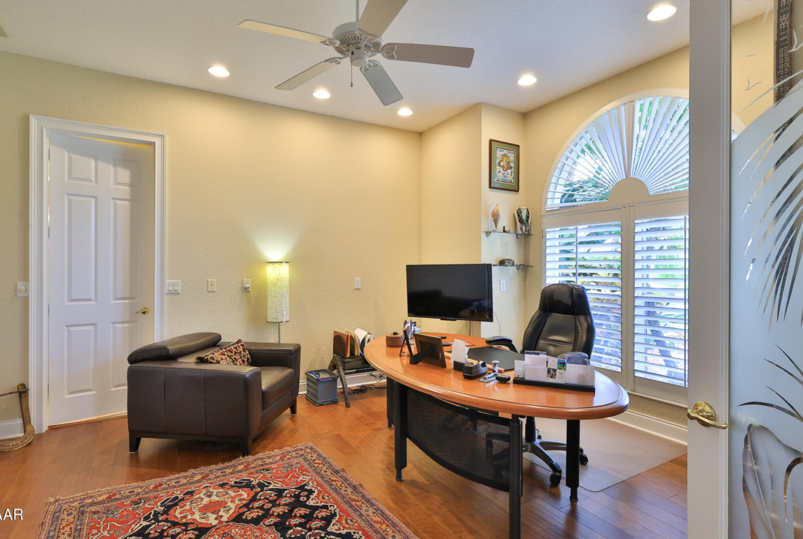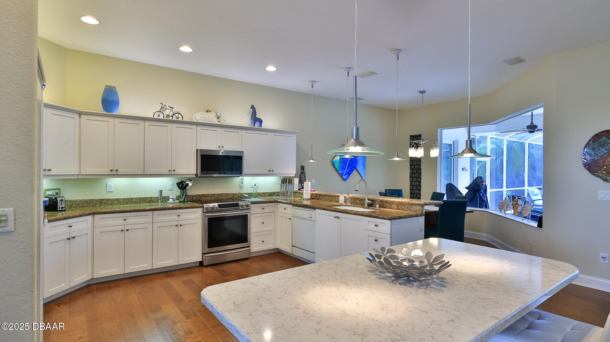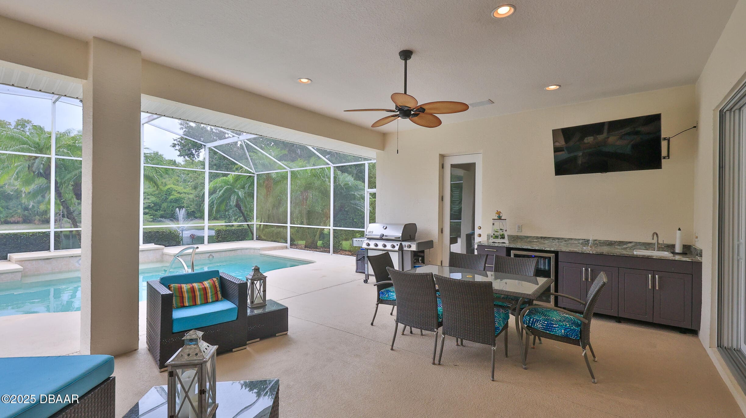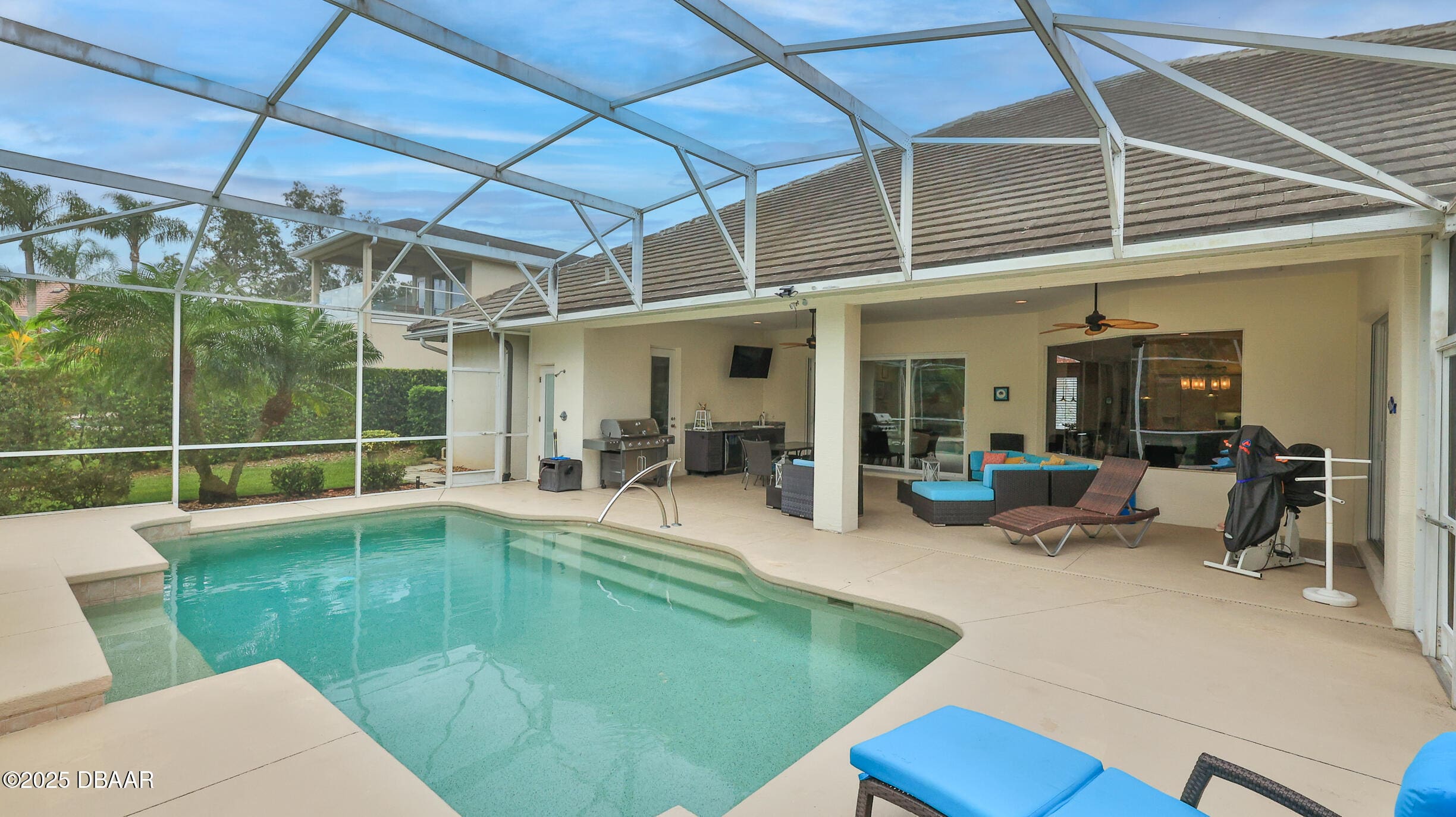 NEW Roof 3/2/26 and gutters. Step into this beautiful 4 bedroom 3 1/2 bath, 3028 sq. ft. home with a new roof on its way. The home offers luxury comfort and amazing views. Upon entering the open split floor plan, you’ll enjoy the picturesque wooded/lake and pool views. Recently remodeled/updated including newer appliances and new shingled roof with gutters to be installed. The split floor plan is perfect for families and/or guest. The premier suite offers sliders to the spacious lanai. The lanai features outdoor cabinetry including sink, refrigerator, outdoor 1/2 bath, shower and heated pool. Interior shutters throughout, and newer carpet in guests bedrooms. Full 3 car garage with storage cabinetry offers splenty space for storage. Circular drive, sprinkler system. What a setting this home is a must see.