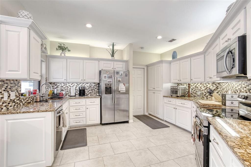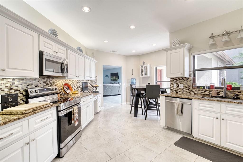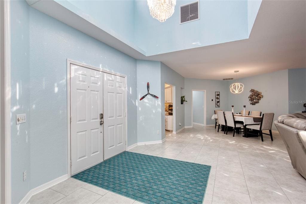 Welcome to your dream home in the prestigious, guard-gated Spruce Creek Fly-In — one of the most unique residential airpark communities in the country. This 3-bed, 2-bath, 3-car garage pool home blends elegance and comfort. Inside, enjoy a bright open-concept layout with tile flooring throughout and abundant natural light. The spacious kitchen features granite countertops, stainless steel appliances, and ample cabinetry — perfect for daily living or entertaining. The primary suite is a peaceful retreat with his-and-hers vanities, a garden tub, walk-in shower, and generous closet space. Two additional bedrooms offer flexibility for guests, family, or office use. Step outside to your private, renovated heated saltwater pool and spa with new pavers, screening, and covered lanai. All this is located in Spruce Creek Fly-In, a 24/7 guard-gated community (separate membership fees apply) with a private airport runway, golf course, tennis, pickleball, parks, trails, and clubhouse amenities.