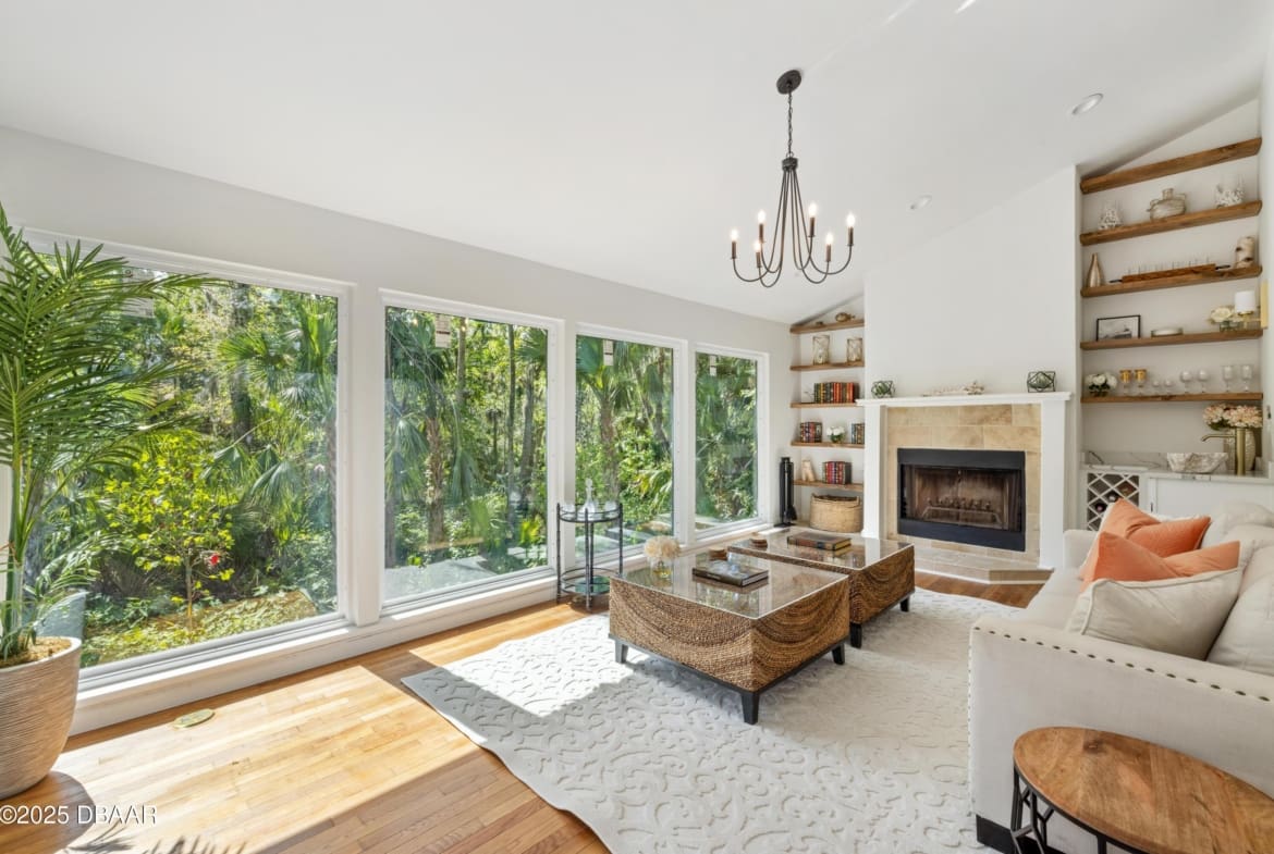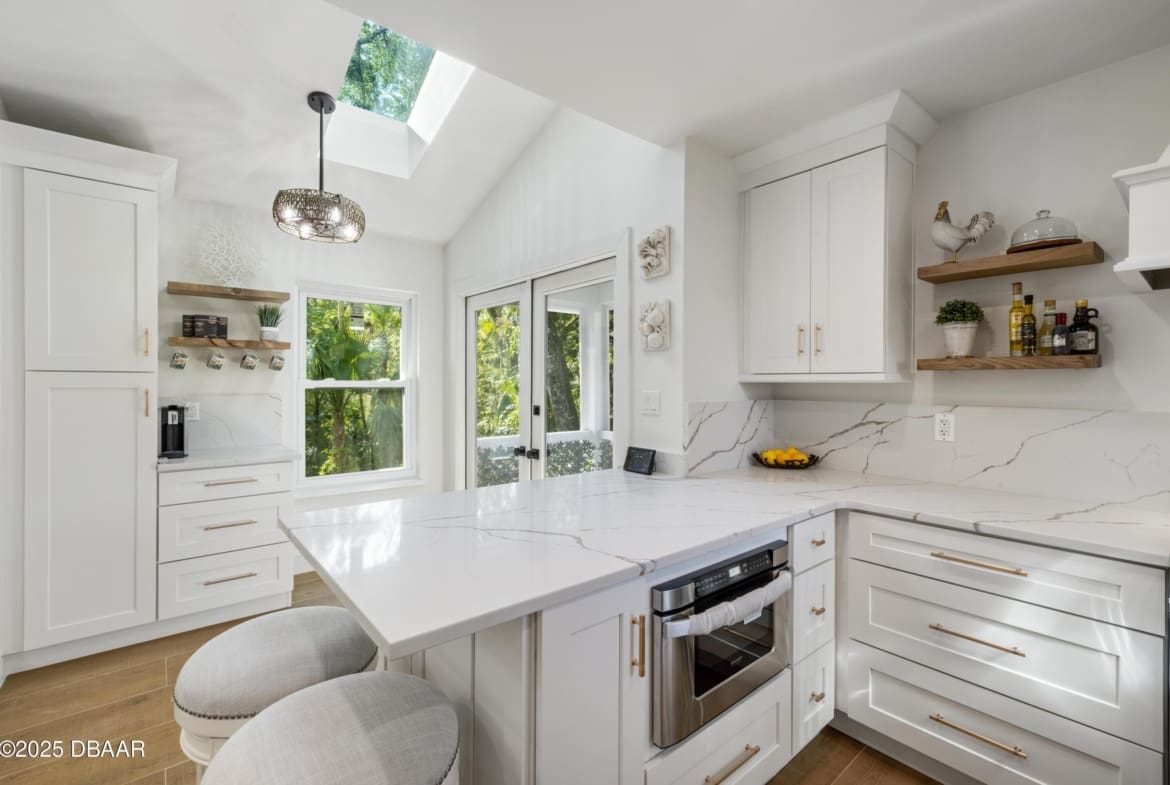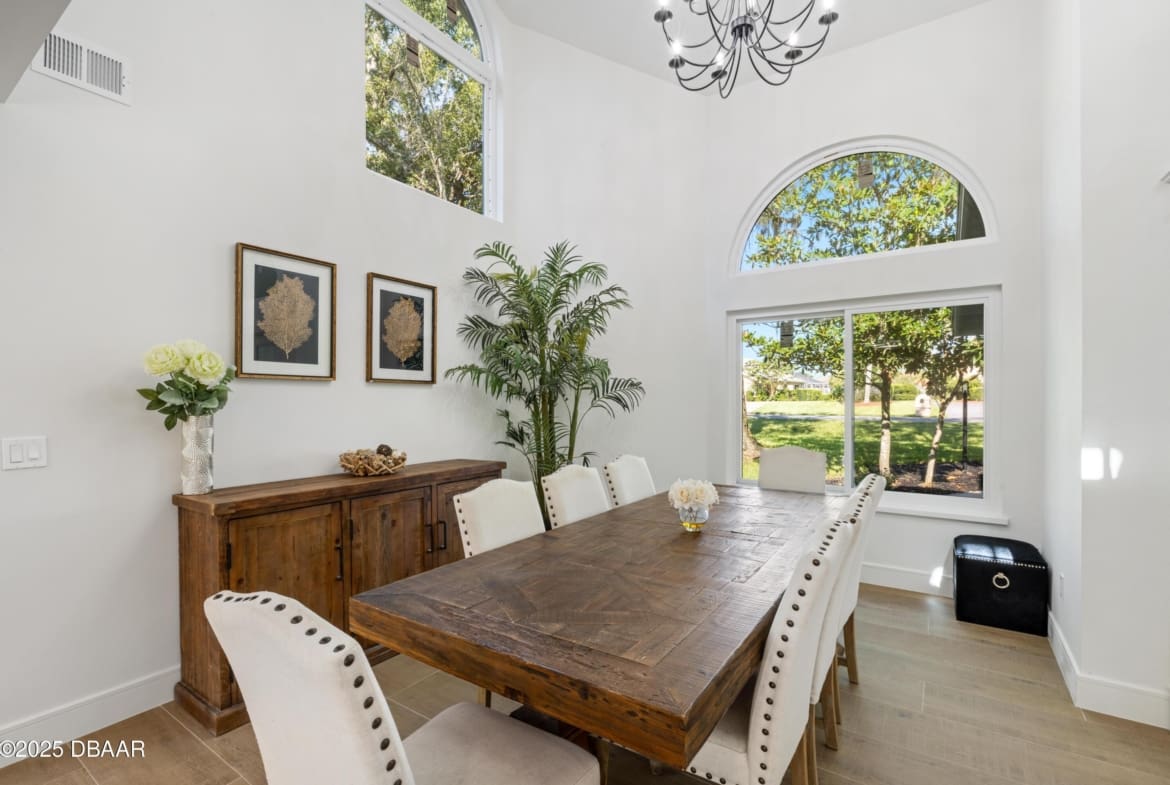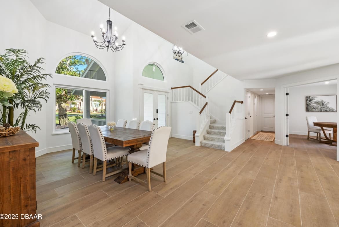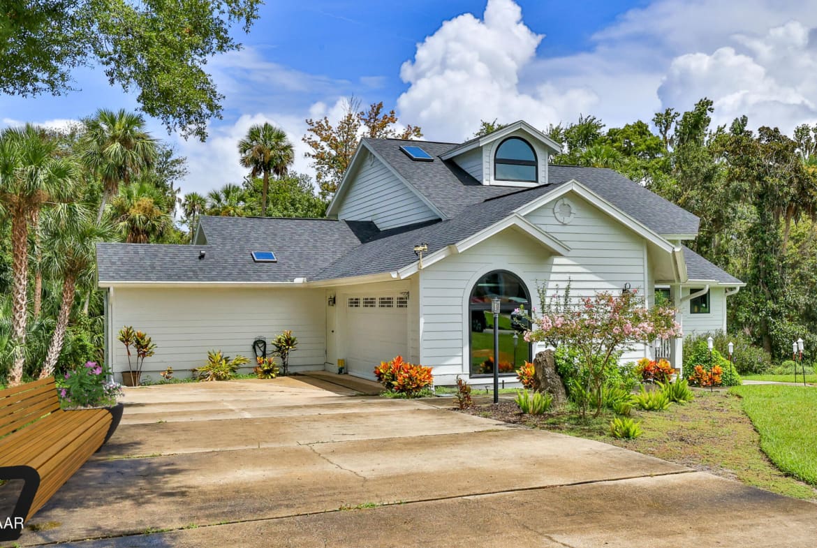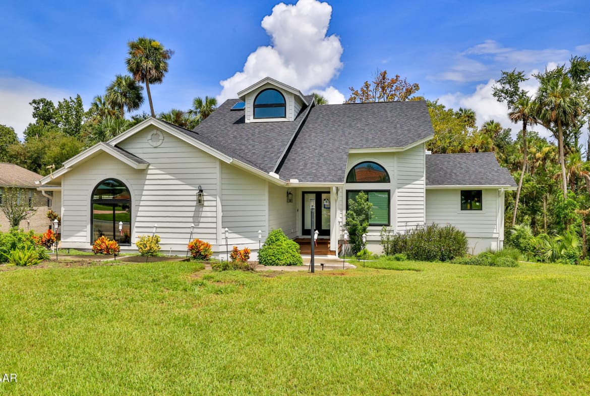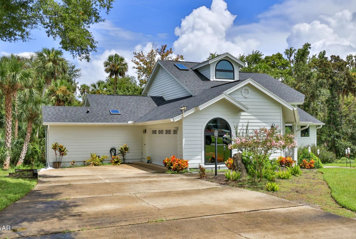 Spruce Creek Fly-In Community where aviation enthusiasts and luxury living come together. Nestled on the private nature side of this exclusive gated neighborhood. Newly reconstructed, turn key home that combines elegance, comfort, and a unique lifestyle experience. 3 Bedrooms 3 full bathrooms and office. Upstairs loft area can double as an office or children’s play area. Fully permitted renovations include architectural shingle roof 7/27/2022, 23 windows replaced 4/13/2023. Impact glass rated skylights, full house replumb with PEX piping, black frame windows throughout, 4 ton energy efficient HVAC & HVAC replacement upstairs. What a setting.
