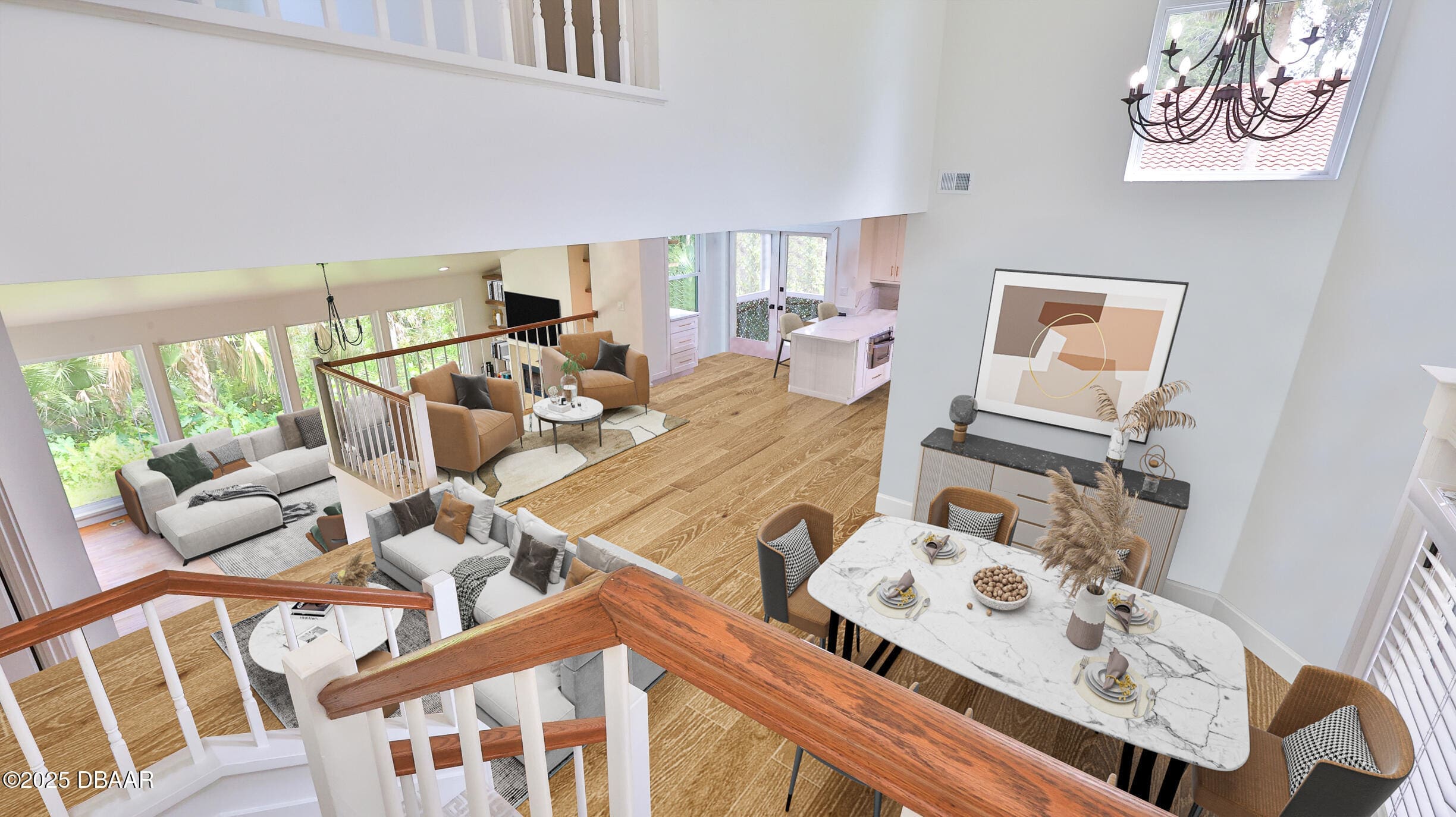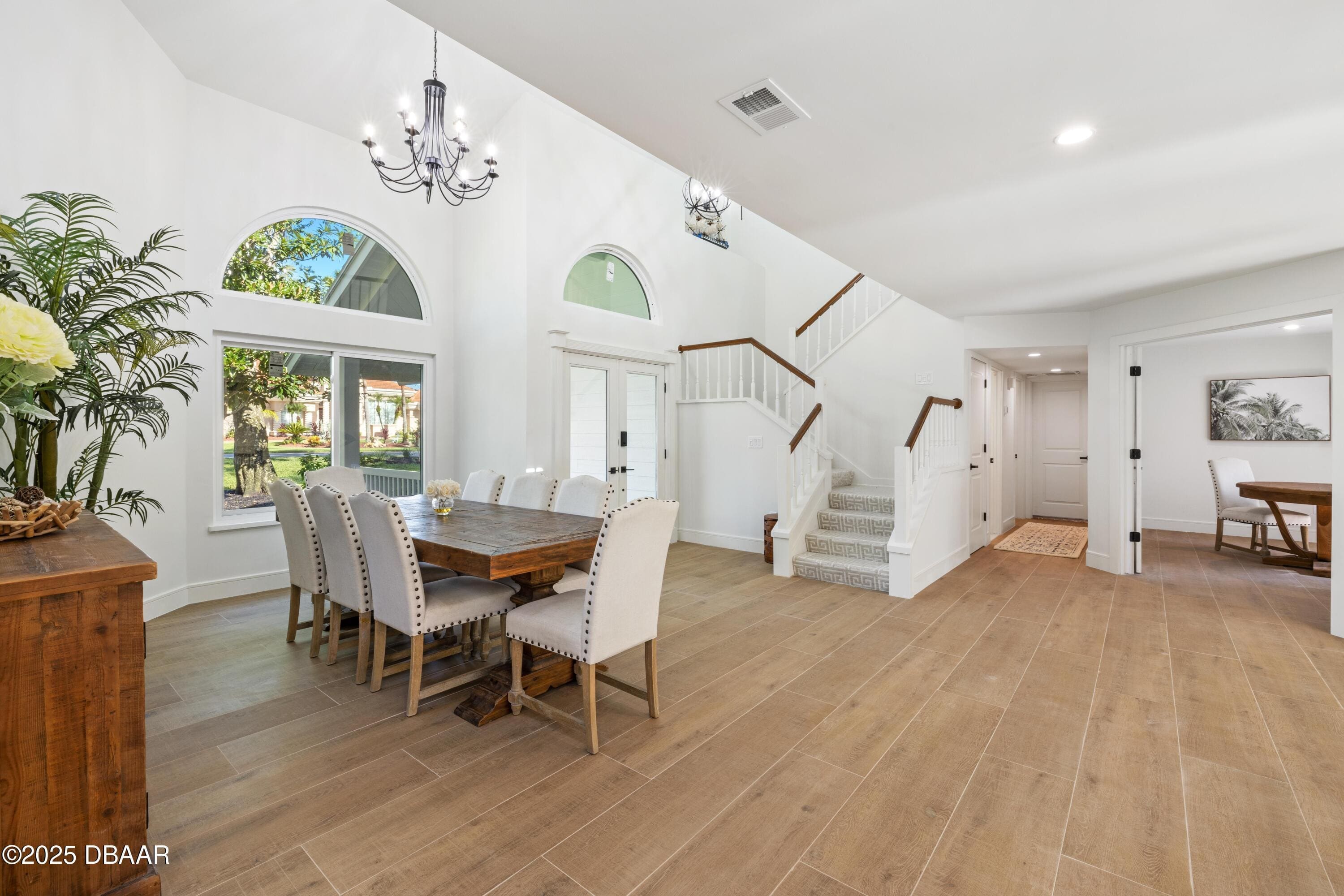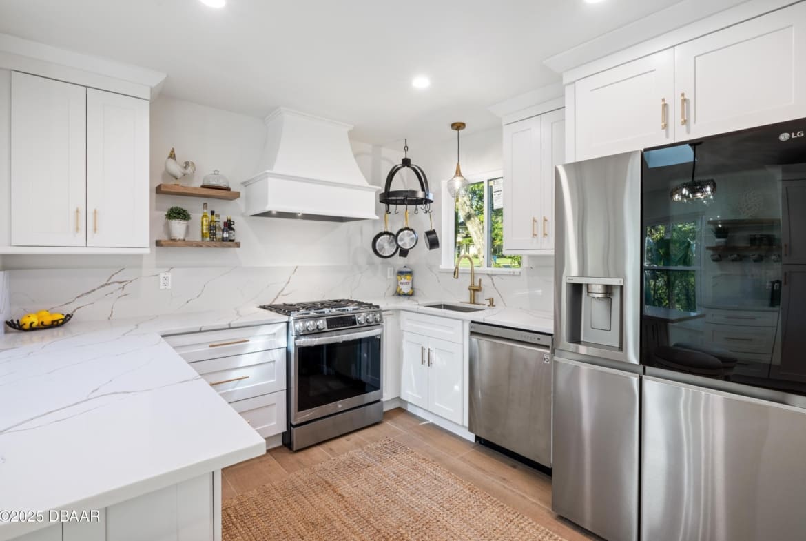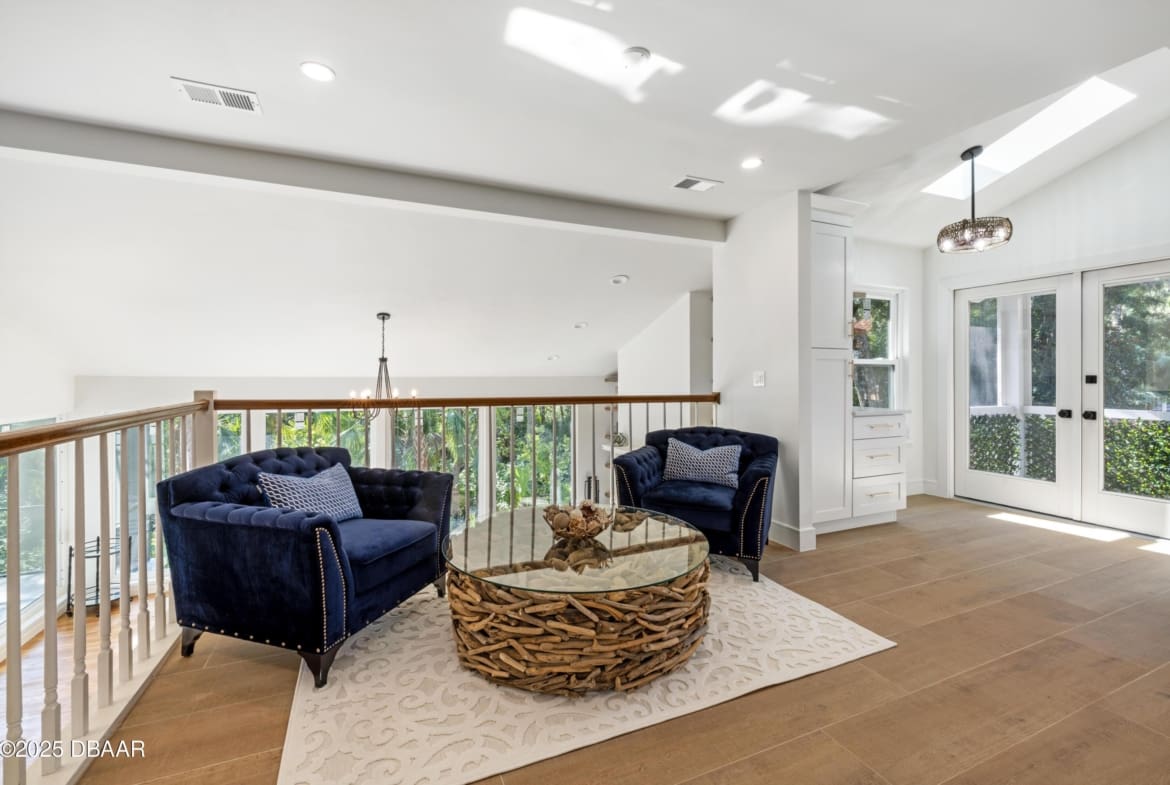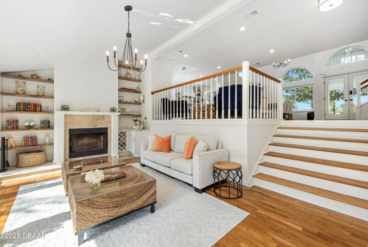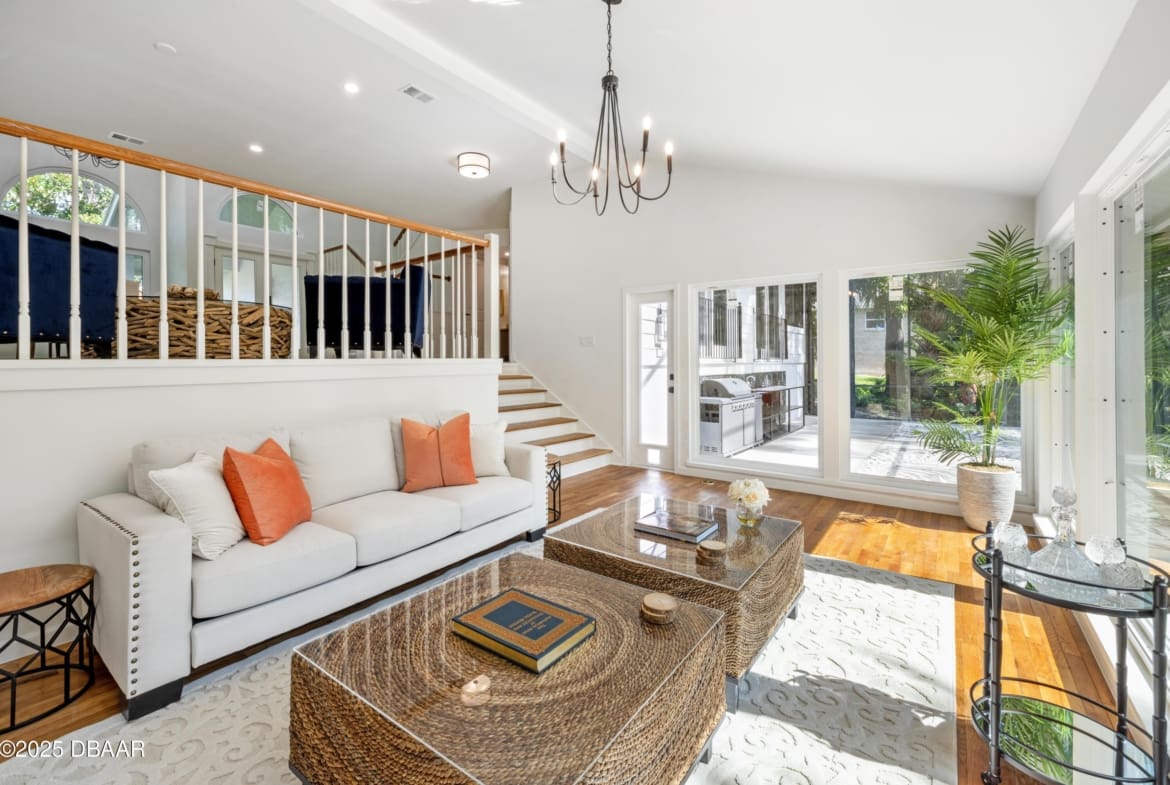 Spruce Creek Fly-In Community where aviation enthusiasts and luxury living come together. Nestled on the private nature side of this exclusive gated neighborhood. Newly reconstructed, turn key home that combines elegance, comfort, and a unique lifestyle experience. 3 Bedrooms 3 full bathrooms and office. Upstairs loft area can double as an office or children’s play area. Fully permitted renovations include architectural shingle roof 7/27/2022, 23 windows replaced 4/13/2023. Impact glass rated skylights, full house replumb with PEX piping, black frame windows throughout, 4 ton energy efficient HVAC & HVAC replacement upstairs. What a setting.