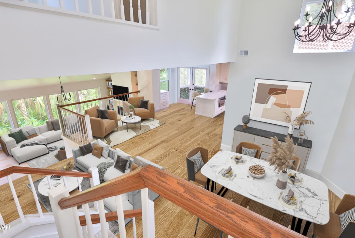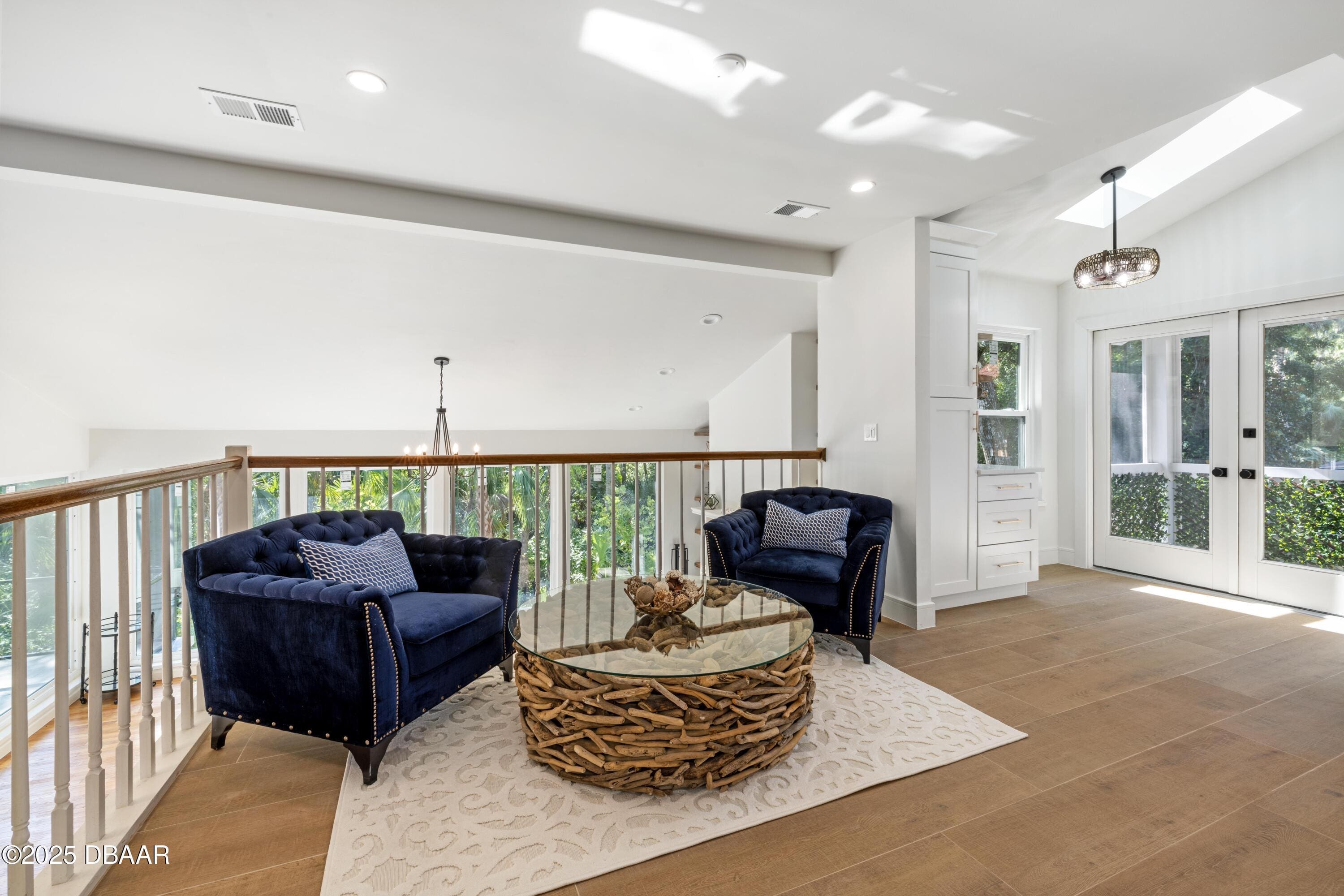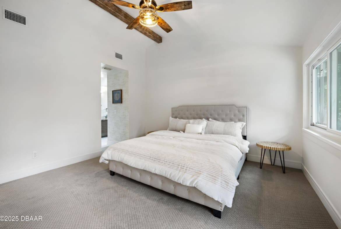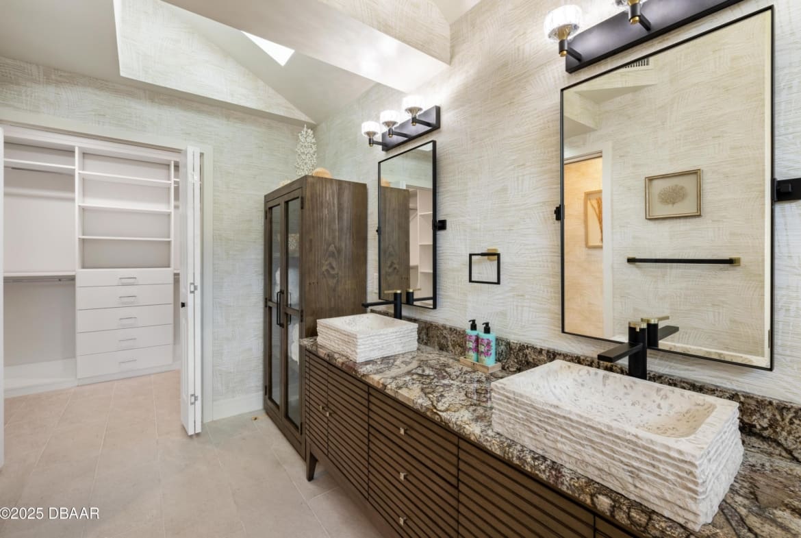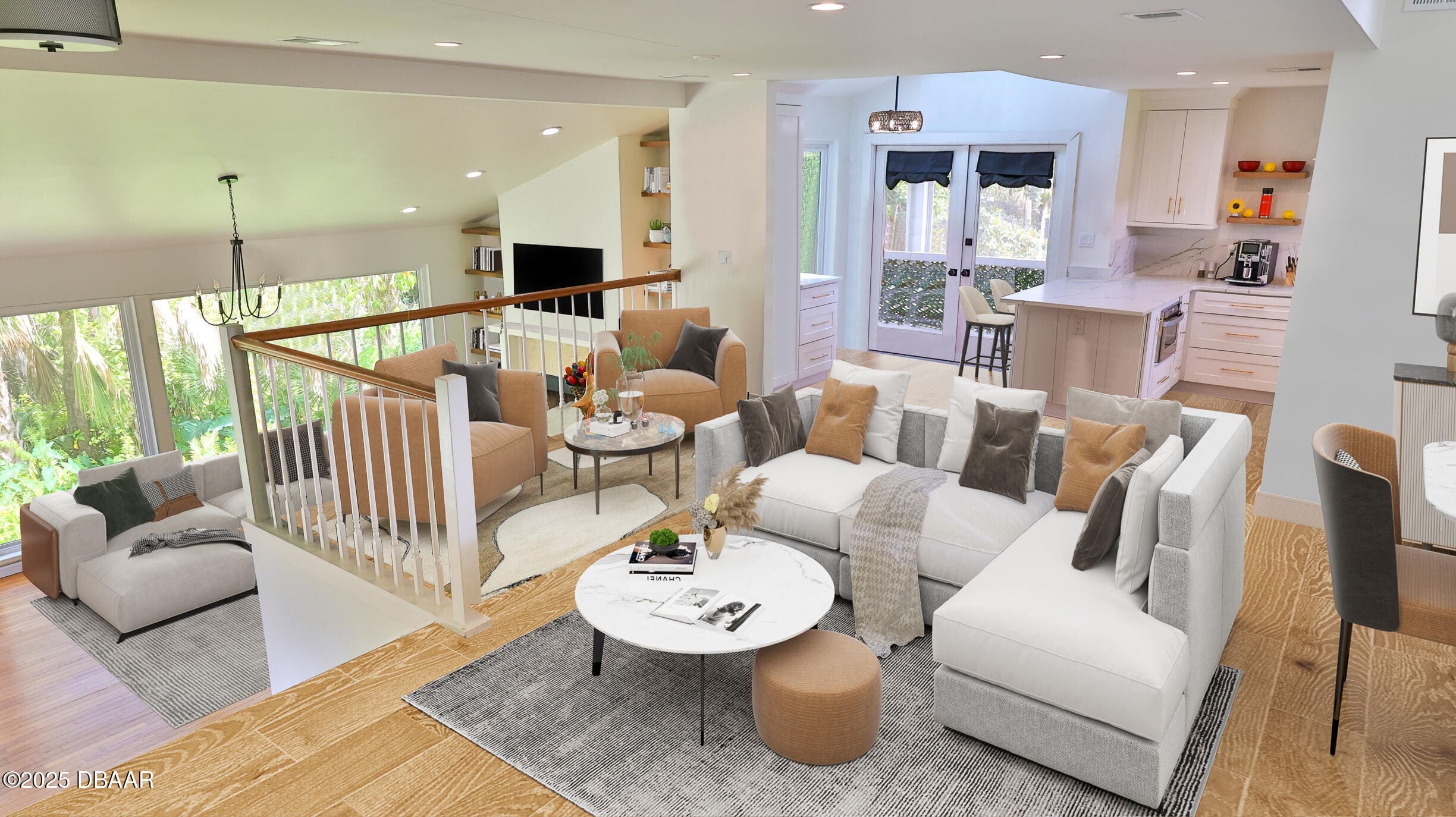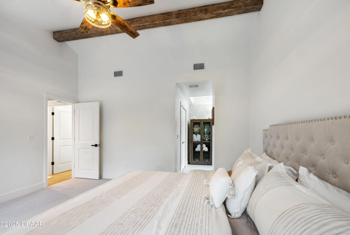 Spruce Creek Fly-In Community where aviation enthusiasts and luxury living come together. Nestled on the private nature side of this exclusive gated neighborhood. Newly reconstructed, turn key home that combines elegance, comfort, and a unique lifestyle experience. 3 Bedrooms 3 full bathrooms and office. Upstairs loft area can double as an office or children’s play area. Fully permitted renovations include architectural shingle roof 7/27/2022, 23 windows replaced 4/13/2023. Impact glass rated skylights, full house replumb with PEX piping, black frame windows throughout, 4 ton energy efficient HVAC & HVAC replacement upstairs. What a setting.