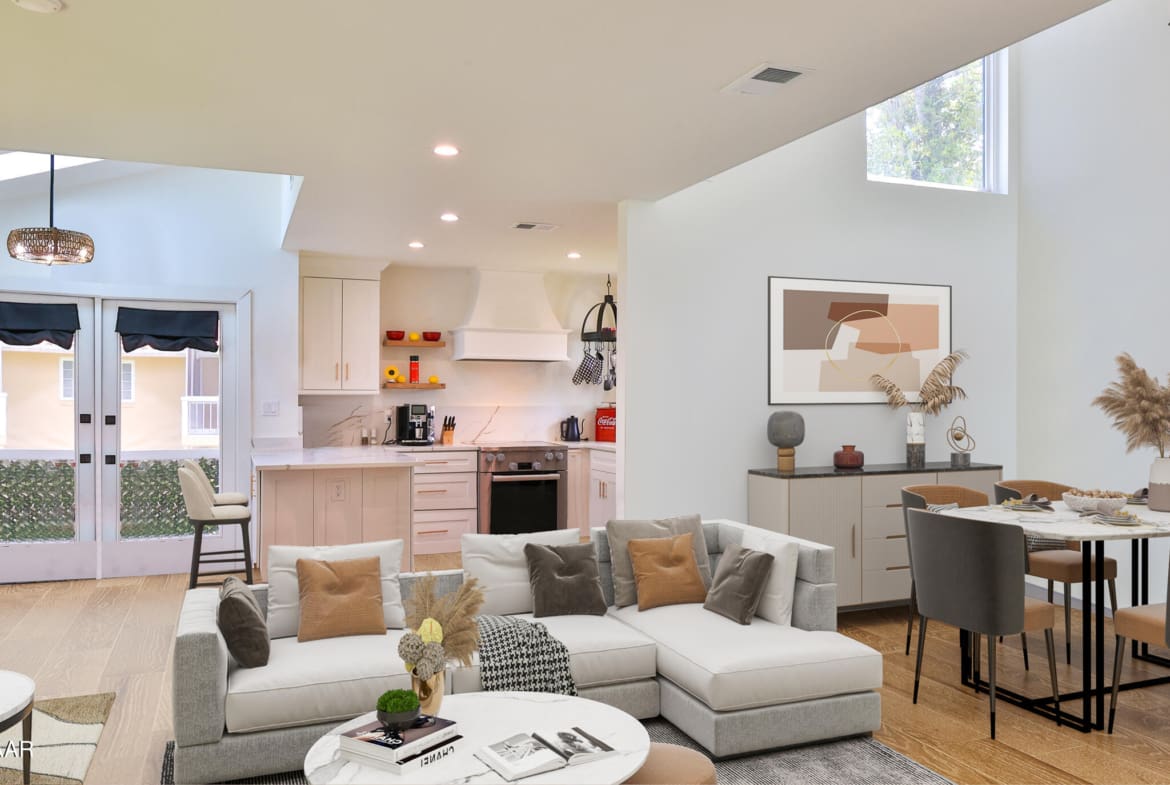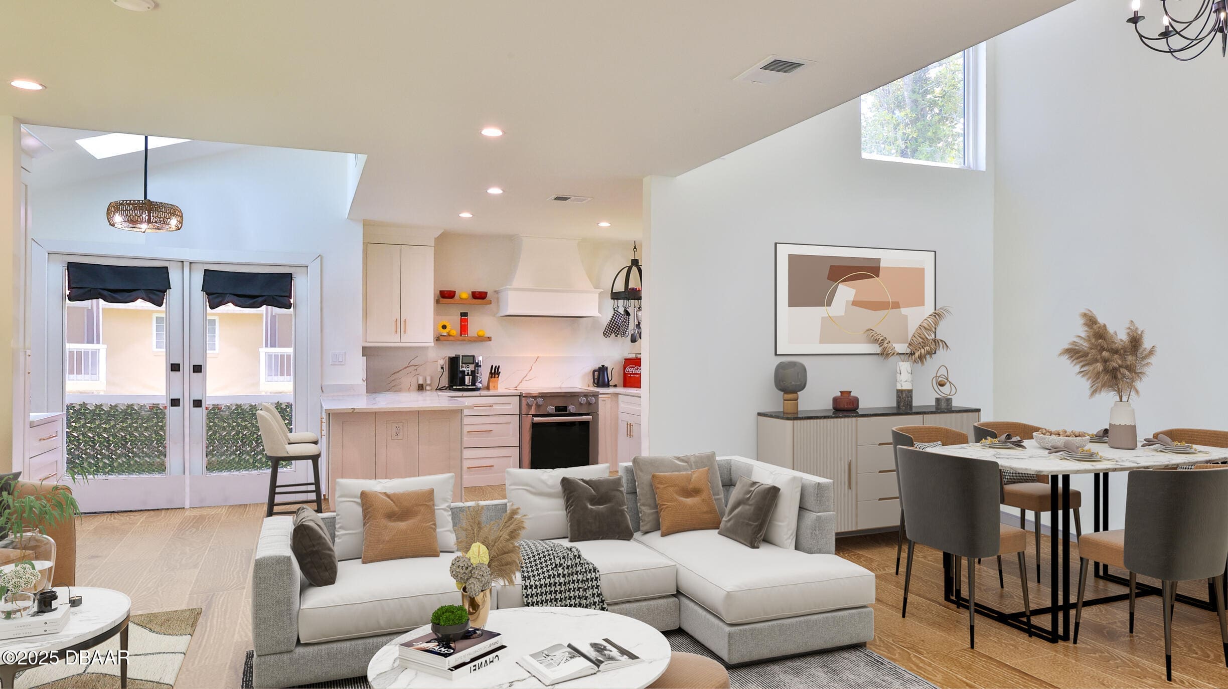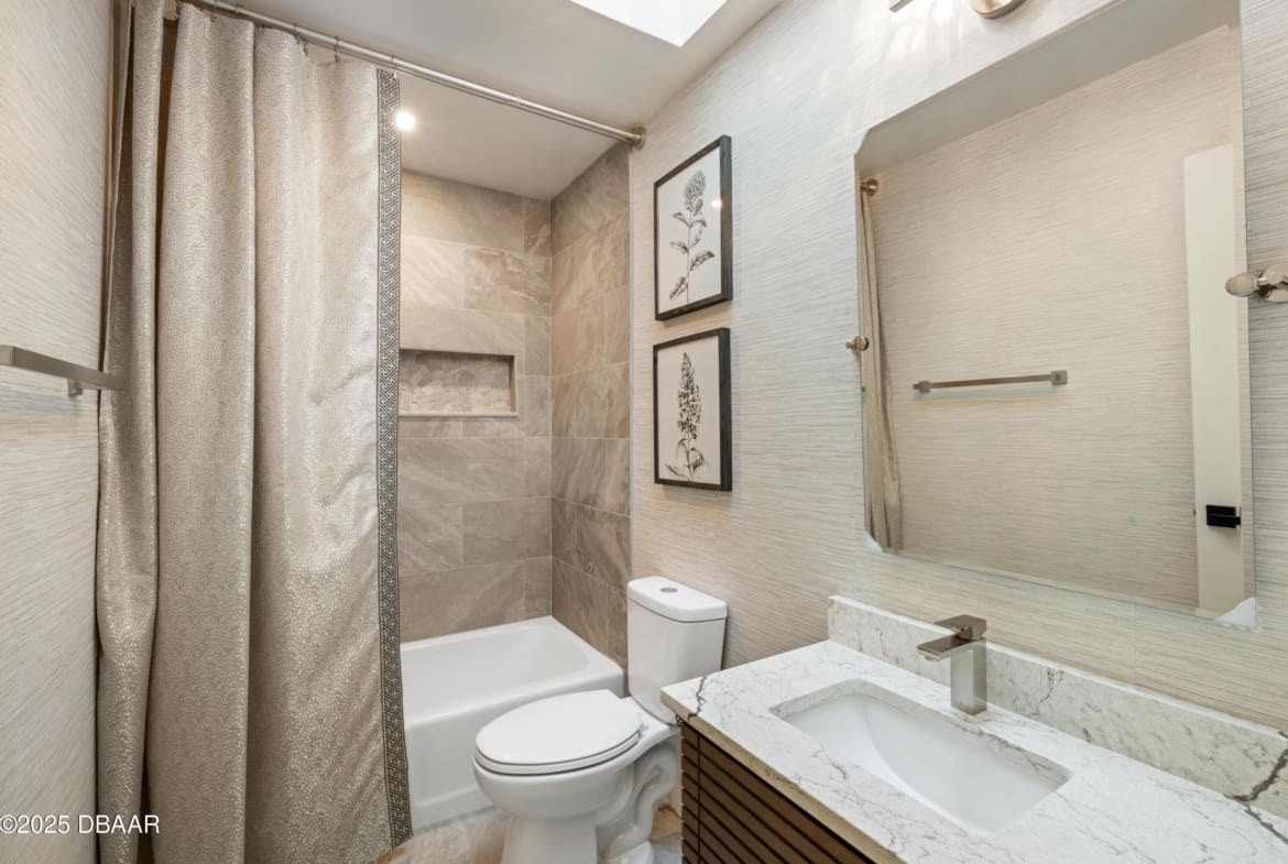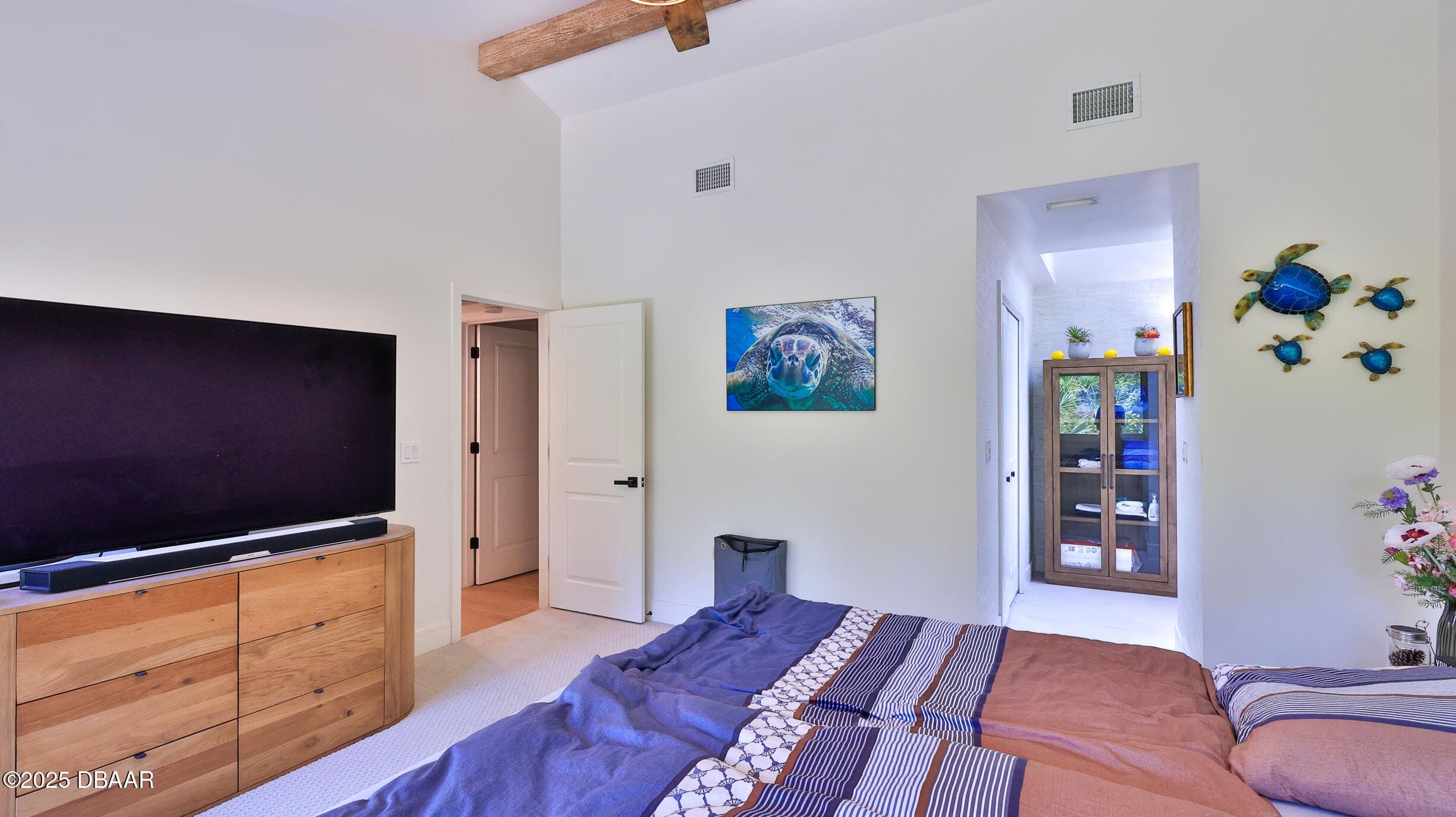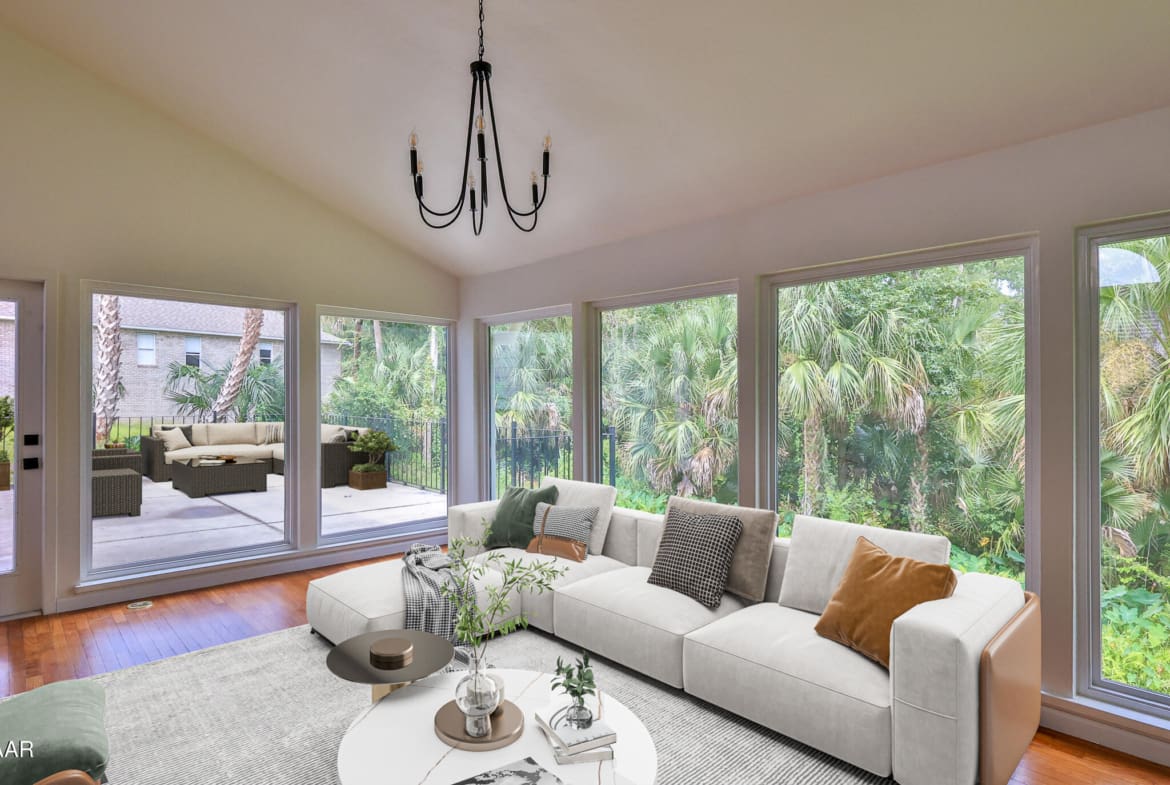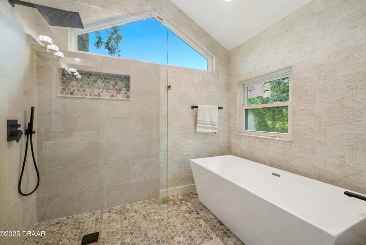 Spruce Creek Fly-In Community where aviation enthusiasts and luxury living come together. Nestled on the private nature side of this exclusive gated neighborhood. Newly reconstructed, turn key home that combines elegance, comfort, and a unique lifestyle experience. 3 Bedrooms 3 full bathrooms and office. Upstairs loft area can double as an office or children’s play area. Fully permitted renovations include architectural shingle roof 7/27/2022, 23 windows replaced 4/13/2023. Impact glass rated skylights, full house replumb with PEX piping, black frame windows throughout, 4 ton energy efficient HVAC & HVAC replacement upstairs. What a setting.