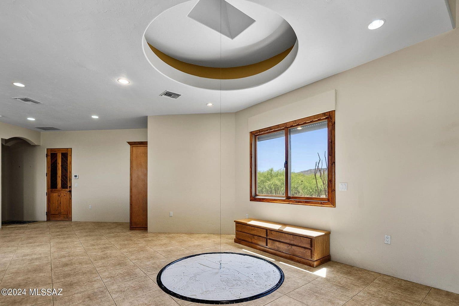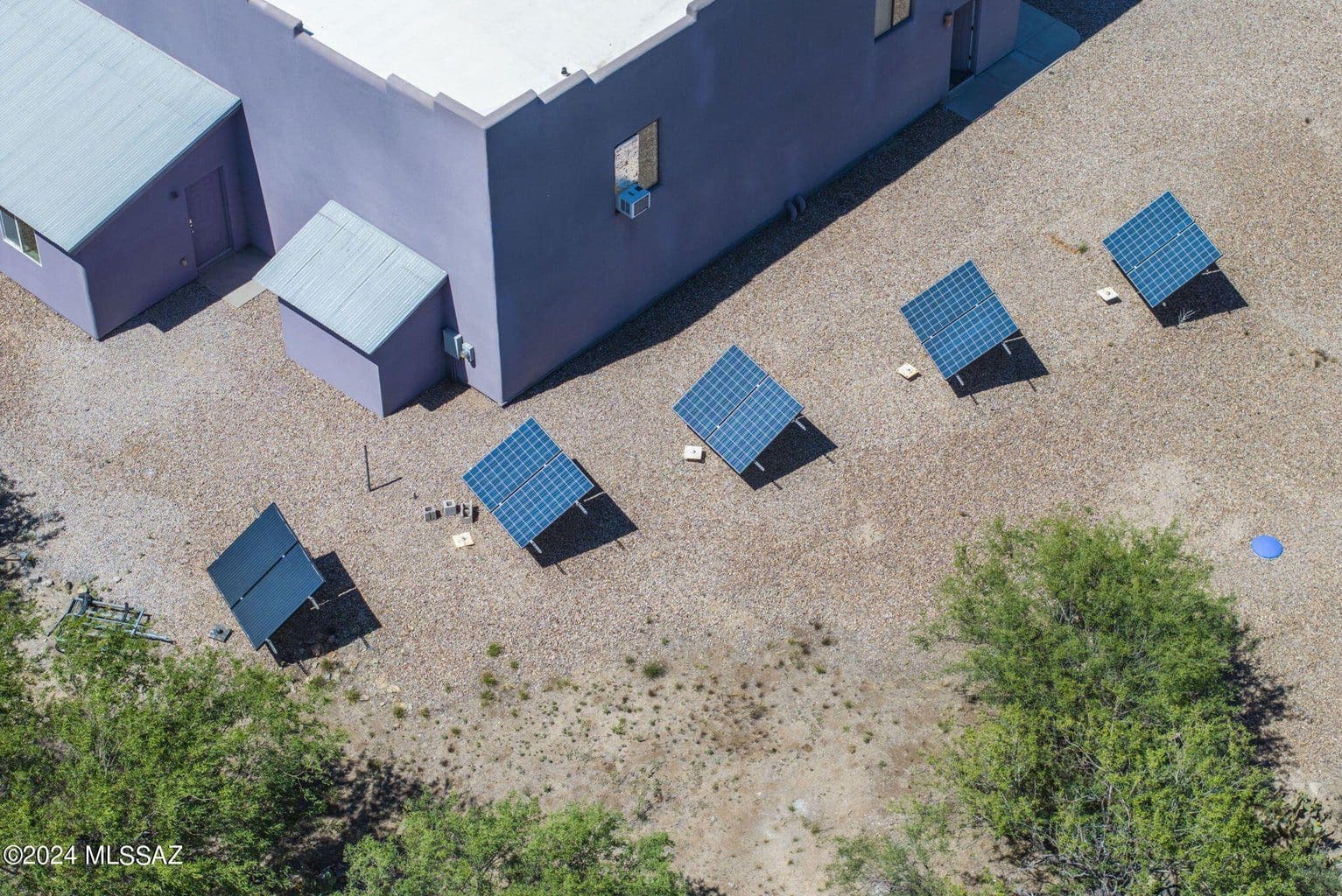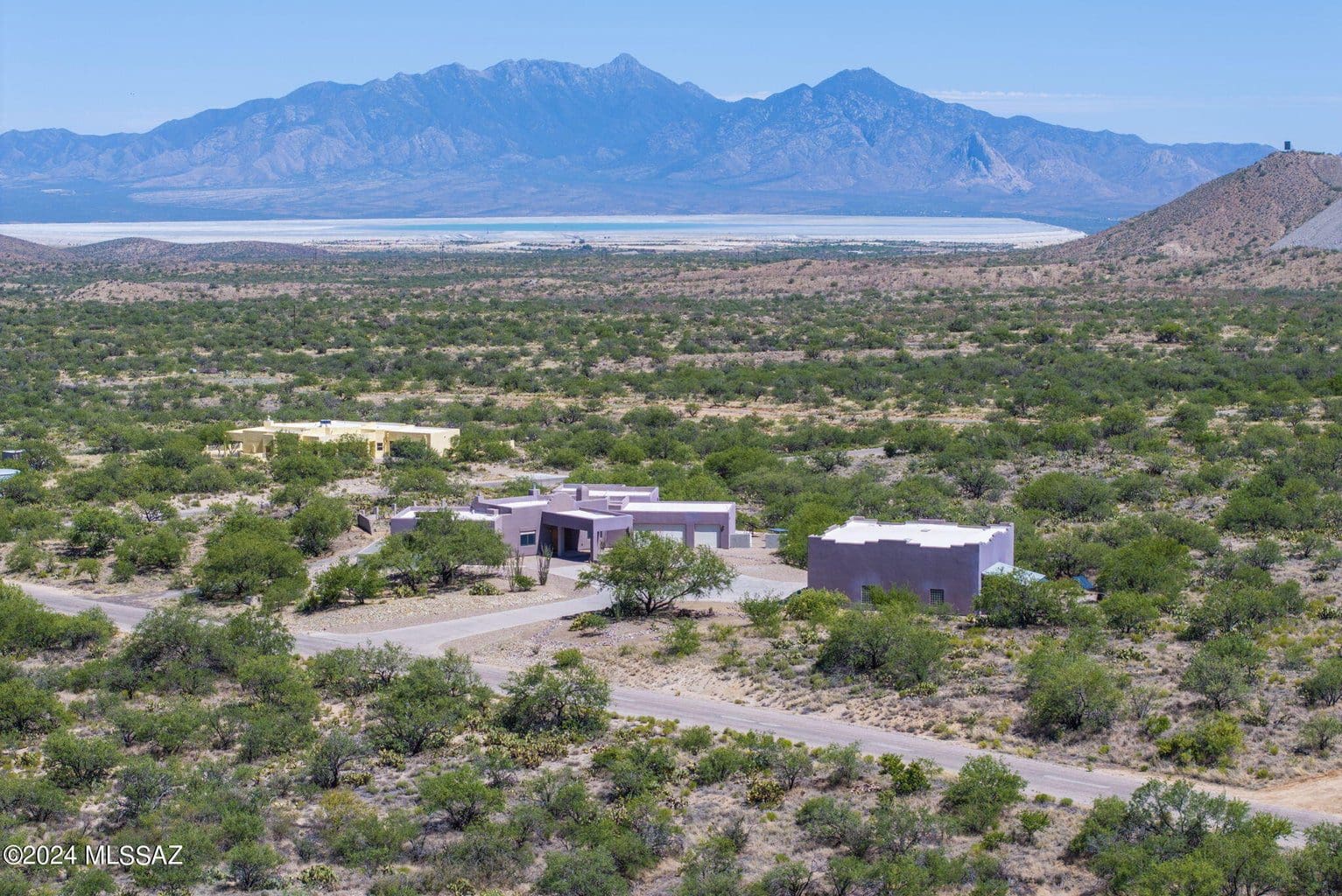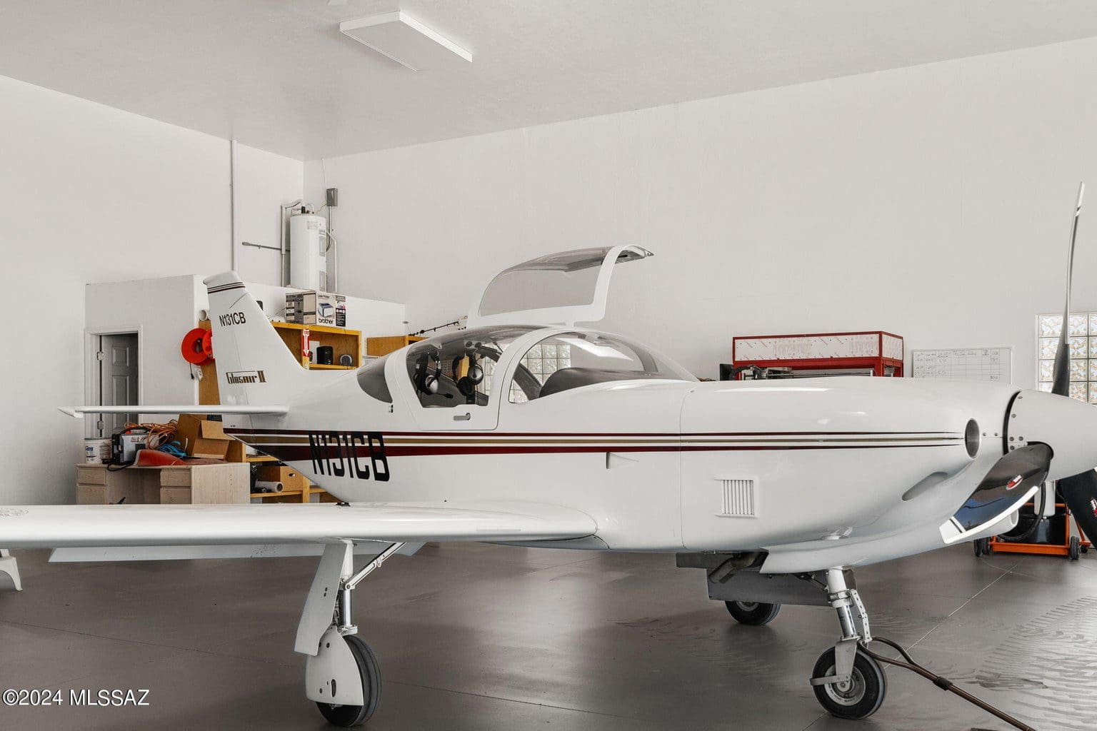 All the faucets are made by Hansgrohe. The mirror is also custom made. Enjoy the jetted tub or walk into the shower with privacy glass. Enjoy the year-round comfort with a new Trane HVAC system, solar water heating in the main house, and tankless water heating in the casita. The casita has a kitchen and full bathroom for your guests to enjoy, and of course all custom built. Enjoy the back yard by walking through the 16ft pocket doors into the backyard patio area, where you will have a built-in BBQ, smoker, and a fridge. There are three fireplaces where you can choose to relax. Enjoy the 2,500 sq. ft. hangar for storage from an RV to an Airplane. There is also a large workshop. No need to go inside the main house for cleaning up from a day in the shop, as there is a full bathroom in the hangar. You will own the 16 300-watt solar panels that are mounted on a dual axis tracker, generating an impressive 6.24kw of power, resulting in amazing savings with electricity. The estate has electric rolling security shutters, and is in a gated community. You will have a water filtration system that will provide you with all you need for your water harvesting system. The estate has zoned heating and cooling as well as a central vac, making cleaning a breeze. Additional amenities include a portico, 3-car garage, electric car charger, a 100 gallon propane tank that supplies the BBQ and fireplaces, as the home is all electric. The wall inside the home by the garage man door is also plumbed for a water-fall feature. This home was built with SIP PANEL. The home has so many hidden luxuries for example a Compass Rose that is built into the flooring. This is the way to live in extreme luxury of your dream home.