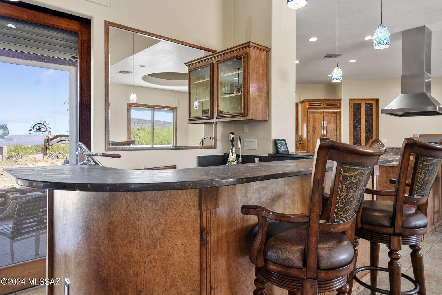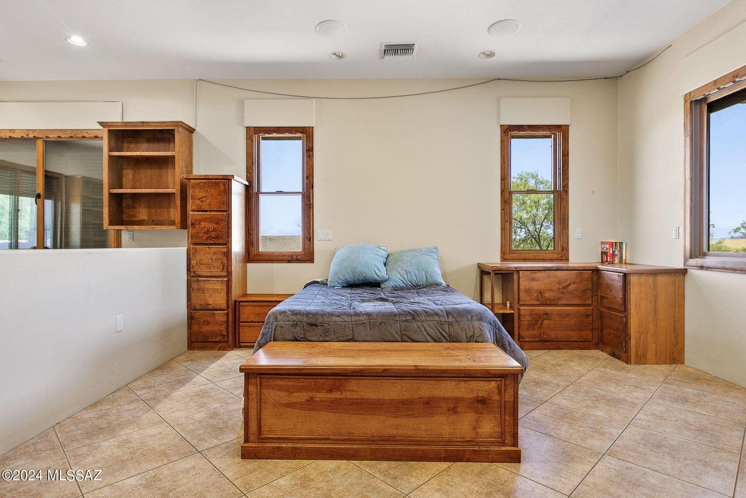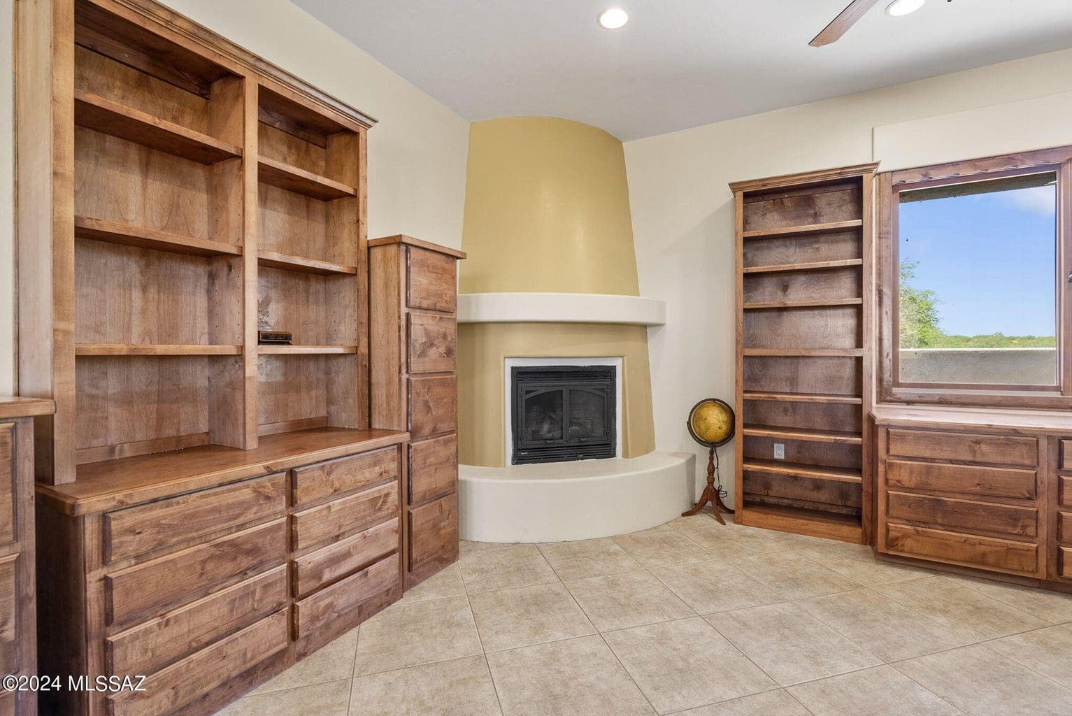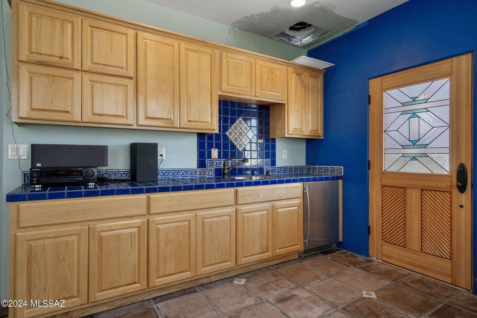 All the faucets are made by Hansgrohe. The mirror is also custom made. Enjoy the jetted tub or walk into the shower with privacy glass. Enjoy the year-round comfort with a new Trane HVAC system, solar water heating in the main house, and tankless water heating in the casita. The casita has a kitchen and full bathroom for your guests to enjoy, and of course all custom built. Enjoy the back yard by walking through the 16ft pocket doors into the backyard patio area, where you will have a built-in BBQ, smoker, and a fridge. There are three fireplaces where you can choose to relax. Enjoy the 2,500 sq. ft. hangar for storage from an RV to an Airplane. There is also a large workshop. No need to go inside the main house for cleaning up from a day in the shop, as there is a full bathroom in the hangar. You will own the 16 300-watt solar panels that are mounted on a dual axis tracker, generating an impressive 6.24kw of power, resulting in amazing savings with electricity. The estate has electric rolling security shutters, and is in a gated community. You will have a water filtration system that will provide you with all you need for your water harvesting system. The estate has zoned heating and cooling as well as a central vac, making cleaning a breeze. Additional amenities include a portico, 3-car garage, electric car charger, a 100 gallon propane tank that supplies the BBQ and fireplaces, as the home is all electric. The wall inside the home by the garage man door is also plumbed for a water-fall feature. This home was built with SIP PANEL. The home has so many hidden luxuries for example a Compass Rose that is built into the flooring. This is the way to live in extreme luxury of your dream home.
