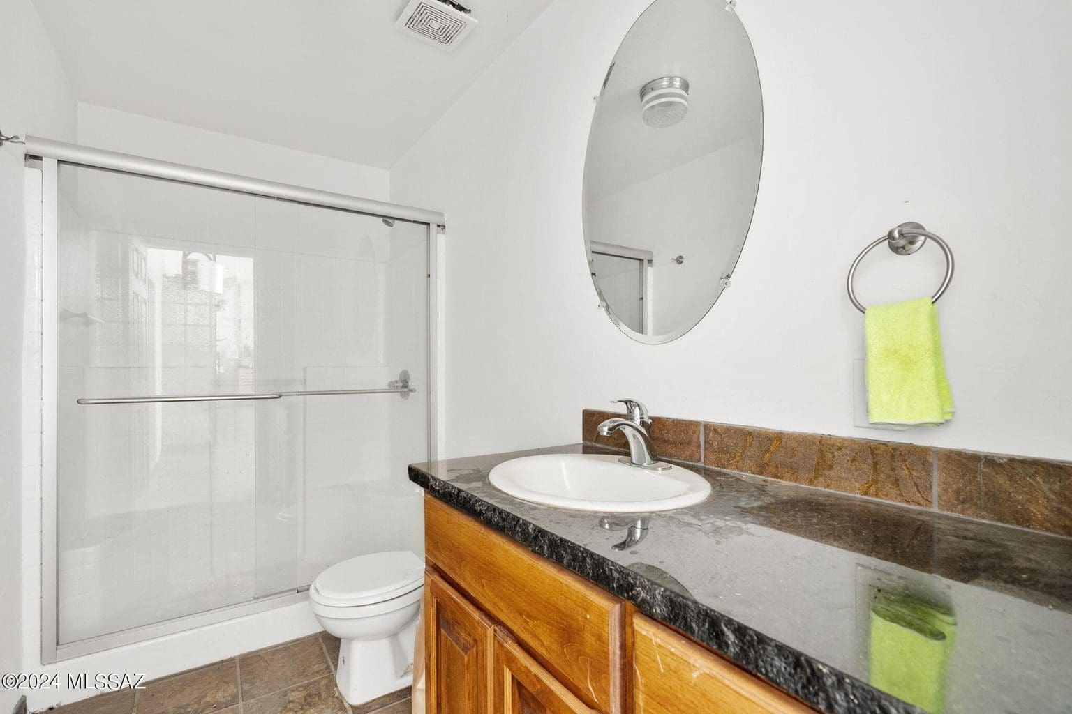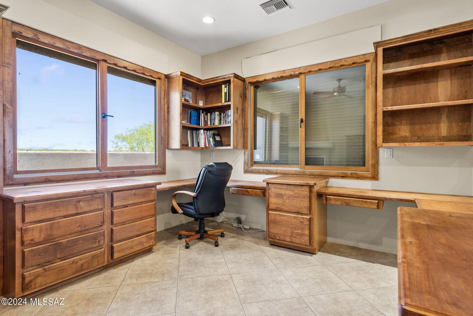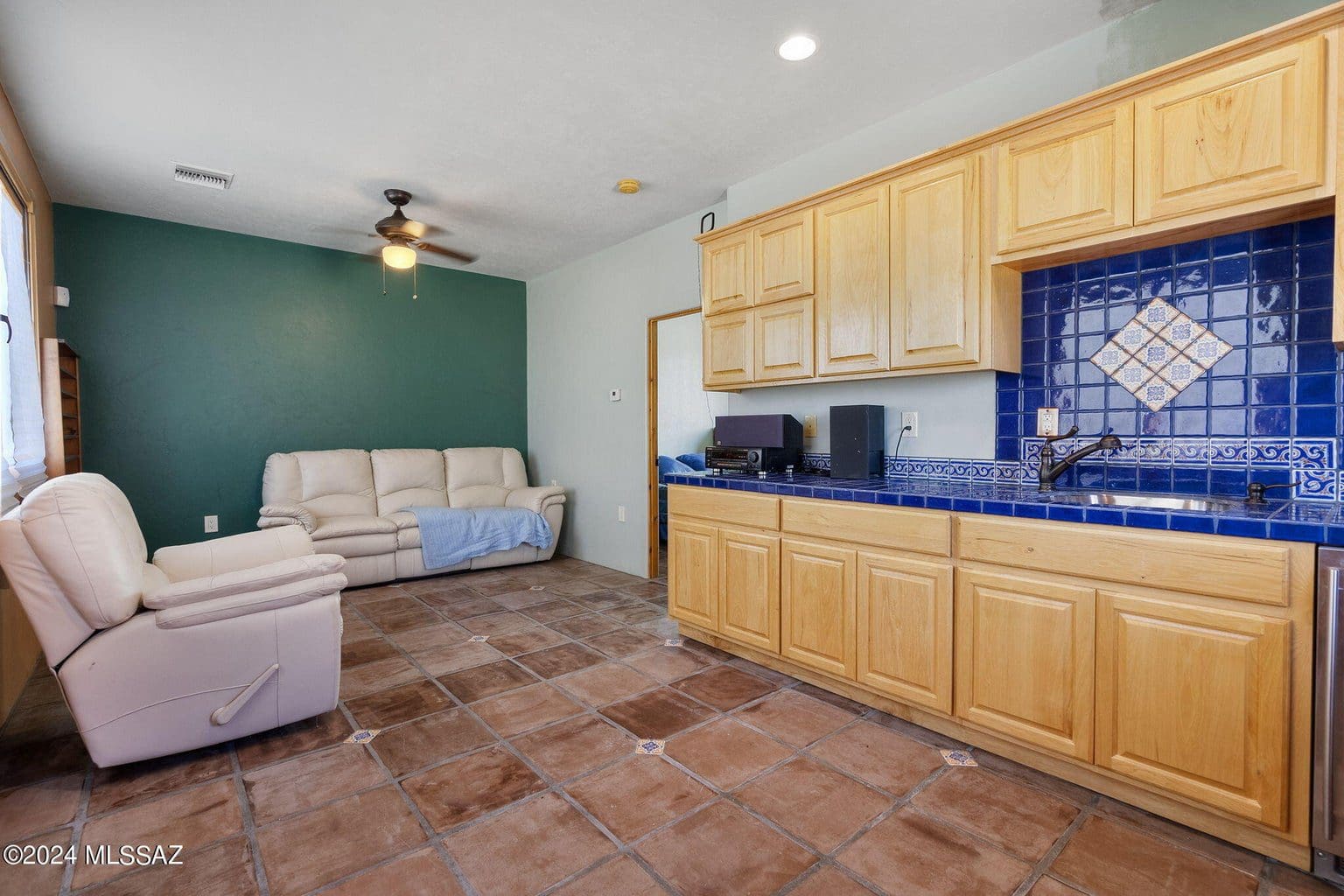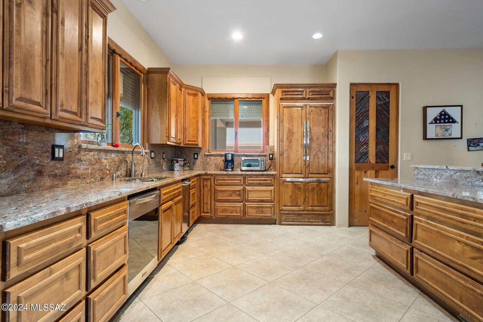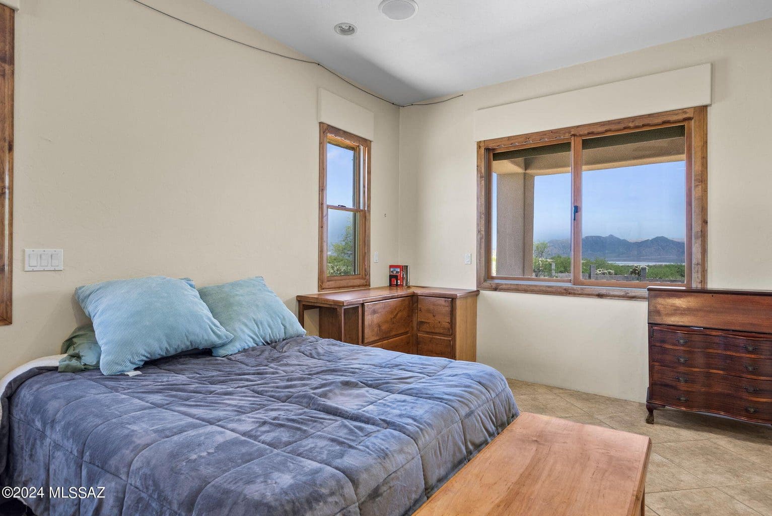 All the faucets are made by Hansgrohe. The mirror is also custom made. Enjoy the jetted tub or walk into the shower with privacy glass. Enjoy the year-round comfort with a new Trane HVAC system, solar water heating in the main house, and tankless water heating in the casita. The casita has a kitchen and full bathroom for your guests to enjoy, and of course all custom built. Enjoy the back yard by walking through the 16ft pocket doors into the backyard patio area, where you will have a built-in BBQ, smoker, and a fridge. There are three fireplaces where you can choose to relax. Enjoy the 2,500 sq. ft. hangar for storage from an RV to an Airplane. There is also a large workshop. No need to go inside the main house for cleaning up from a day in the shop, as there is a full bathroom in the hangar. You will own the 16 300-watt solar panels that are mounted on a dual axis tracker, generating an impressive 6.24kw of power, resulting in amazing savings with electricity. The estate has electric rolling security shutters, and is in a gated community. You will have a water filtration system that will provide you with all you need for your water harvesting system. The estate has zoned heating and cooling as well as a central vac, making cleaning a breeze. Additional amenities include a portico, 3-car garage, electric car charger, a 100 gallon propane tank that supplies the BBQ and fireplaces, as the home is all electric. The wall inside the home by the garage man door is also plumbed for a water-fall feature. This home was built with SIP PANEL. The home has so many hidden luxuries for example a Compass Rose that is built into the flooring. This is the way to live in extreme luxury of your dream home.