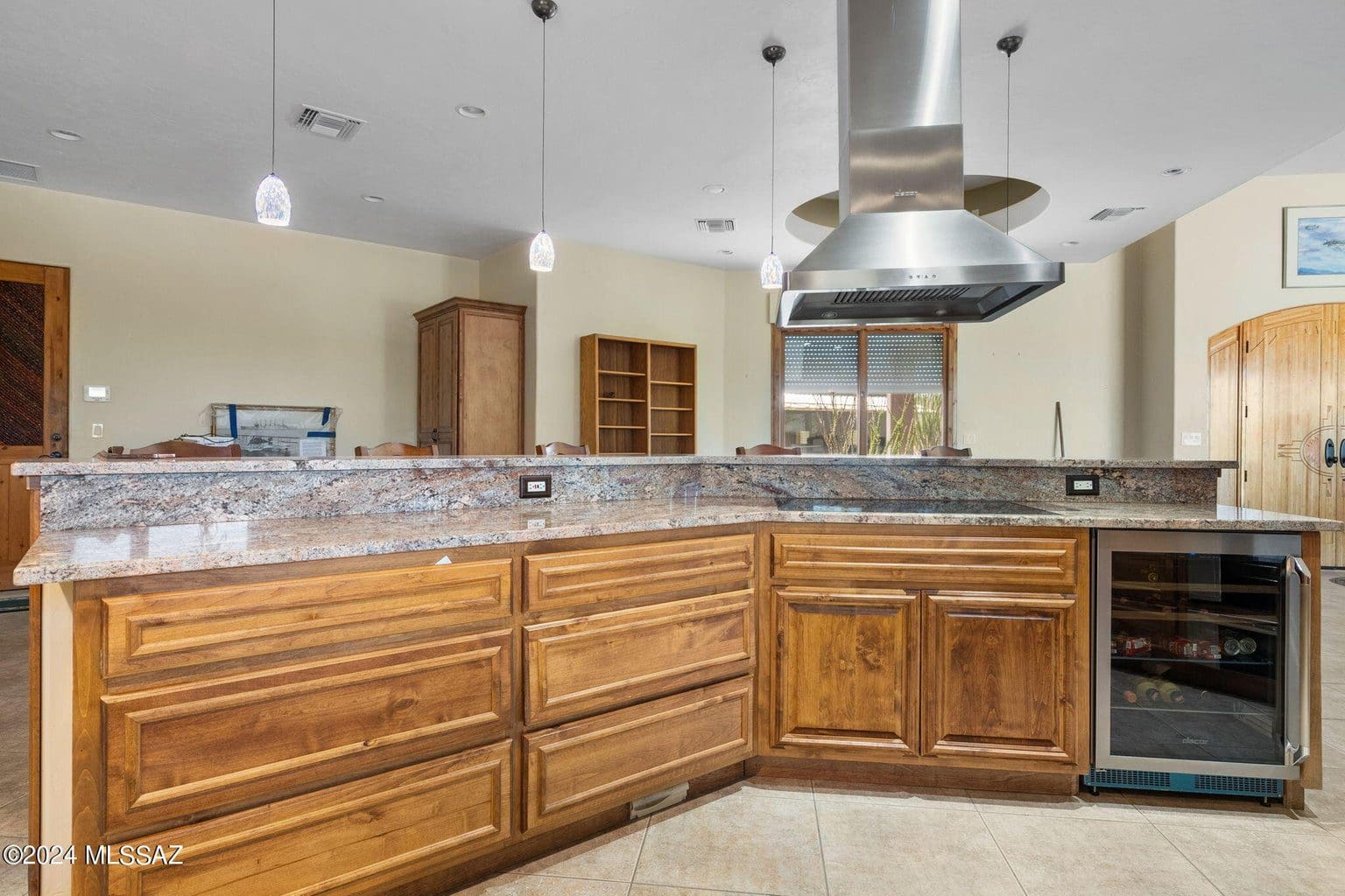 Custom built home with panoramic views even an AIRPLANE HANGAR! Indulge in the ultimate luxury and tranquility in this architecturally stunning property that has your very own private air park community. With the breath-taking features this estate offers, you will be in complete zen. The exquisite custom oak front door leads you into a serene foyer adorned with a captivating zen, the pendulum makes its map on the sand. Step inside two spacious primary bedrooms, each featuring custom closets, granite bathrooms, walk-in showers, and intricate ocotillo wooden doors. The well equipped laundry room has solar tube lighting, storage, utility sink, and a granite countertop folding area. Prepare your culinary masterpieces in the gourmet kitchen, featuring a large walk-in pantry, with roll-out drawers. All the cabinetry is custom made. You will have generous counter top space with polished granite. There is also a trash compactor, a separate drink/wine cooler, and a warming drawer under the oven. The reverse-osmosis system ensures pristine water quality. Unwind in the great room, complete with a bar, sink, ice maker, built-in entertainment system. The home has all LED lighting. The main primary bedroom offers a custom closet, a bidet with warming seat, a beautiful granite vanity with two sinks.