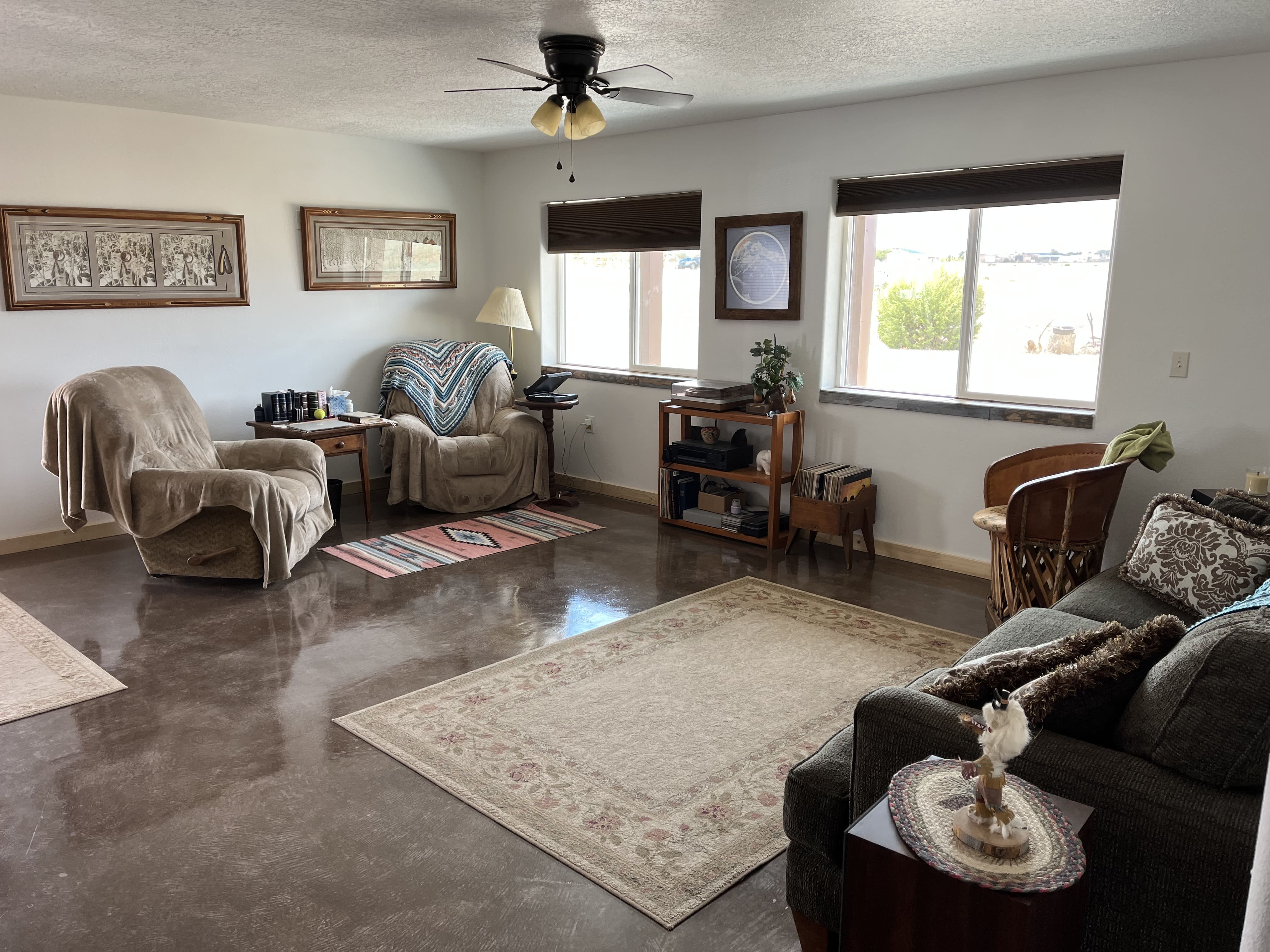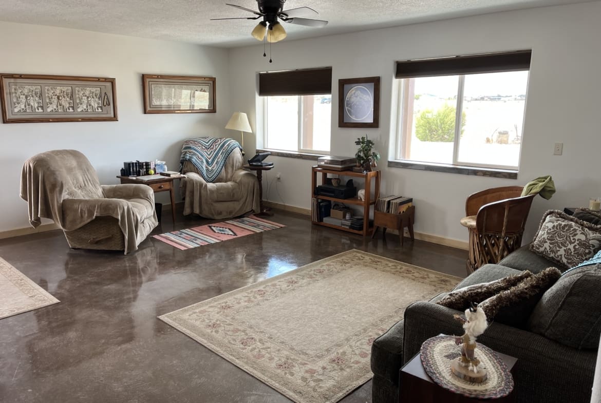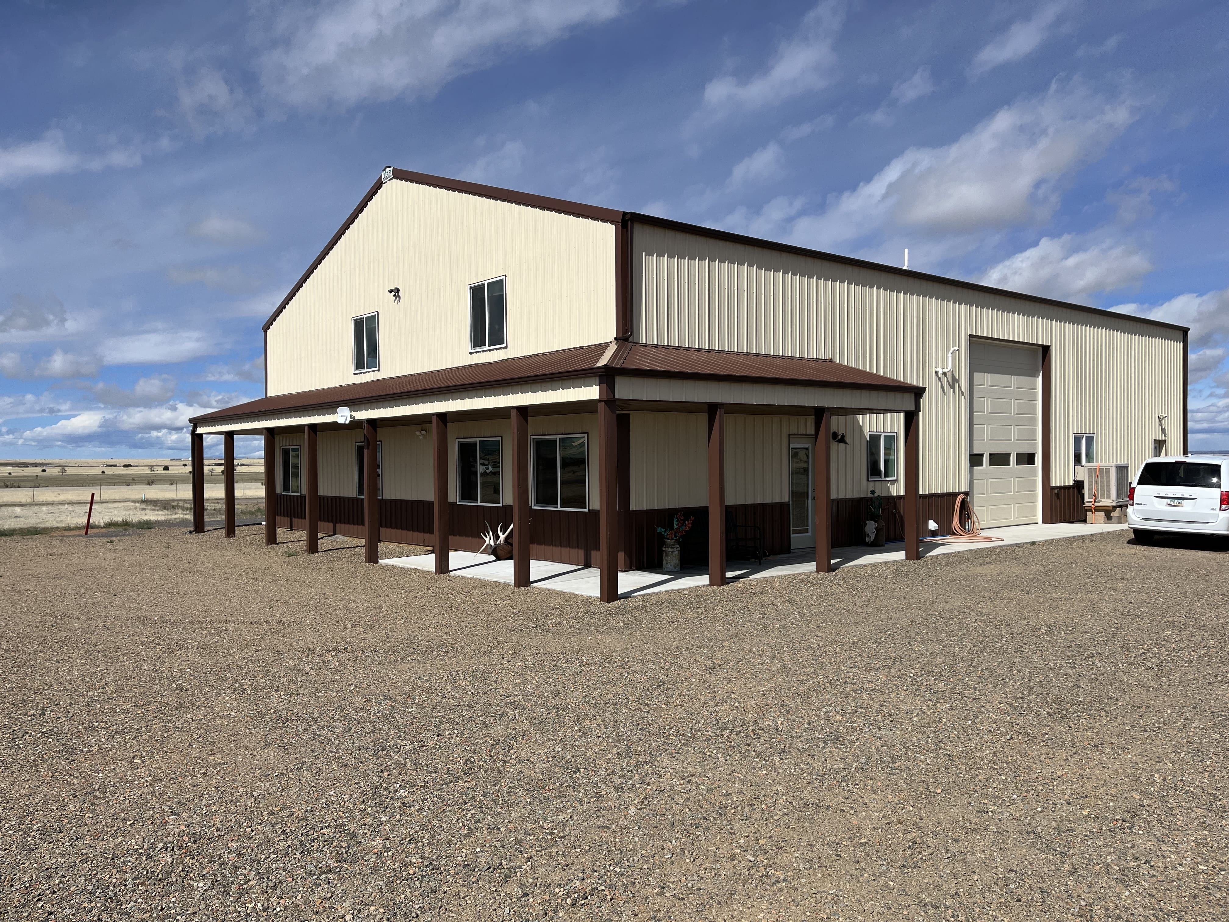Hangar/Home near Albuquerque/Santa Fe.Living area is 2500 SF with 48X44 hangar. 14 X 44 Clear Bifold door. Located on 2.5 acres. RV pad with hookups. adjoining land available! Located Edgewood, NM. Close to most everything, Walmart,Grocery store, Restaurants, Harbor Freight, Auto supply’s, Lumber Store and more. Second floor can easily be used for Air B&B. there is a kitchen plumbed in with a complete bathroom. Private deck for watching the stars at night. Price Reduced until early 2025