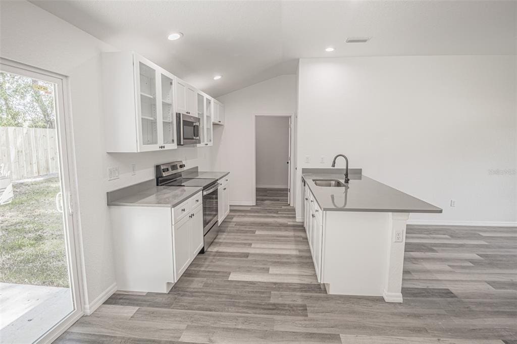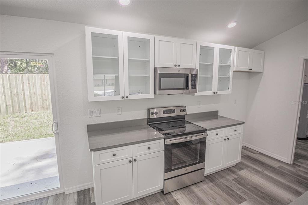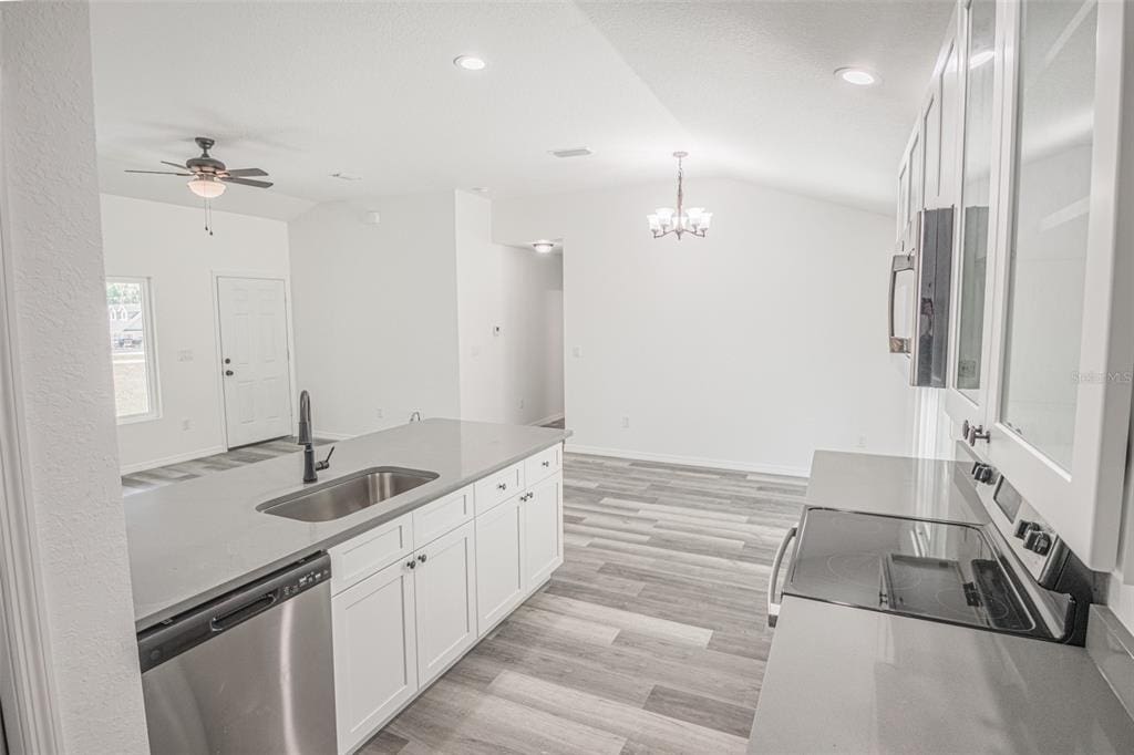 As you step through the front door, you’ll immediately appreciate the airy living space, with high ceilings and an abundance of natural light. The thoughtful layout includes a large living room, guest bedrooms and bath down the hall, and a tranquil primary suite to the right. The chef-inspired kitchen boasts elegant quartz countertops, soft-close cabinetry, stainless steel appliances, and plenty of storage—making it the heart of the home.