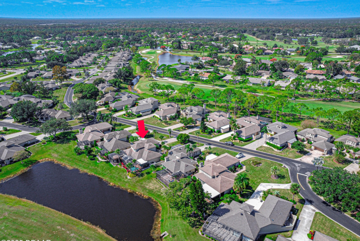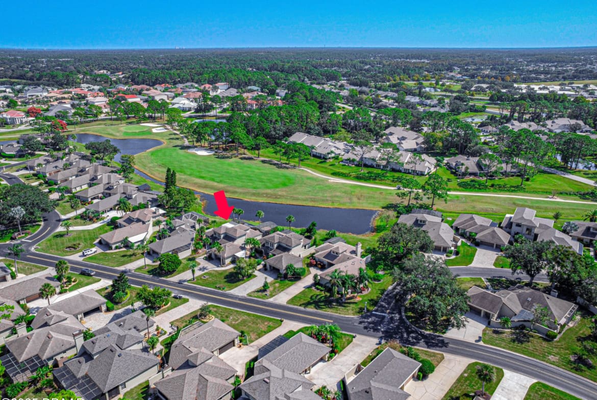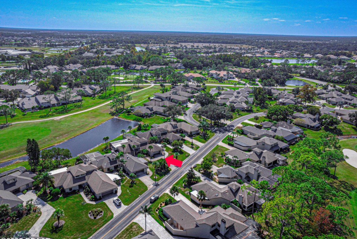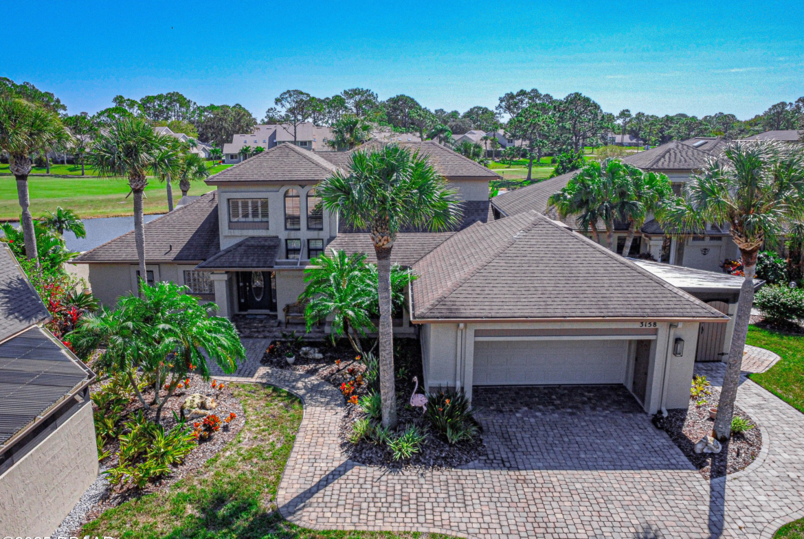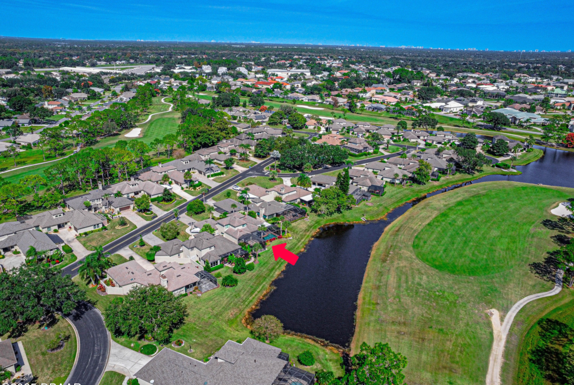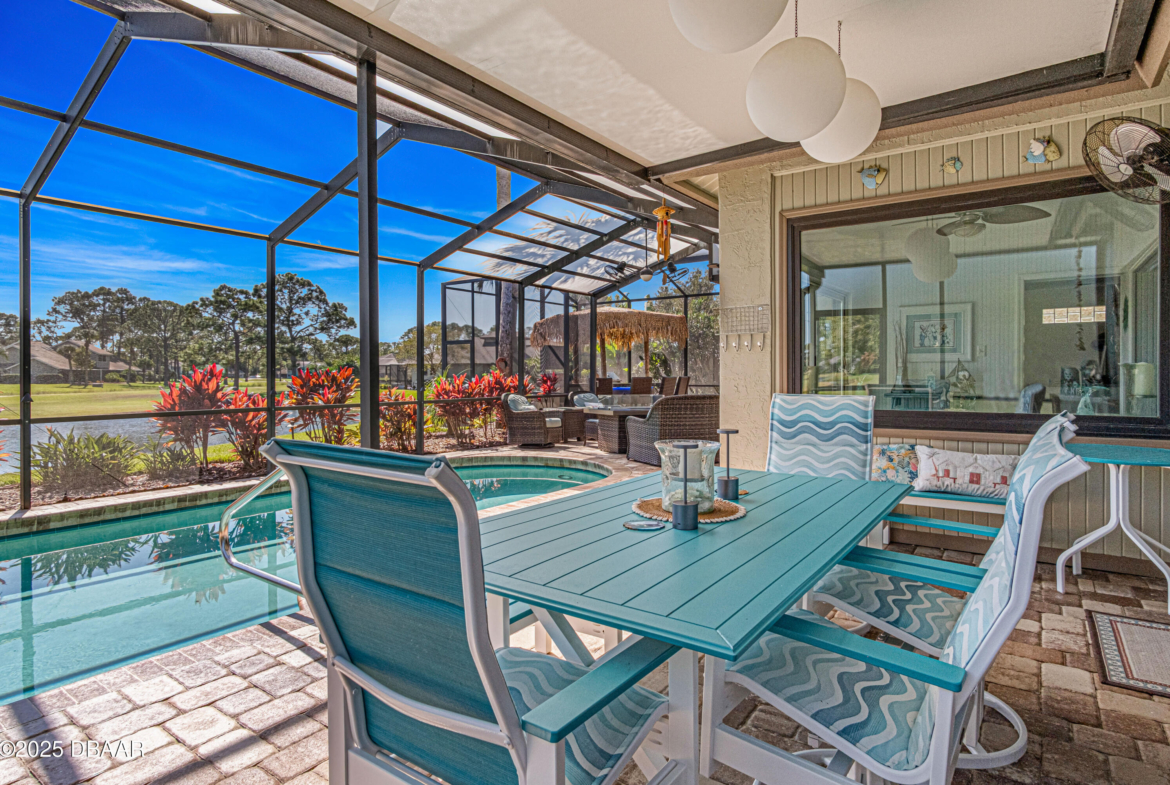Stylish & Contemporary. Located in Spruce Creek Fly-In’s Wedgewood Community. Enjoy entertaining around your private unique tiki bar & pool overlooking relaxing pond with nature views. 3 bedroom 2 1/2 bath located on the golf course. High end kitchen remodel with custom cabinetry, quartz counter tops, eat in bar area, smart sink, pantry & new LG appliances. Sitting area/living room from foyer opens to sizable family room with bar/built in ice maker & tile flooring throughout overlooks the 14th fairway giving way to a screened in lanai w/ insulated aluminum roof & FL screen. Cozy sunroom offers large picture window, bead board paneling & walk out to pool where you will enjoy hosting friends around the festive tiki bar (includes bar stools, grill, refrigerator & lighting). Master suite provides a substantial custom built in closet, walk in shower w/ dual vanities, custom panel track blinds & slider to lanai. Separate guest quarters with full bath upstairs.