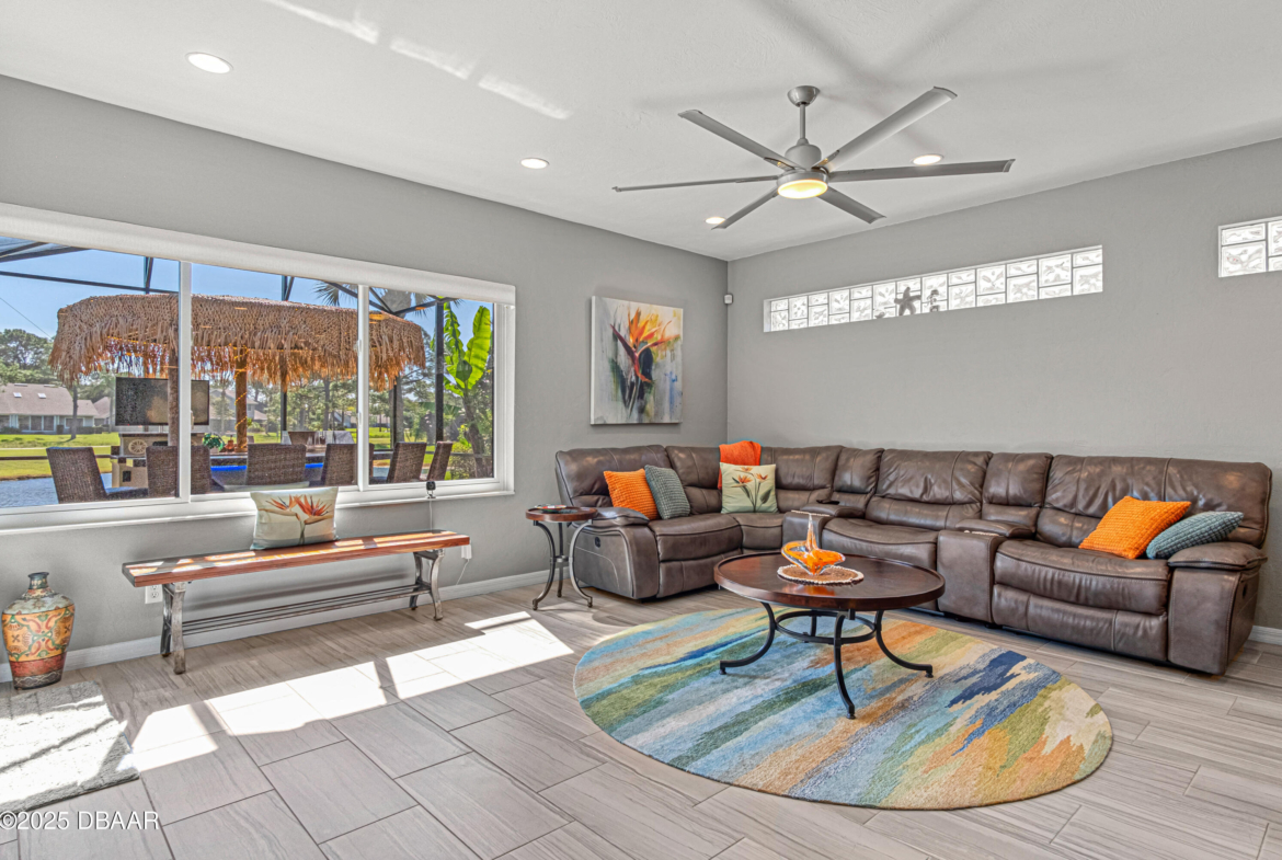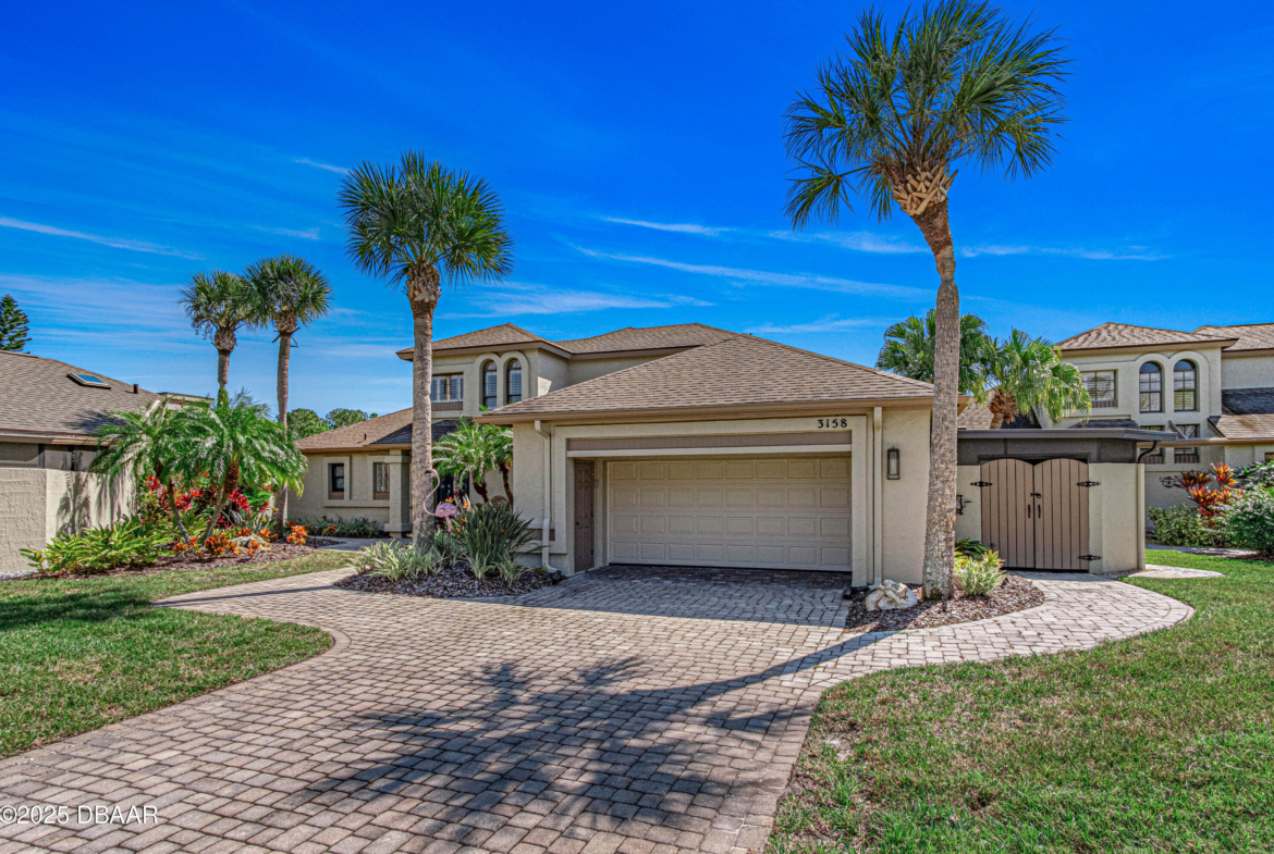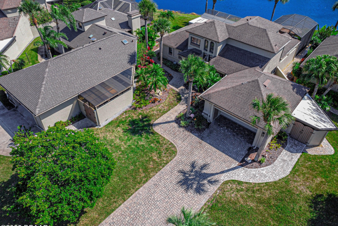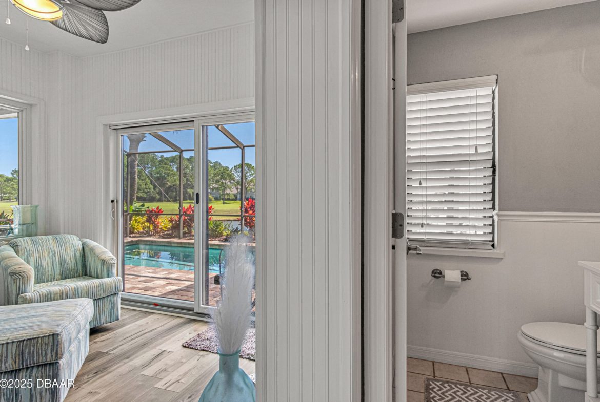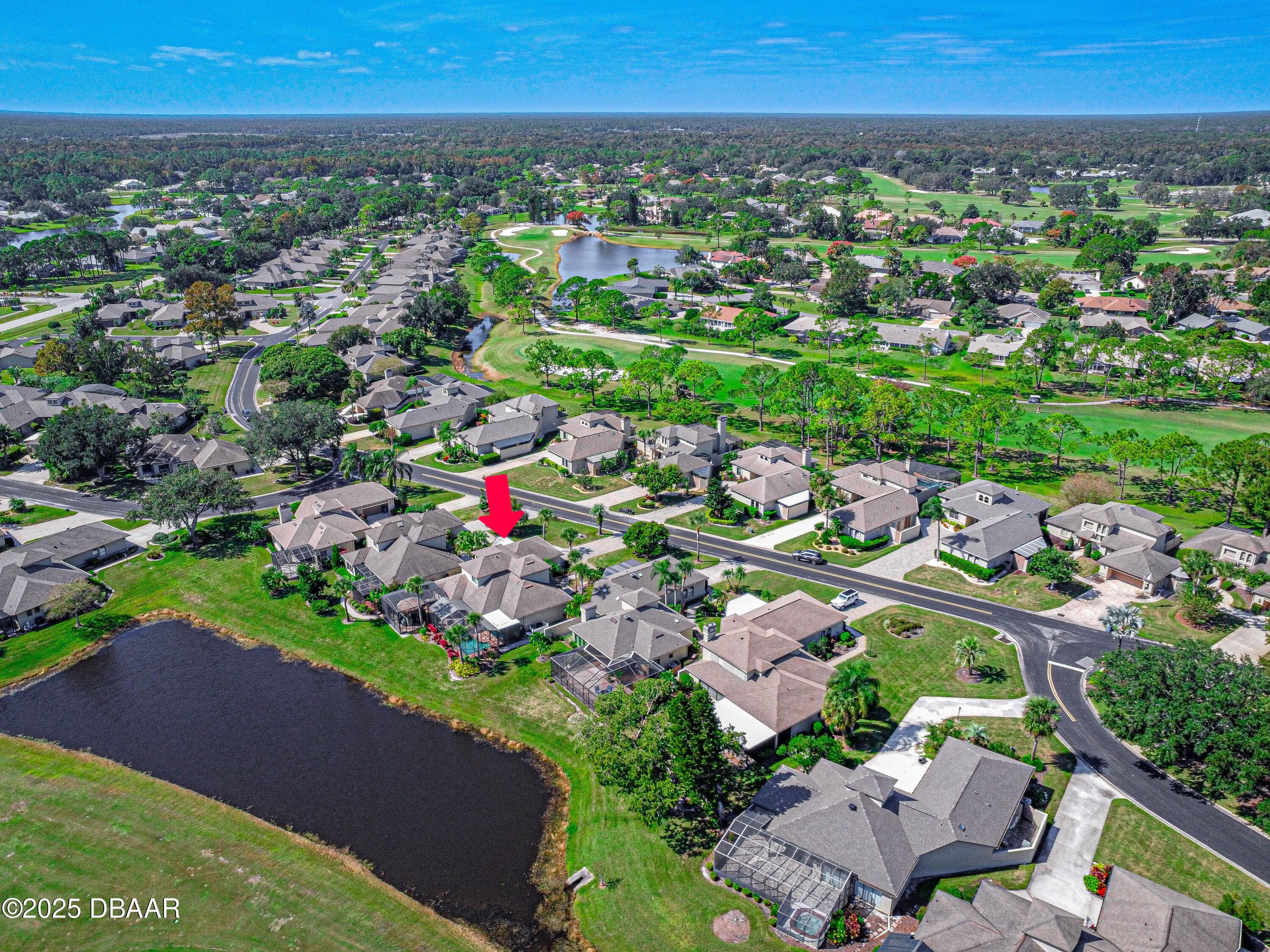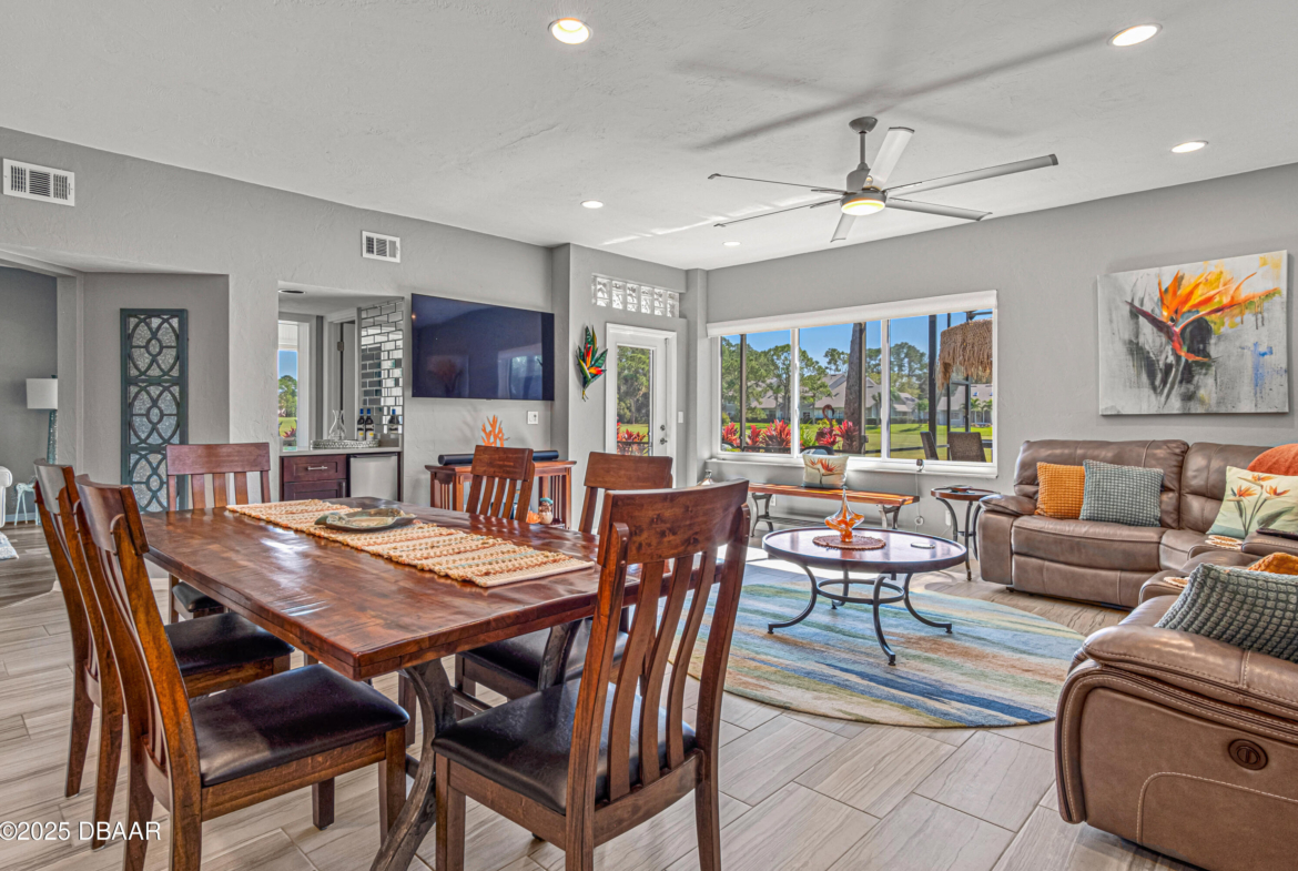 Stylish & Contemporary. Located in Spruce Creek Fly-In’s Wedgewood Community. Enjoy entertaining around your private unique tiki bar & pool overlooking relaxing pond with nature views. 3 bedroom 2 1/2 bath located on the golf course. High end kitchen remodel with custom cabinetry, quartz counter tops, eat in bar area, smart sink, pantry & new LG appliances. Sitting area/living room from foyer opens to sizable family room with bar/built in ice maker & tile flooring throughout overlooks the 14th fairway giving way to a screened in lanai w/ insulated aluminum roof & FL screen. Cozy sunroom offers large picture window, bead board paneling & walk out to pool where you will enjoy hosting friends around the festive tiki bar (includes bar stools, grill, refrigerator & lighting). Master suite provides a substantial custom built in closet, walk in shower w/ dual vanities, custom panel track blinds & slider to lanai. Separate guest quarters with full bath upstairs.
