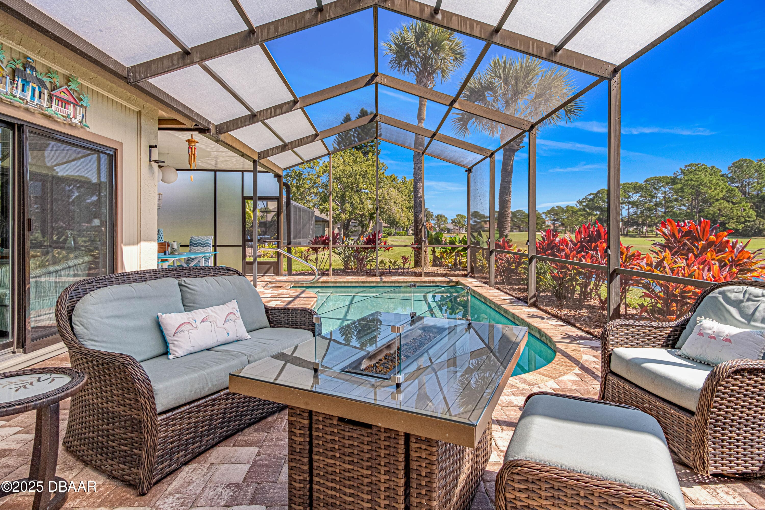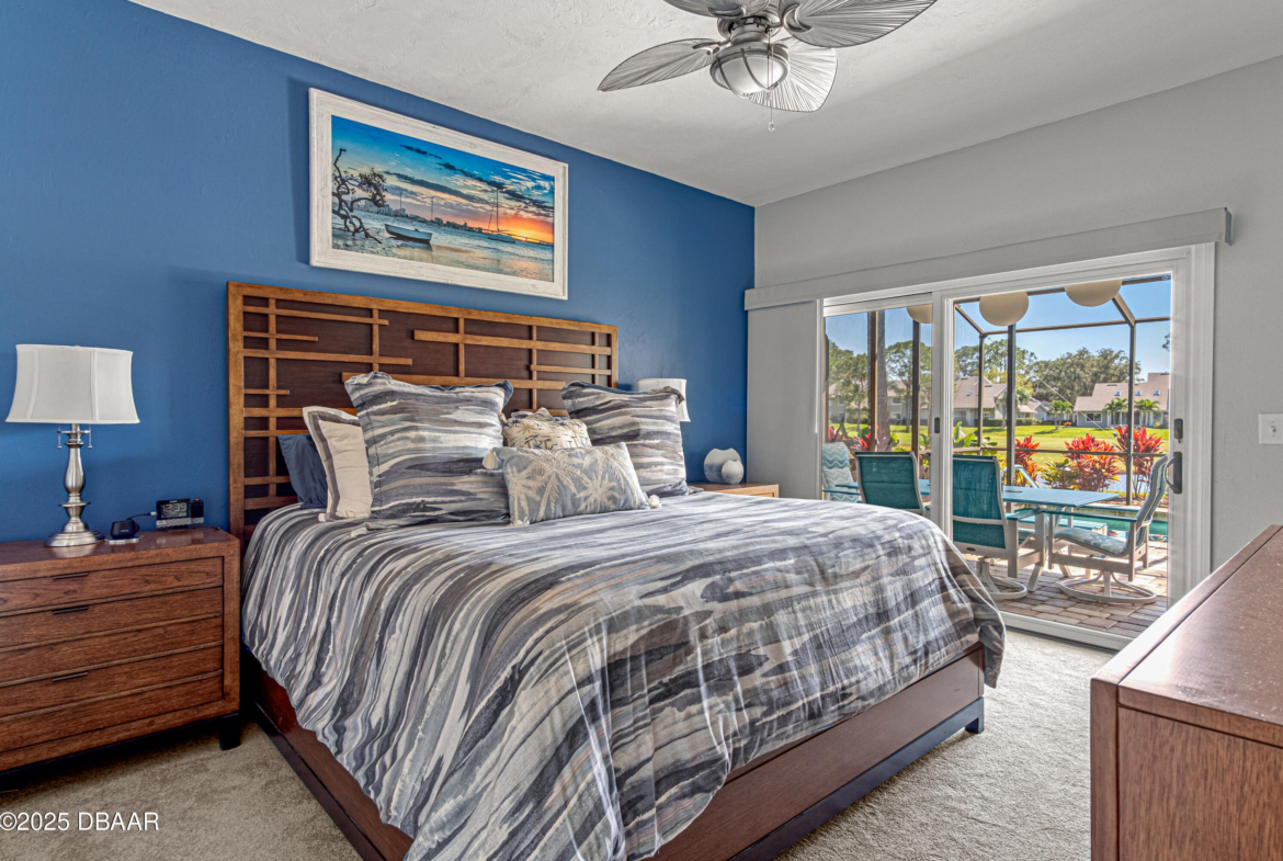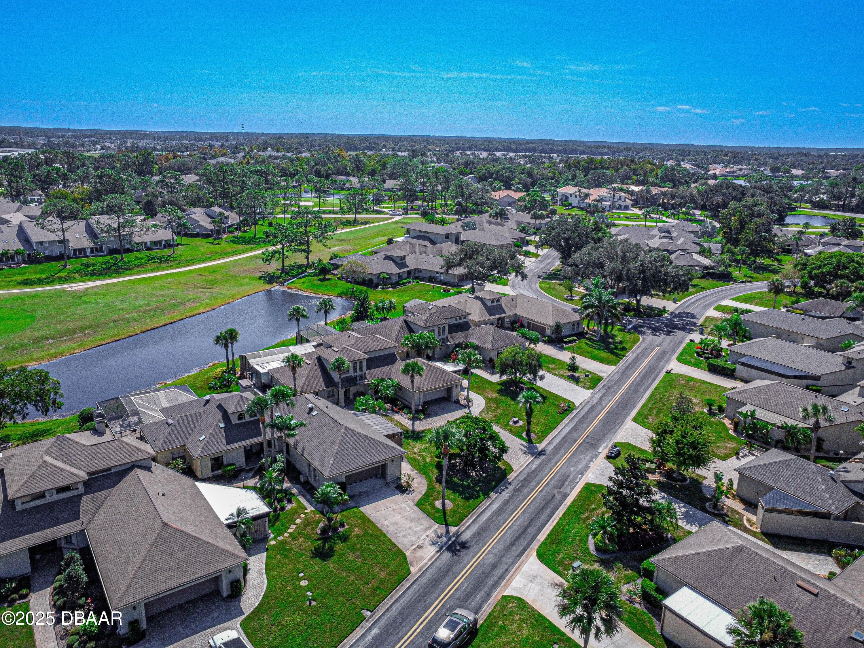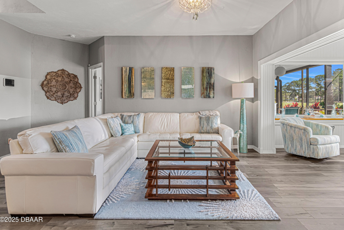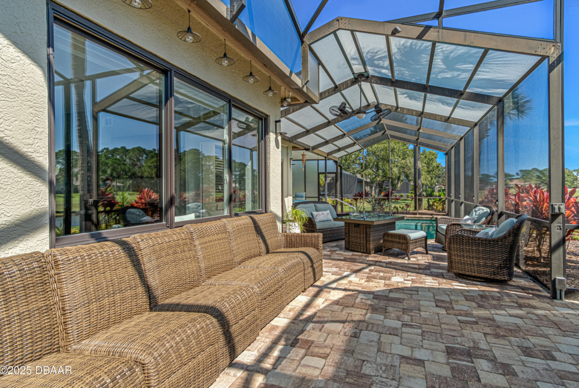Stylish & Contemporary. Located in Spruce Creek Fly-In’s Wedgewood Community. Enjoy entertaining around your private unique tiki bar & pool overlooking relaxing pond with nature views. 3 bedroom 2 1/2 bath located on the golf course. High end kitchen remodel with custom cabinetry, quartz counter tops, eat in bar area, smart sink, pantry & new LG appliances. Sitting area/living room from foyer opens to sizable family room with bar/built in ice maker & tile flooring throughout overlooks the 14th fairway giving way to a screened in lanai w/ insulated aluminum roof & FL screen. Cozy sunroom offers large picture window, bead board paneling & walk out to pool where you will enjoy hosting friends around the festive tiki bar (includes bar stools, grill, refrigerator & lighting). Master suite provides a substantial custom built in closet, walk in shower w/ dual vanities, custom panel track blinds & slider to lanai. Separate guest quarters with full bath upstairs.