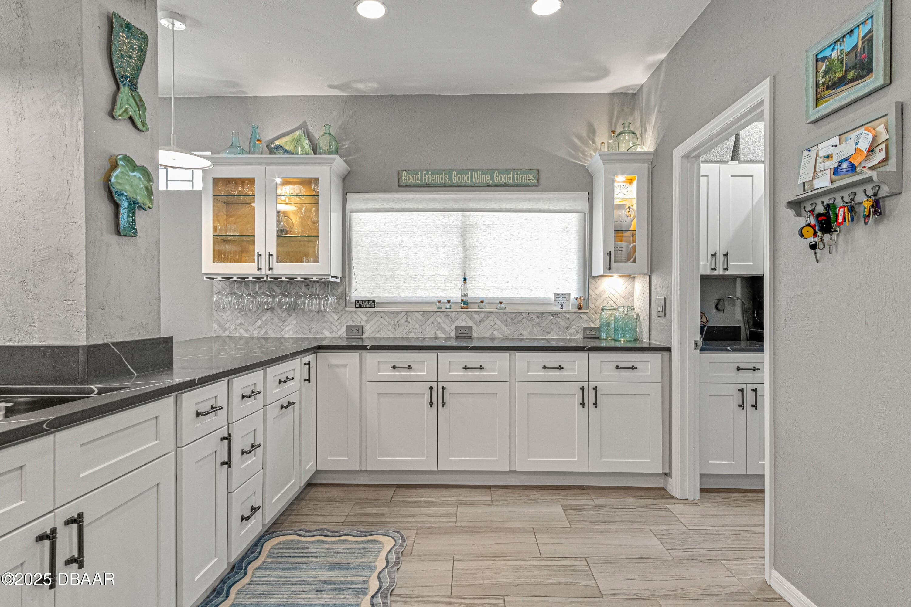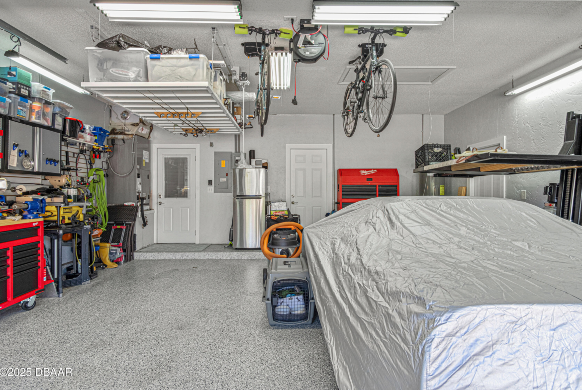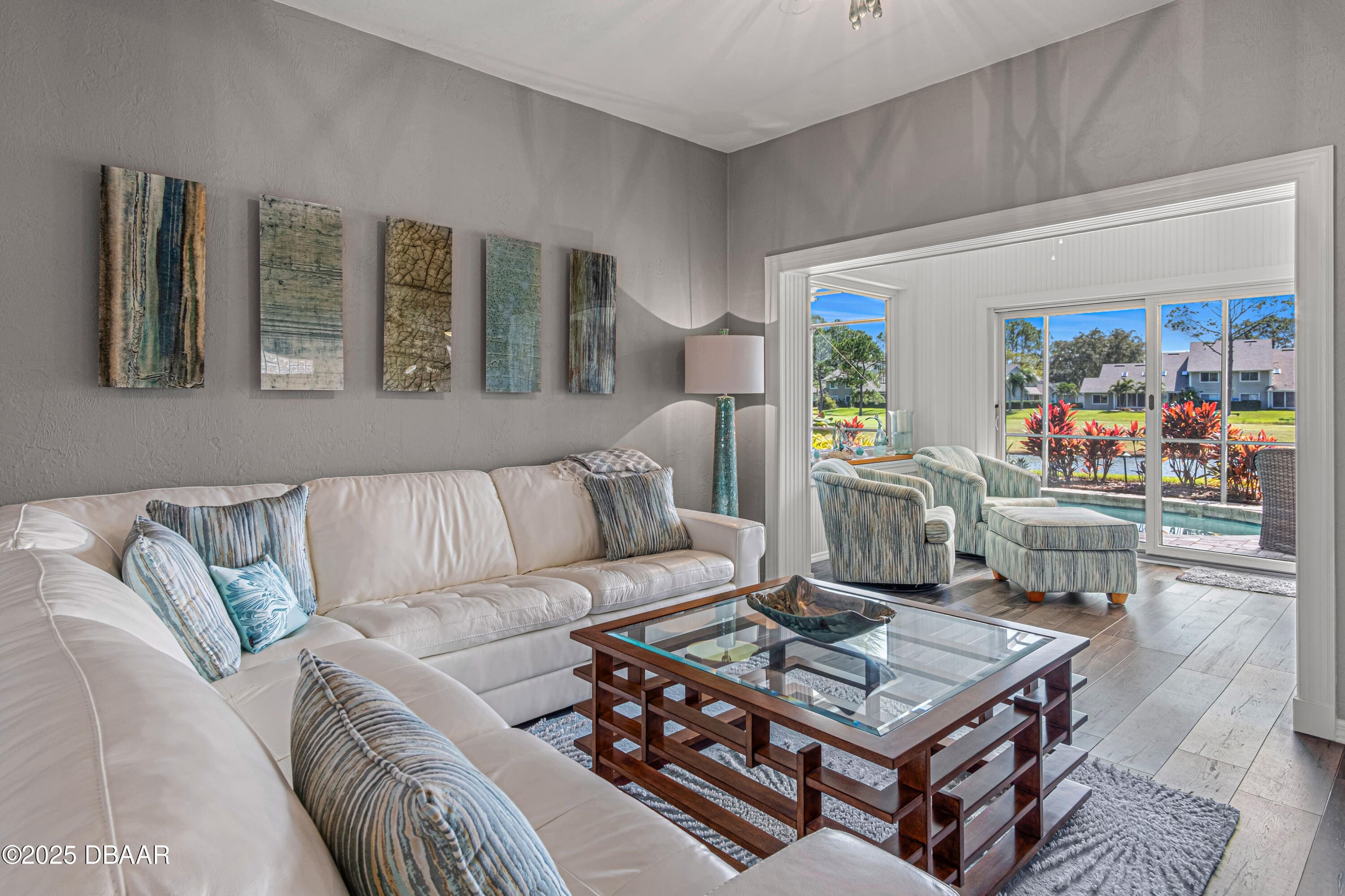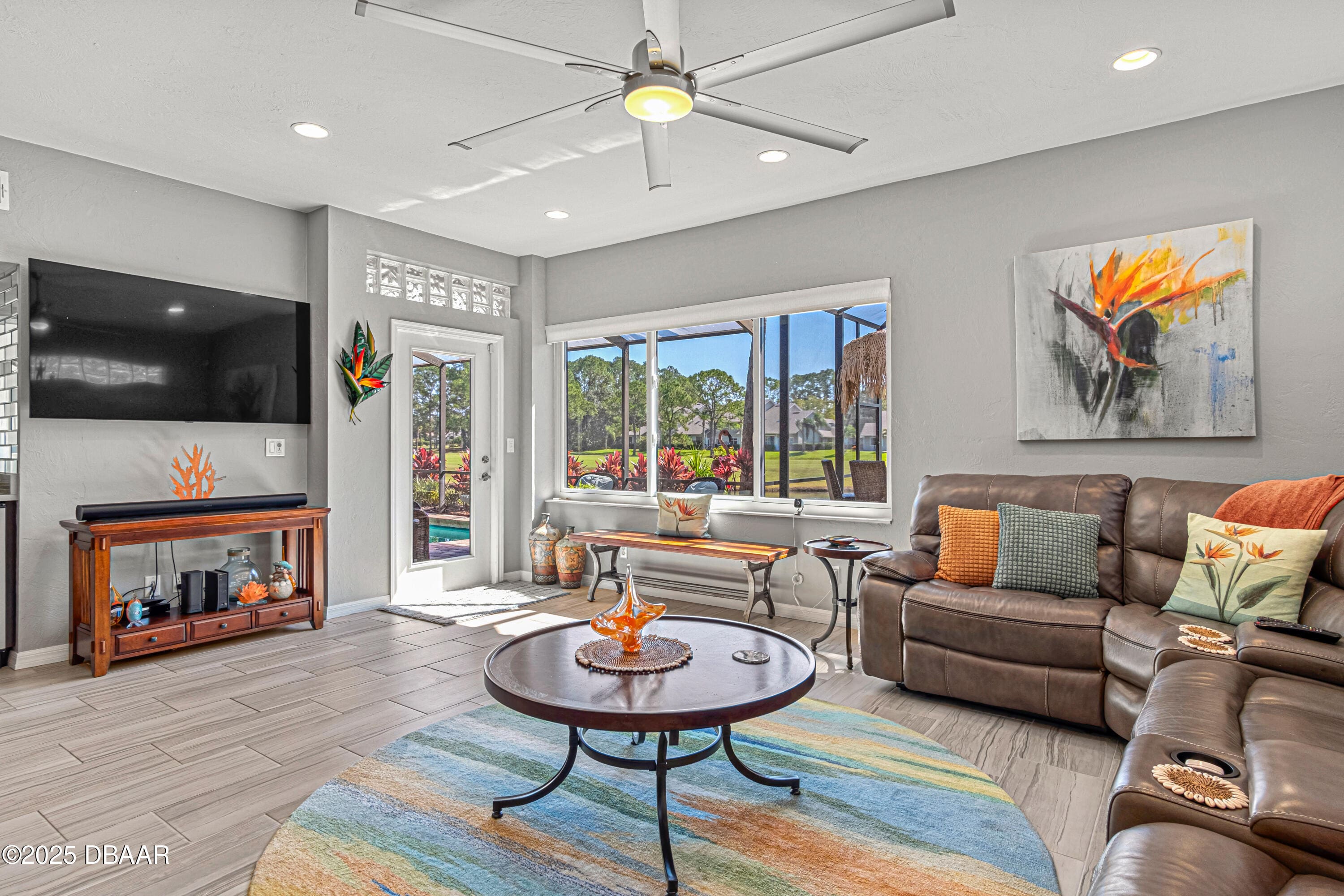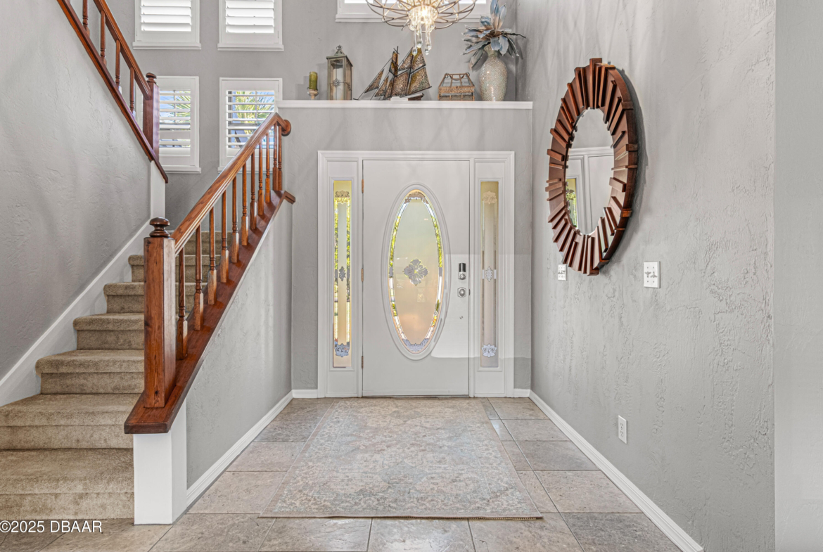 Stylish & Contemporary. Located in Spruce Creek Fly-In’s Wedgewood Community. Enjoy entertaining around your private unique tiki bar & pool overlooking relaxing pond with nature views. 3 bedroom 2 1/2 bath located on the golf course. High end kitchen remodel with custom cabinetry, quartz counter tops, eat in bar area, smart sink, pantry & new LG appliances. Sitting area/living room from foyer opens to sizable family room with bar/built in ice maker & tile flooring throughout overlooks the 14th fairway giving way to a screened in lanai w/ insulated aluminum roof & FL screen. Cozy sunroom offers large picture window, bead board paneling & walk out to pool where you will enjoy hosting friends around the festive tiki bar (includes bar stools, grill, refrigerator & lighting). Master suite provides a substantial custom built in closet, walk in shower w/ dual vanities, custom panel track blinds & slider to lanai. Separate guest quarters with full bath upstairs.