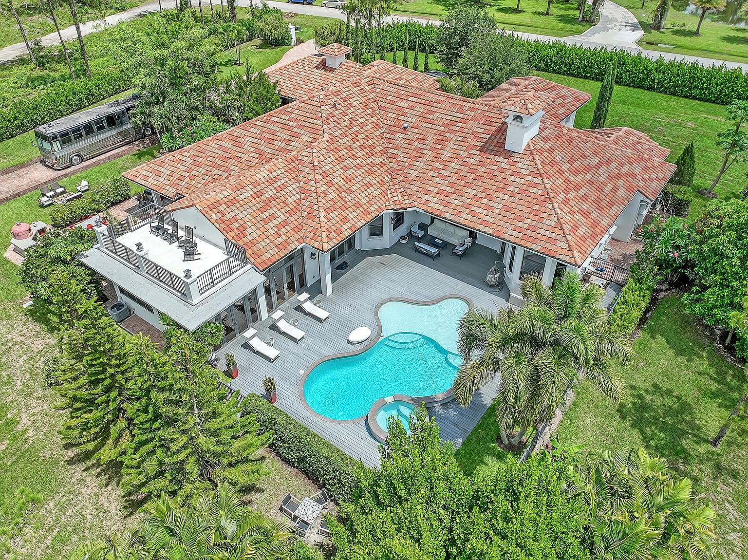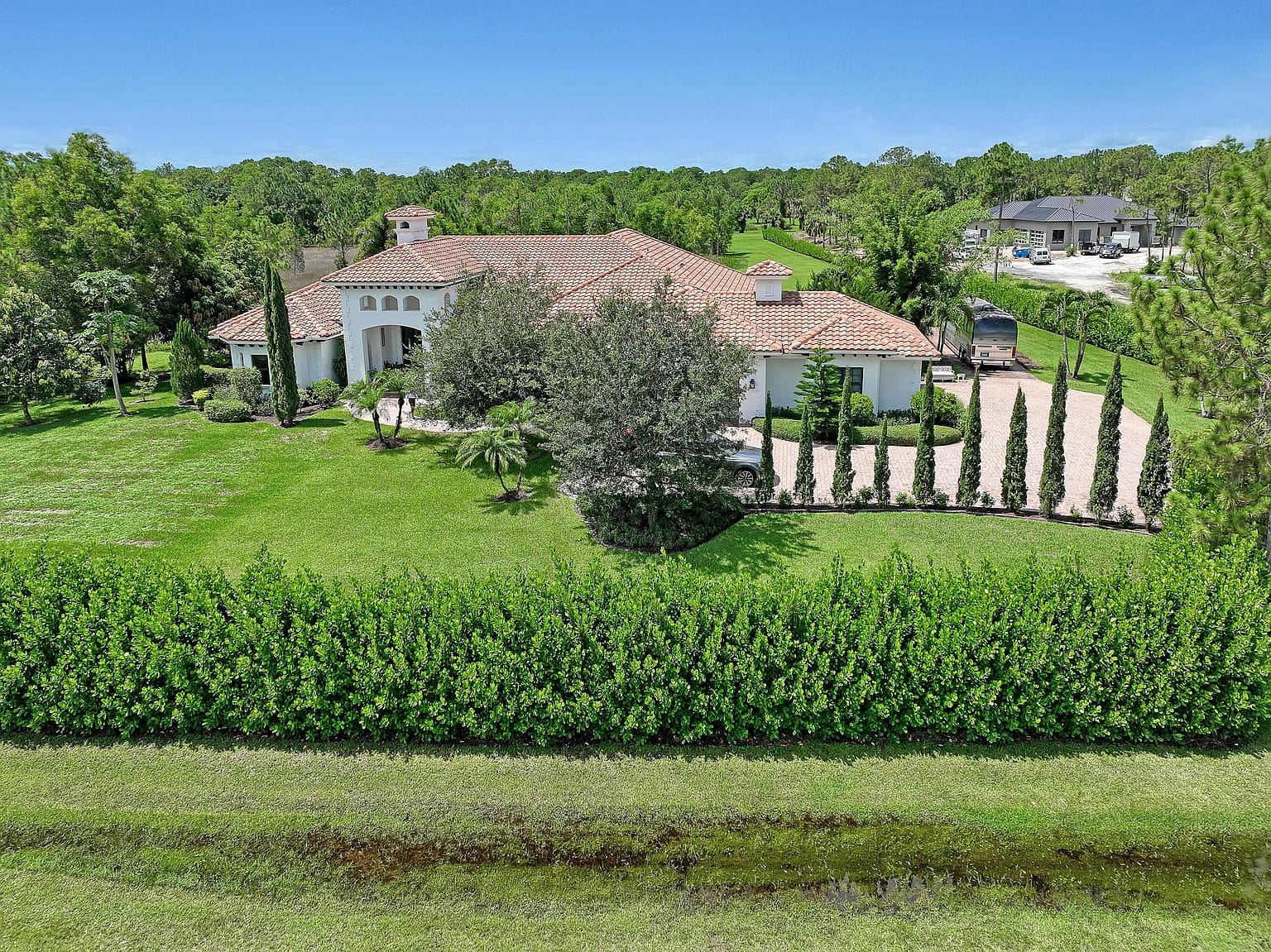 Built in 2008, sitting on 5 immaculate acres, approximately 5,600 Square feet this home was built with incredible attention to detail.The home is perfectly situated in Tailwinds close to the AIRSRTRIP could be a dream home for a pilot or airplane owner.Or Even for an Equestrian buyer.**We have Plans for 6,000 Sq FT Hangar**The residence offers full impact windows and doors, 3 car garage, a greenhouse, heated salt pool, gas fireplace and a cozy home theater. The community has 24 hour manned gated security. Easy to show.